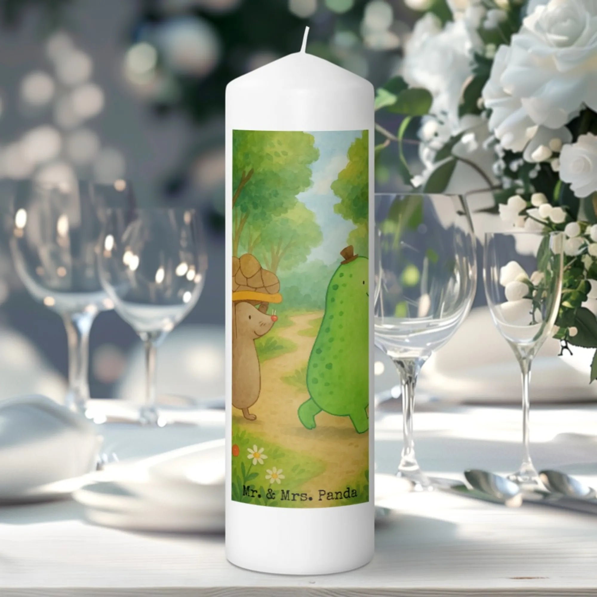 Transform your living space with our delightful Mr. & Mrs. Panda candle! This beautiful piece measures 150 mm (6 inches) tall and 70 mm (3 inches) wide, crafted from high-quality paraffin wax with a pleasing weight of 250 g (9 oz). Each candle is printed with charming motifs and affectionate sayings that bring joy to your heart. Perfect for birthdays or anniversaries, or simply to create a cozy atmosphere at home. The stunning design melts away gracefully as the candle burns, making it a truly enchanting experience. This ultra-long burning candle ensures you have a warm, inviting glow for hours on end. Whether you're looking for a thoughtful gift or a lovely addition to your decor, this candle fits the bill perfectly. Light it up for those special moments or to add a touch of serenity to your day-to-day life.