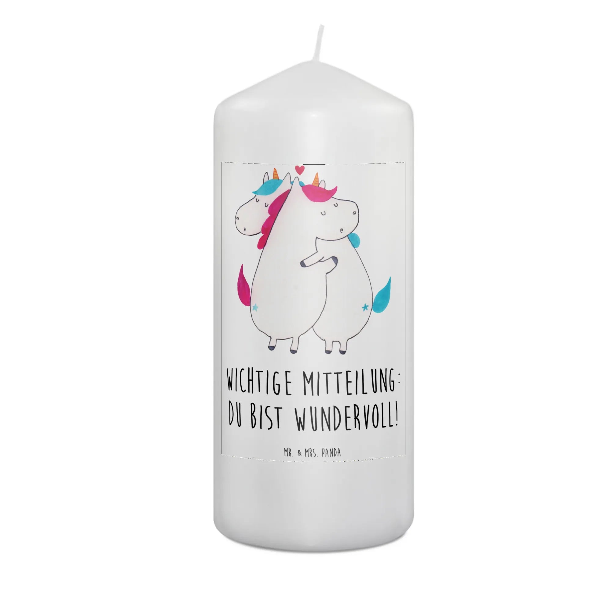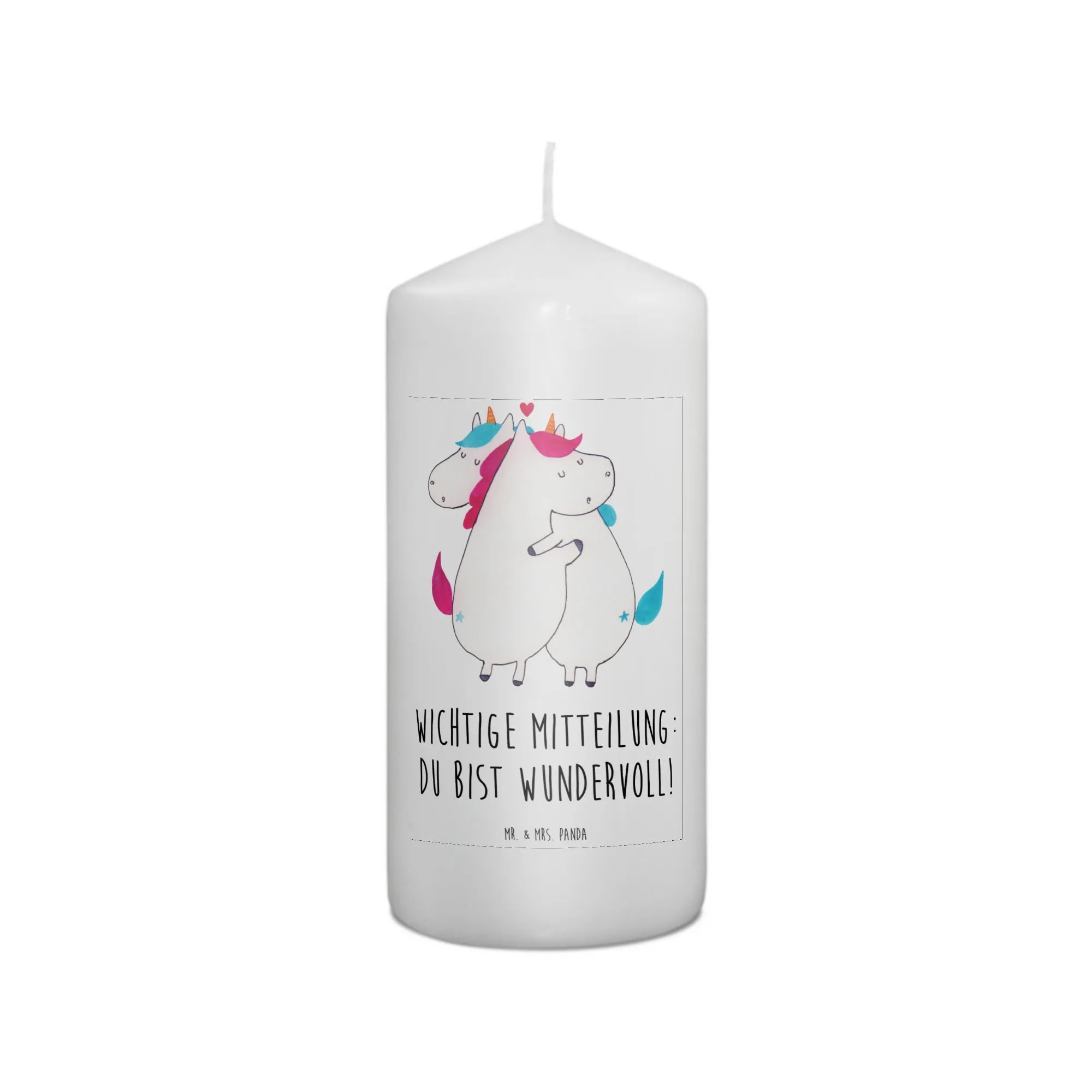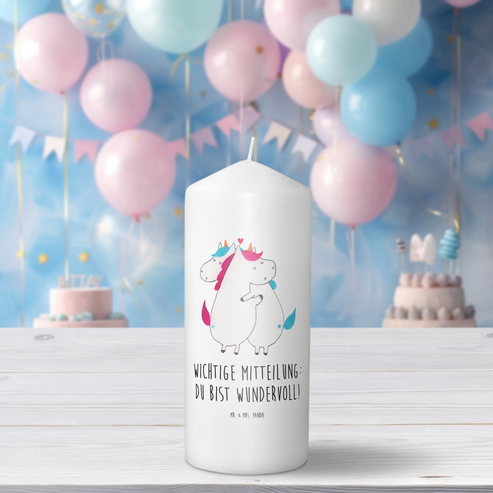 Imagine celebrating special moments with a glow that radiates love and joy! The Mr. & Mrs. Panda Unicorn Message Candle from our captivating Unicorn Collection is the perfect gift to light up anyone's day. With its enchanting design featuring two cute unicorns snuggling together, this charming candle is not just a decorative piece but a heartfelt message encapsulated in wax. The slogan "Wichtige Mitteilung: du bist wundervoll!" translates to “Important Message: You are wonderful!”, making it a delightful reminder for loved ones to cherish themselves.