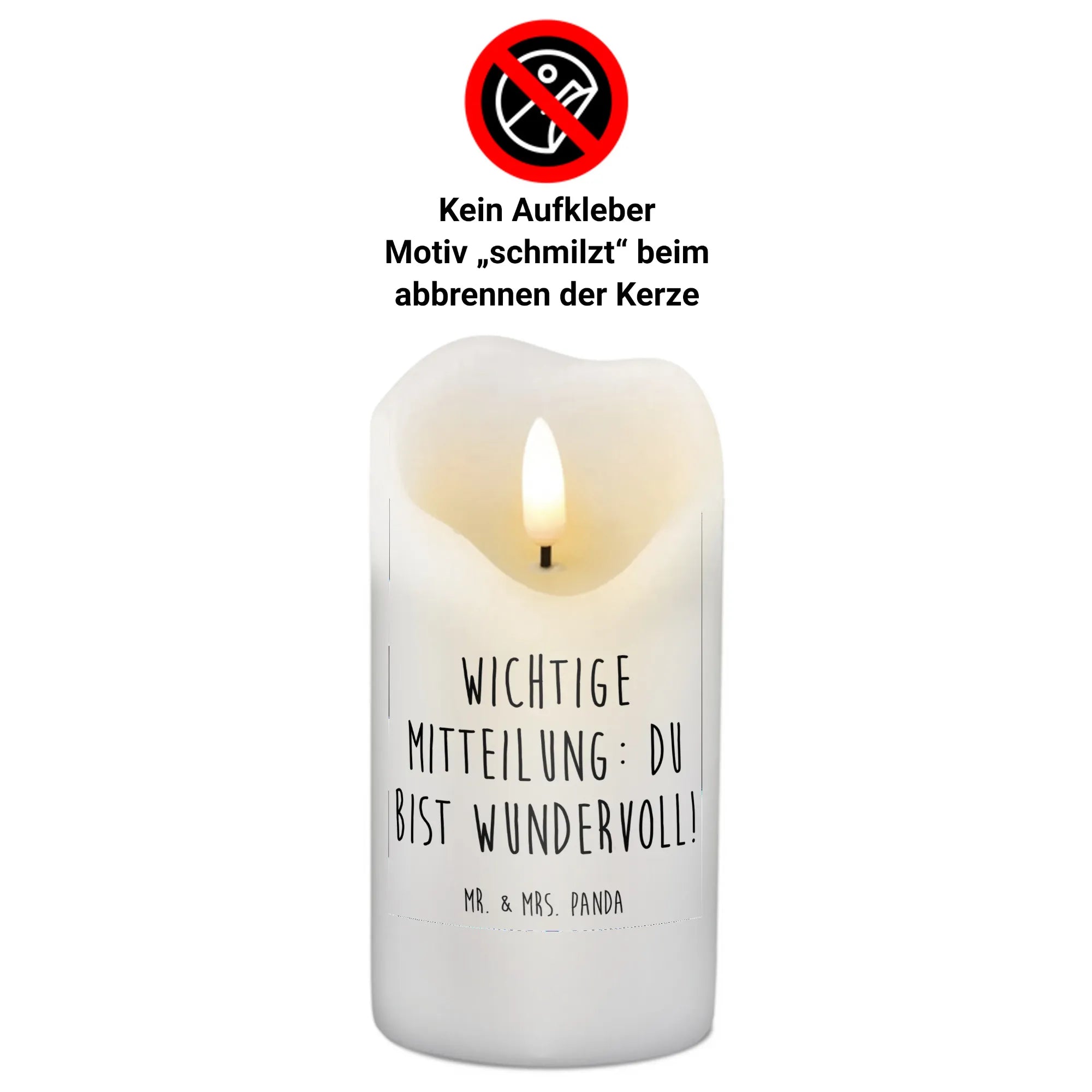 Imagine gifting this lovely candle to your best friend for her birthday or tucking it inside a special gift box for your partner on Valentine's Day. With "Wichtige Mitteilung: du bist wundervoll!" delicately crafted into the design, this candle perfectly encapsulates the essence of spreading joy and warmth. Every time it flickers to life, it creates a cozy and inviting atmosphere, making it ideal for birthdays, anniversaries, or even a joyful family reunion.