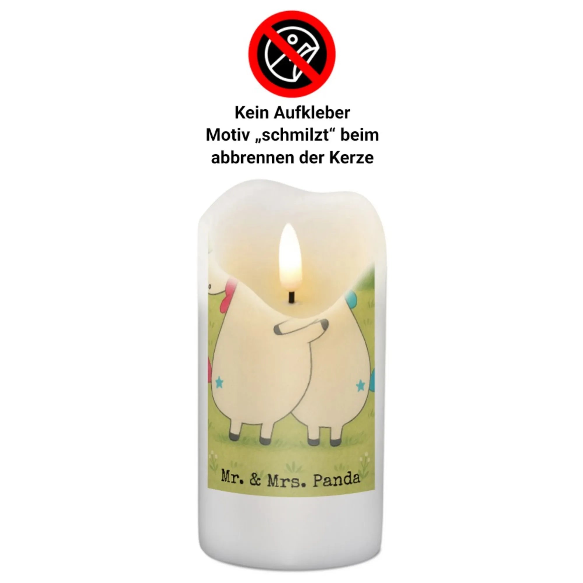 Unleash warmth and charm with the Mr. & Mrs. Panda Candle! Standing tall at 190 mm (7 inches) and measuring 80 mm (3 inches) wide, this 250 g (9 oz) candle is made from high-quality paraffin wax. Adorned with endearing phrases and adorable motifs, it's the ideal gift for birthdays or anniversaries, injecting a bit of magic into the air. With a wonderful burn time, this candle allows you to enjoy its gentle glow for longer periods. As it burns, the delicate outer layer of wax begins to melt away, revealing the charming illustrations underneath—a true visual treat. Available in several sizes, you'll find one that's just right for every occasion. Caring for your candle is simple: use gentle cleaners and hand wash when needed. Whether for a festive celebration or as a remembrance candle, it brings joy to any space.