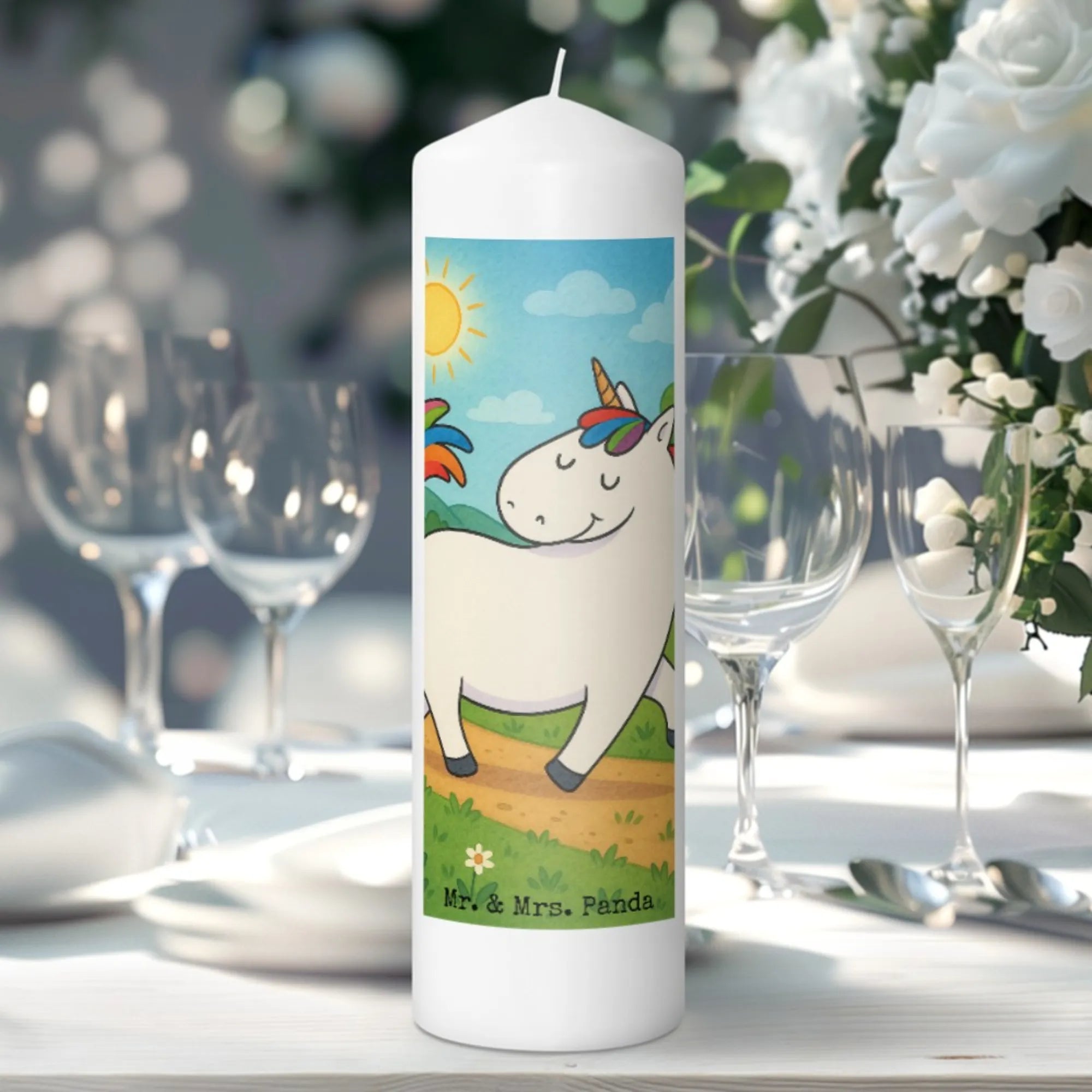 Unleash warmth and charm with the Mr. & Mrs. Panda Candle! Standing tall at 190 mm (7 inches) and measuring 80 mm (3 inches) wide, this 250 g (9 oz) candle is made from high-quality paraffin wax. Adorned with endearing phrases and adorable motifs, it's the ideal gift for birthdays or anniversaries, injecting a bit of magic into the air. With a wonderful burn time, this candle allows you to enjoy its gentle glow for longer periods. As it burns, the delicate outer layer of wax begins to melt away, revealing the charming illustrations underneath—a true visual treat. Available in several sizes, you'll find one that's just right for every occasion. Caring for your candle is simple: use gentle cleaners and hand wash when needed. Whether for a festive celebration or as a remembrance candle, it brings joy to any space.