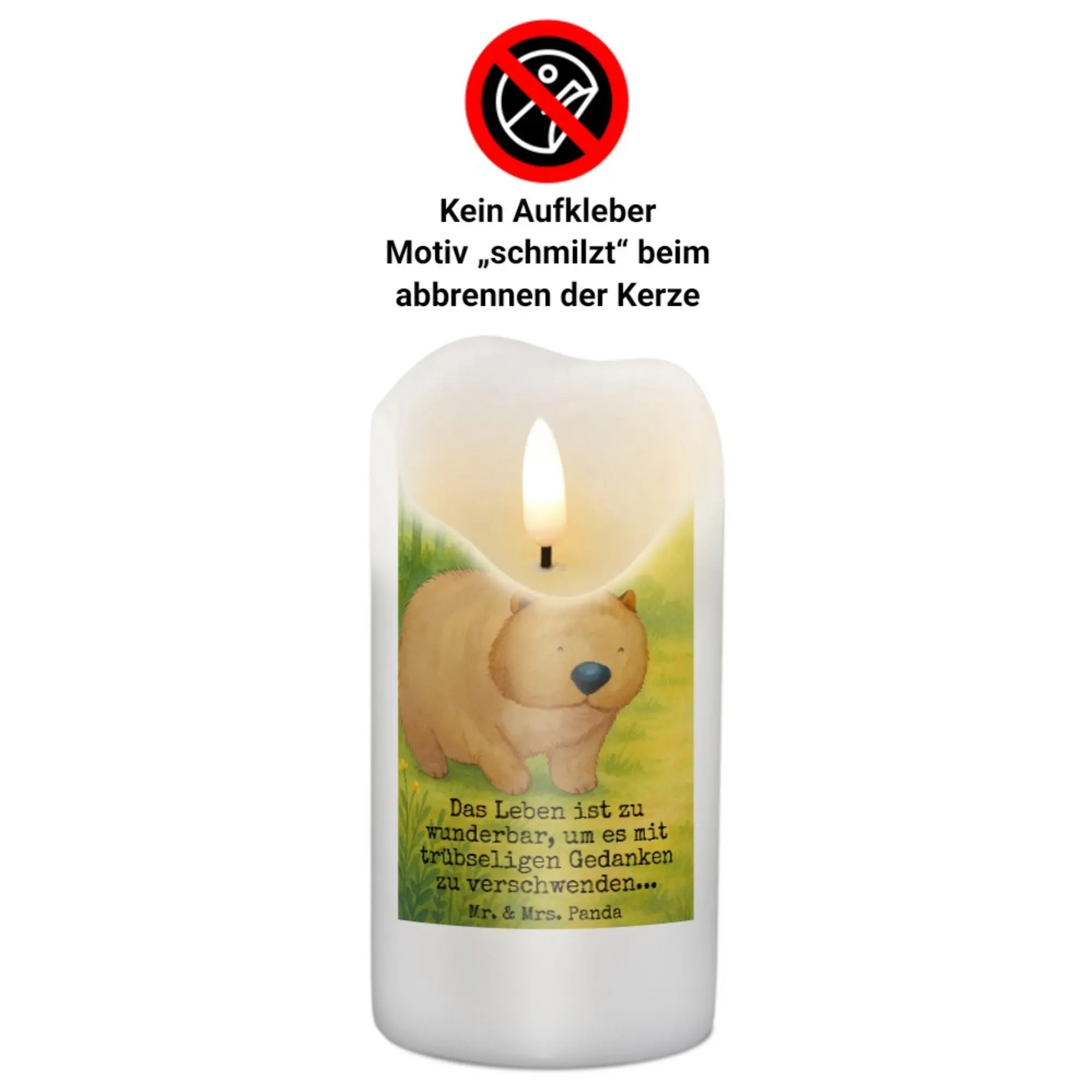 Candle Wombat Design - 15 x 7 cm - with saying