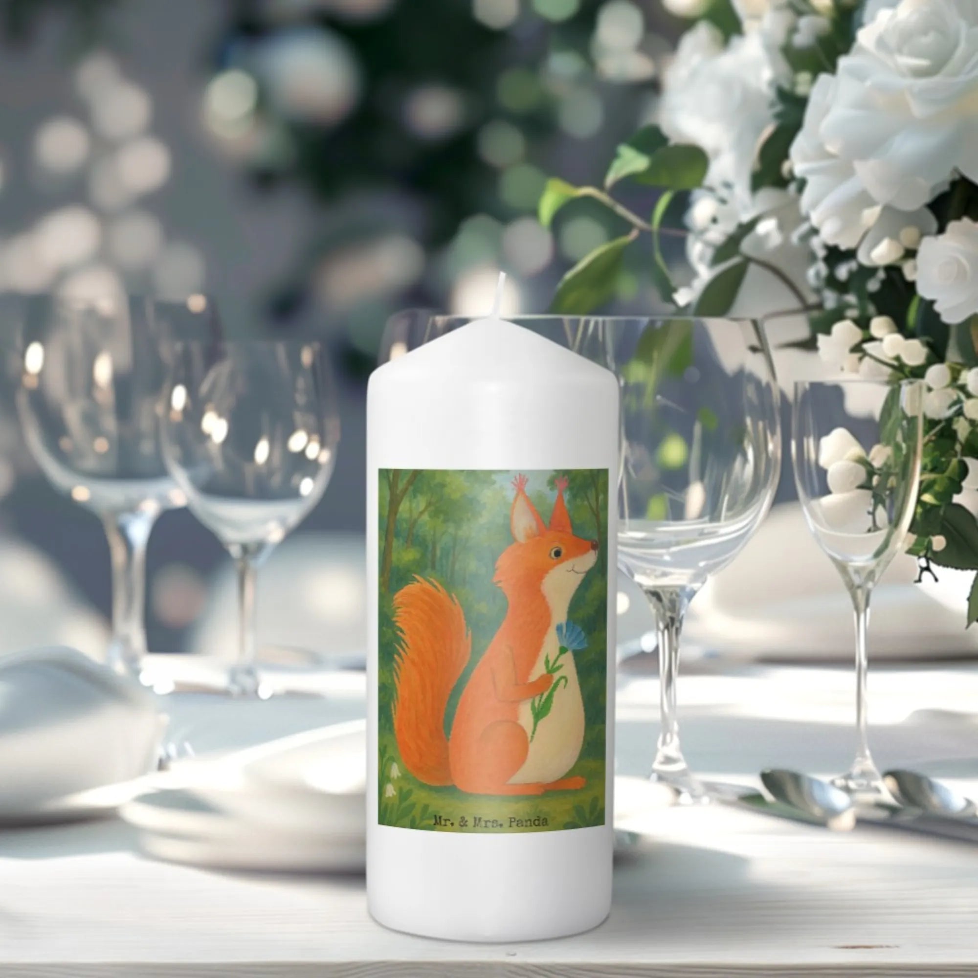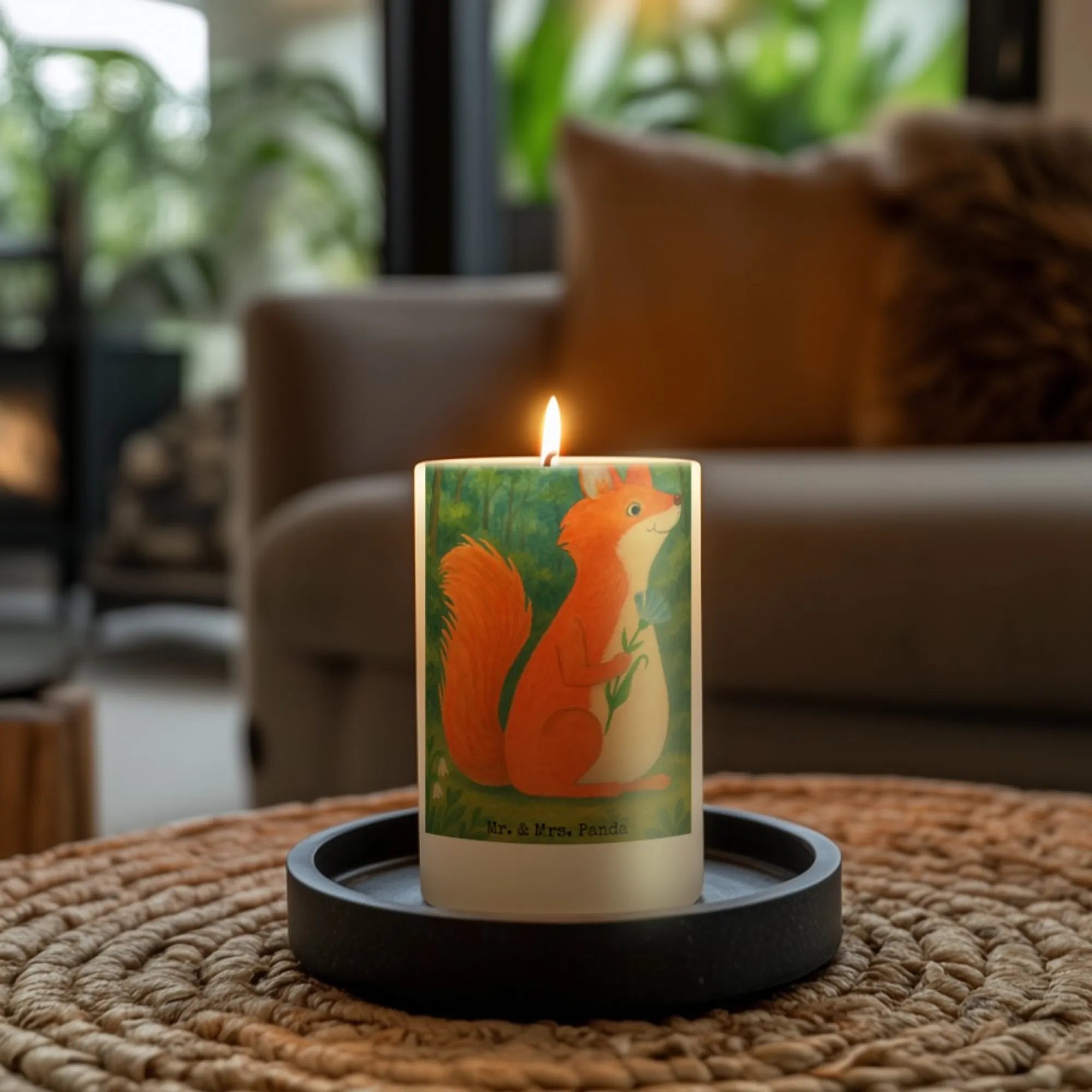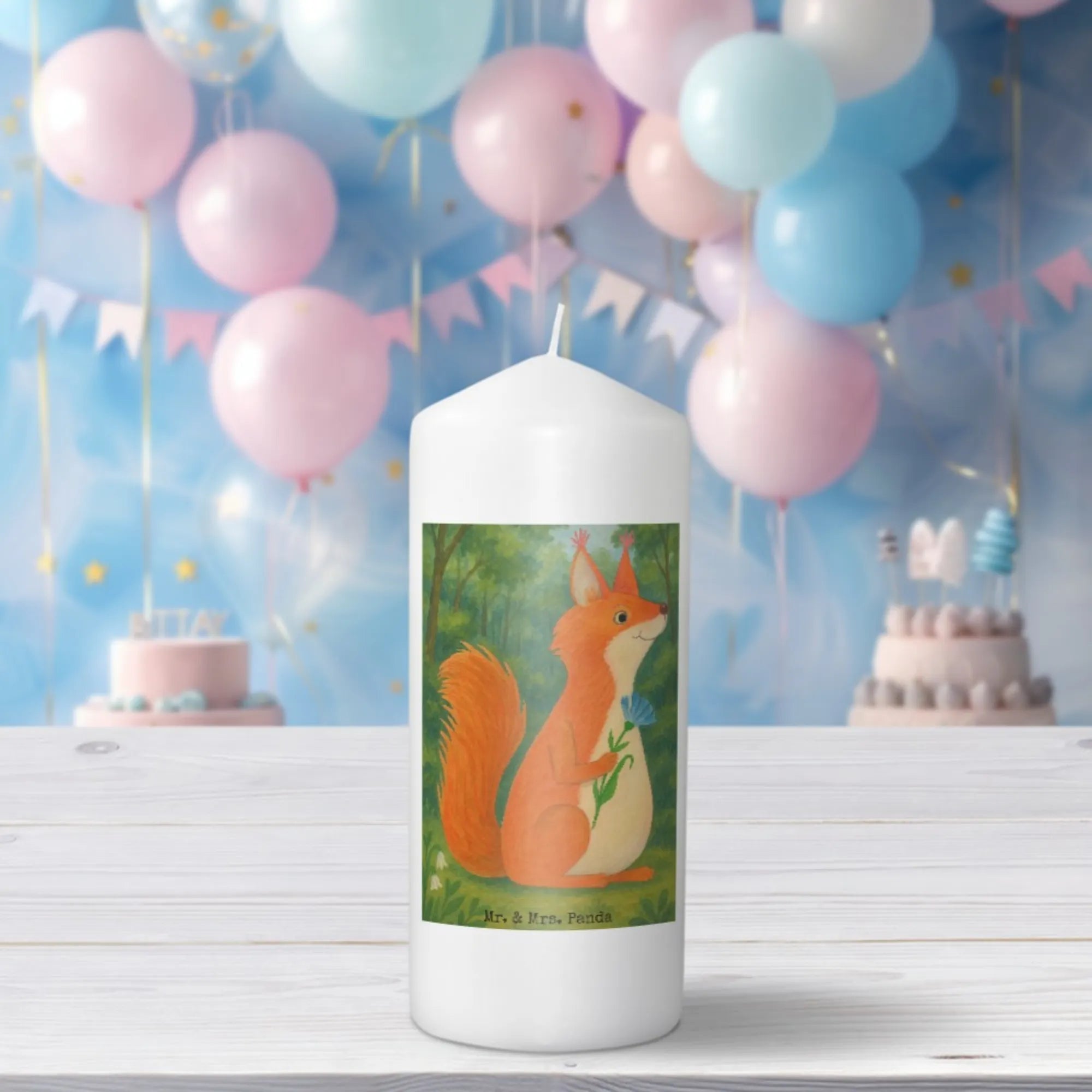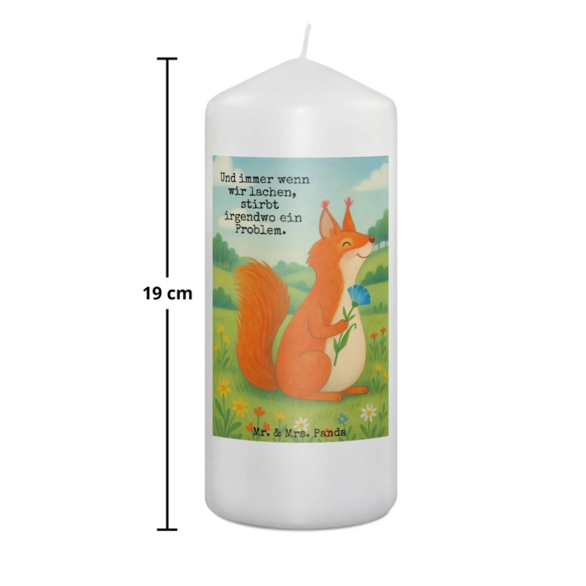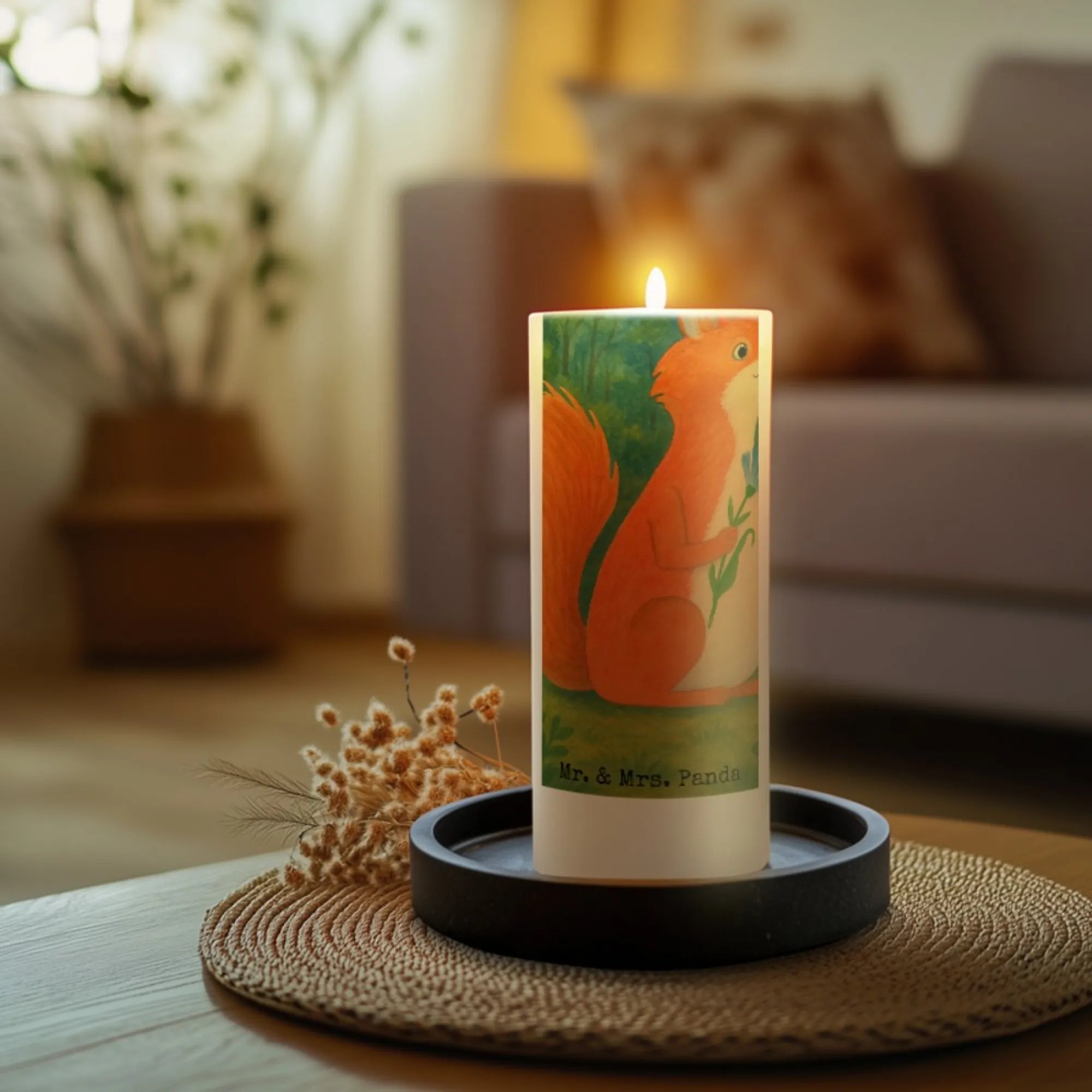 Kerze Eichhörnchen Blume Design - 19 x 8 cm - mit Spruch
