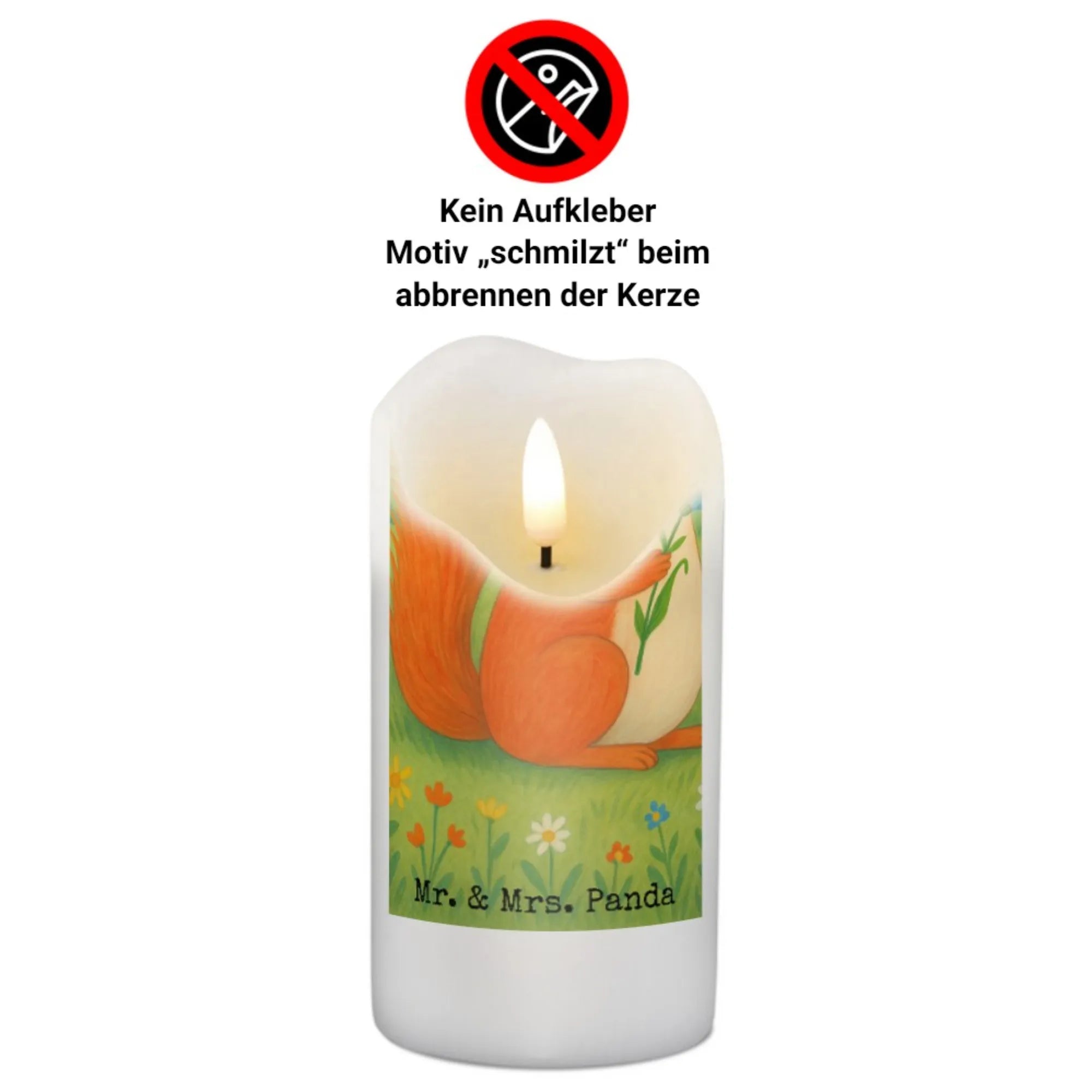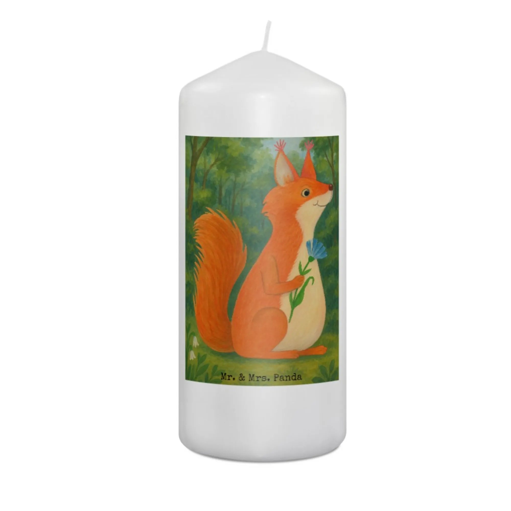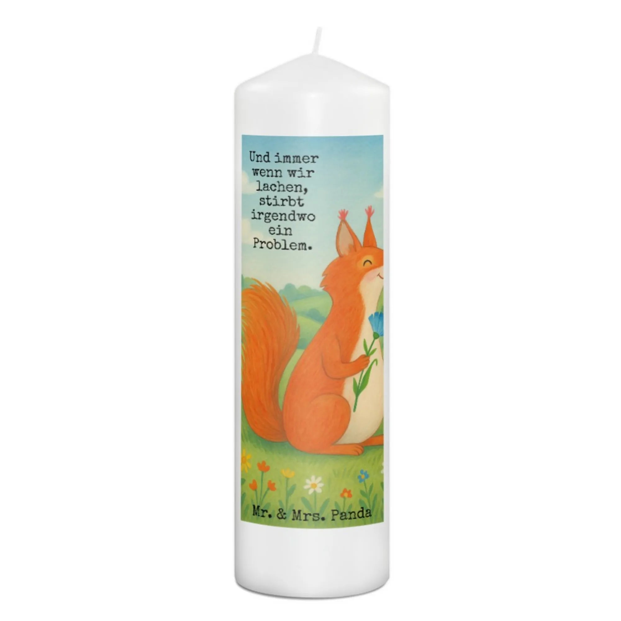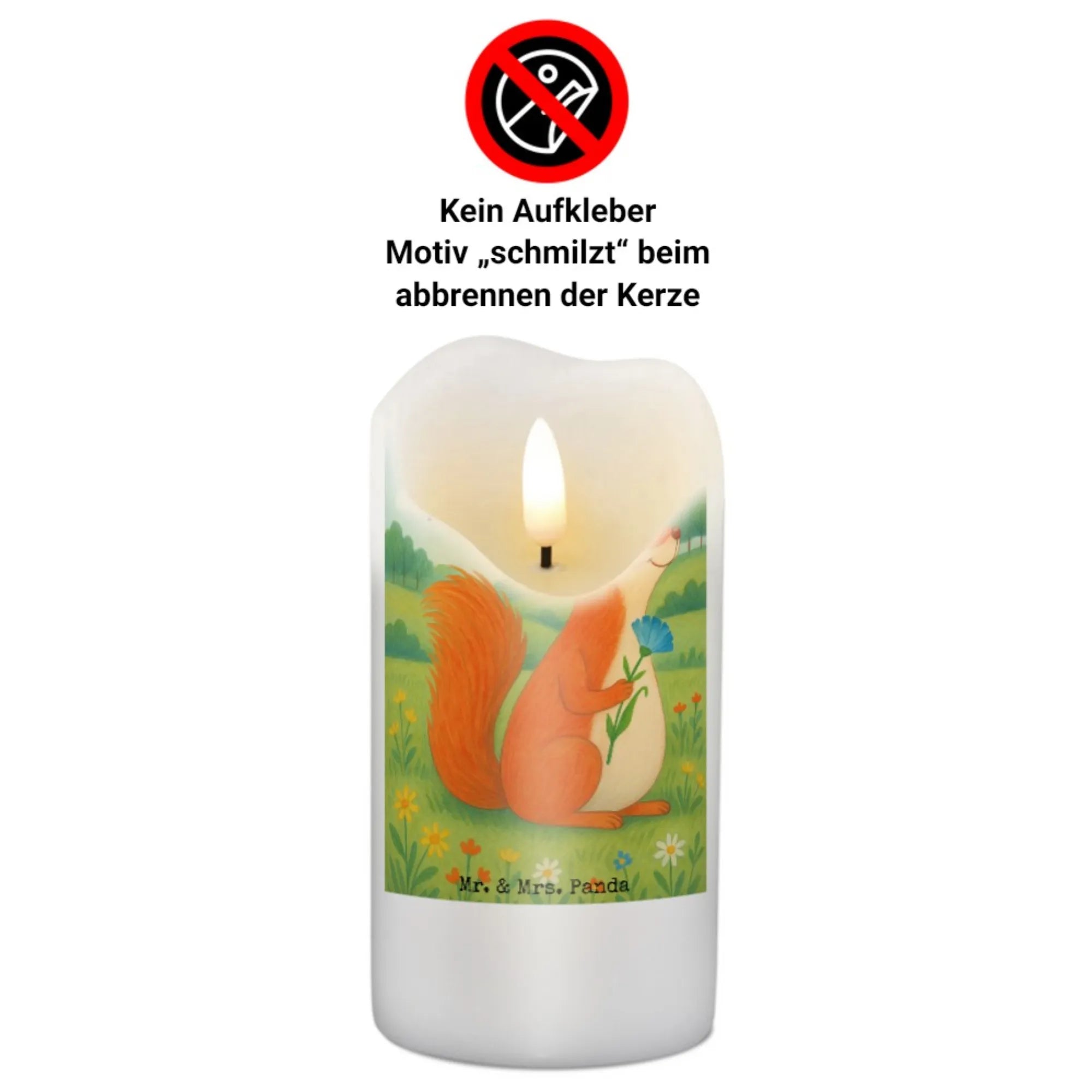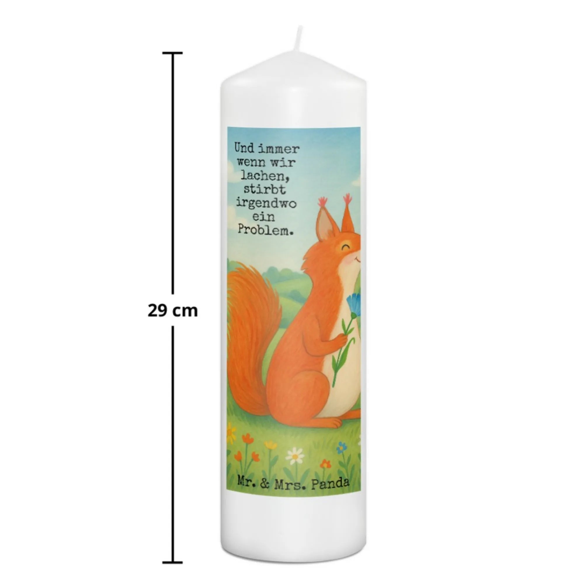Kerze Eichhörnchen Blume Design - 19 x 8 cm - mit Spruch