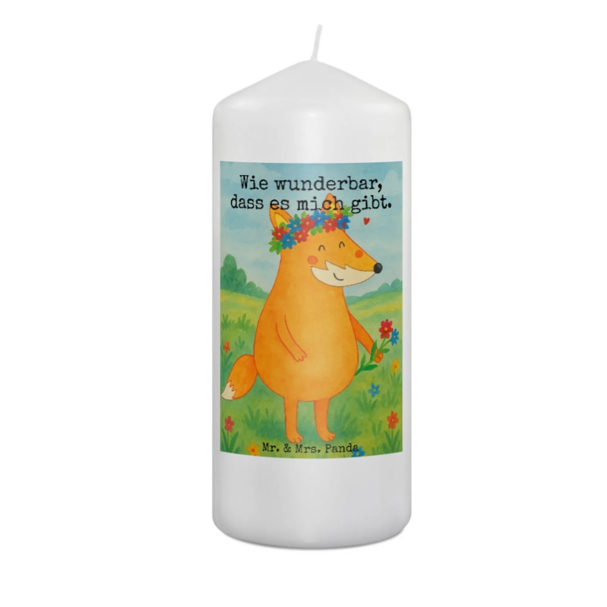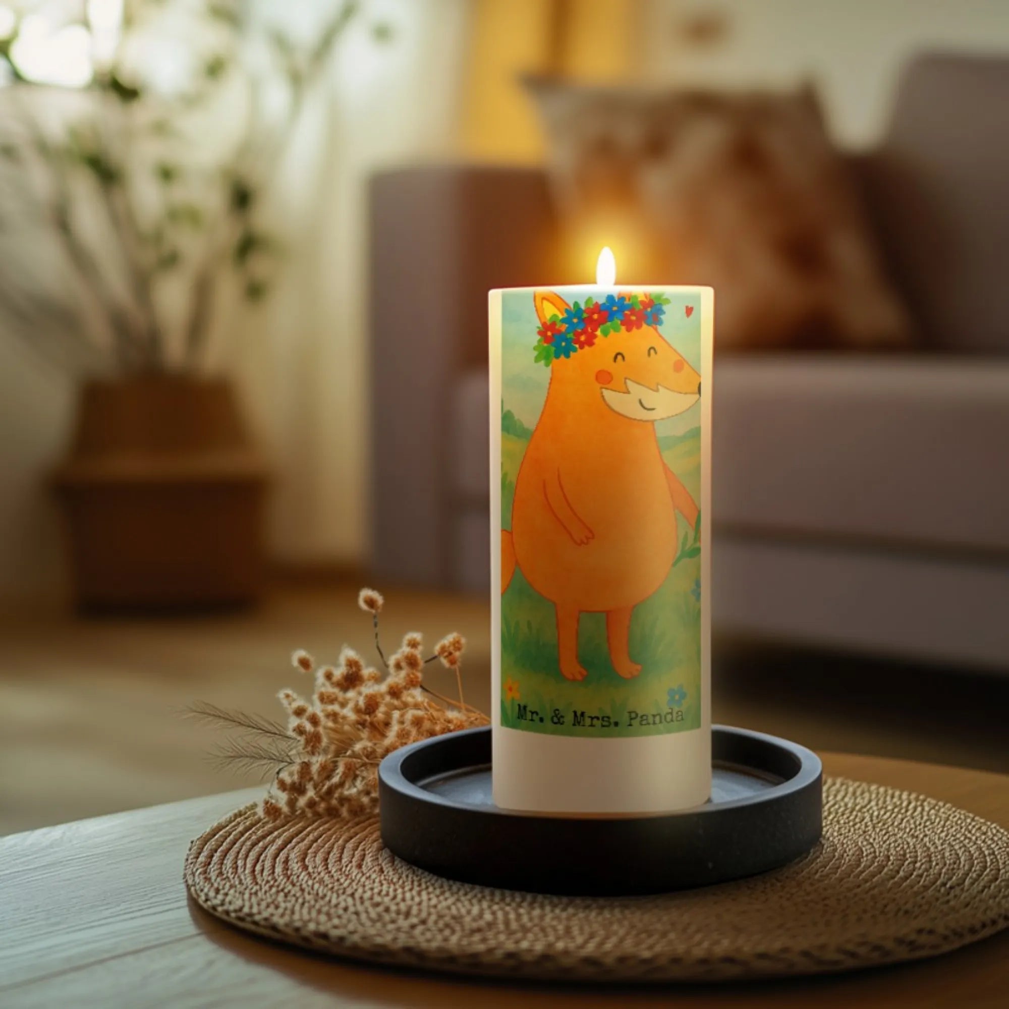 Kerze Fuchs Blumen Design - 19 x 8 cm - mit Spruch