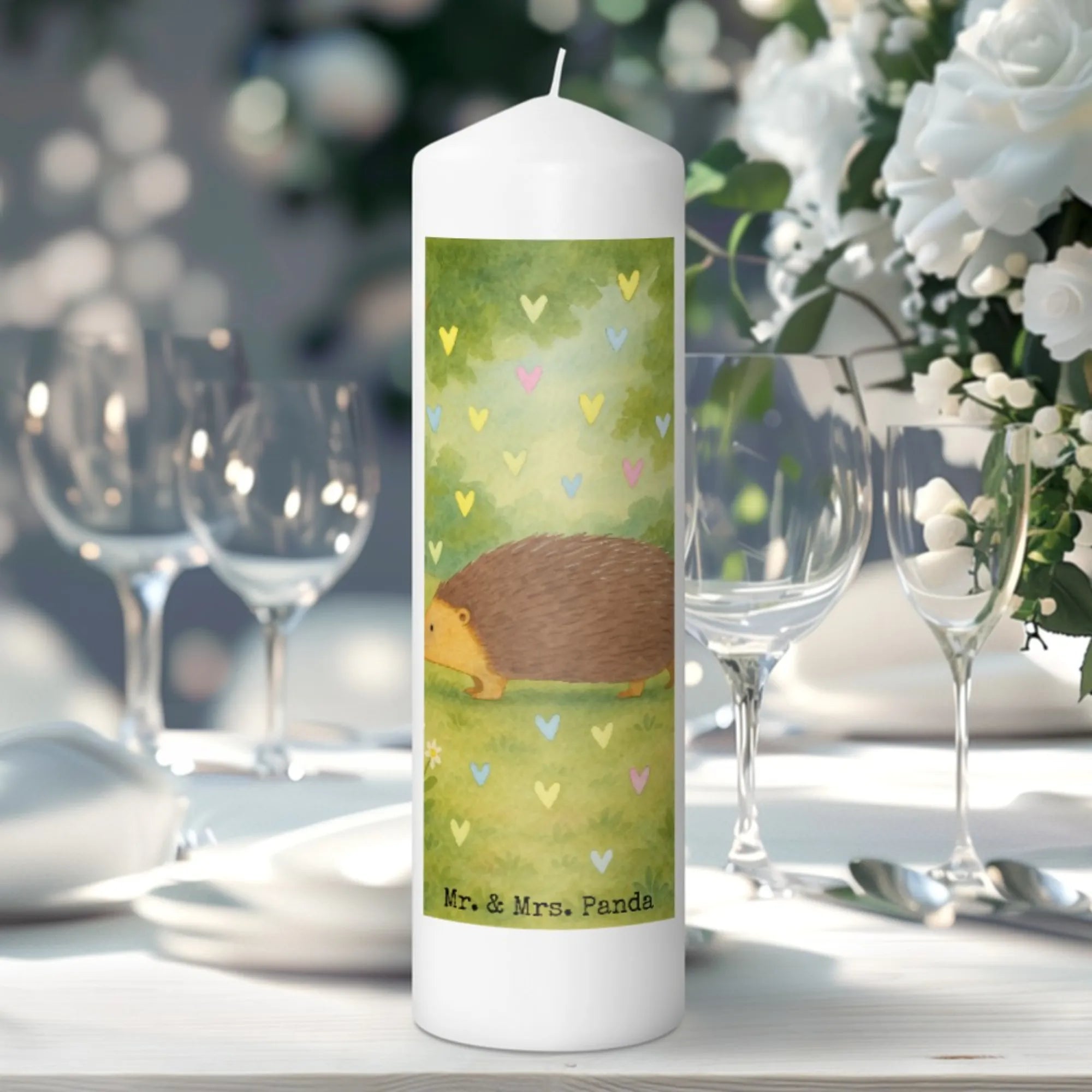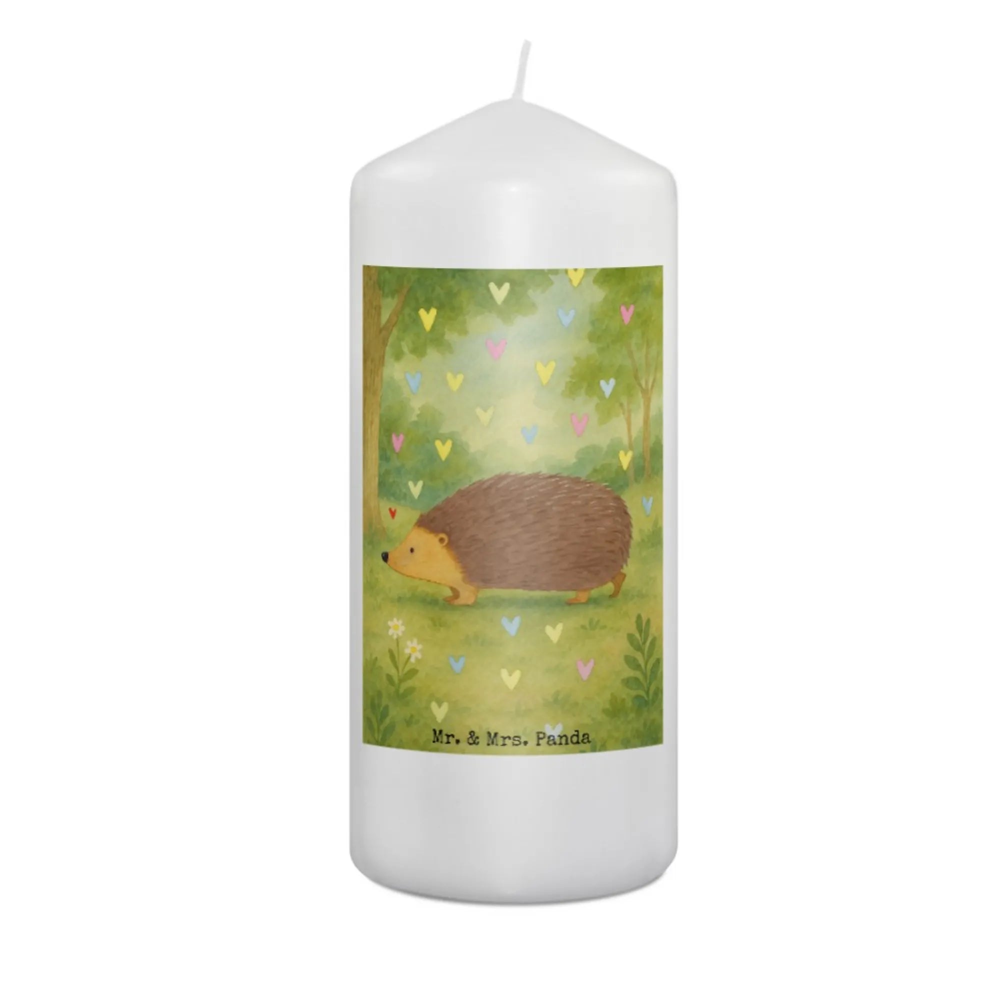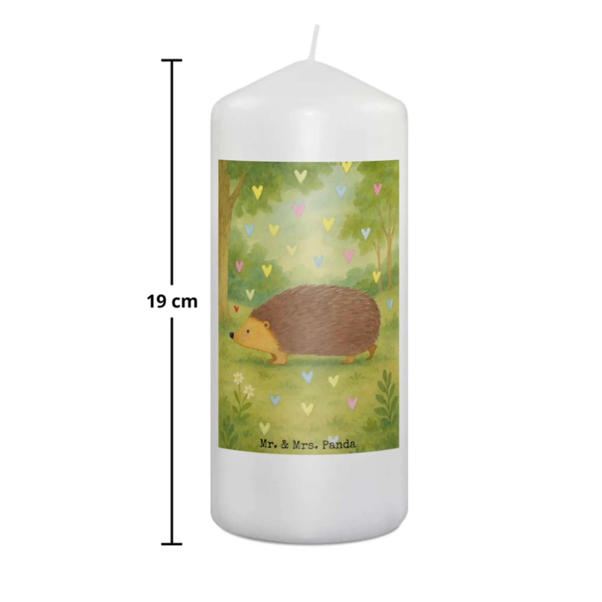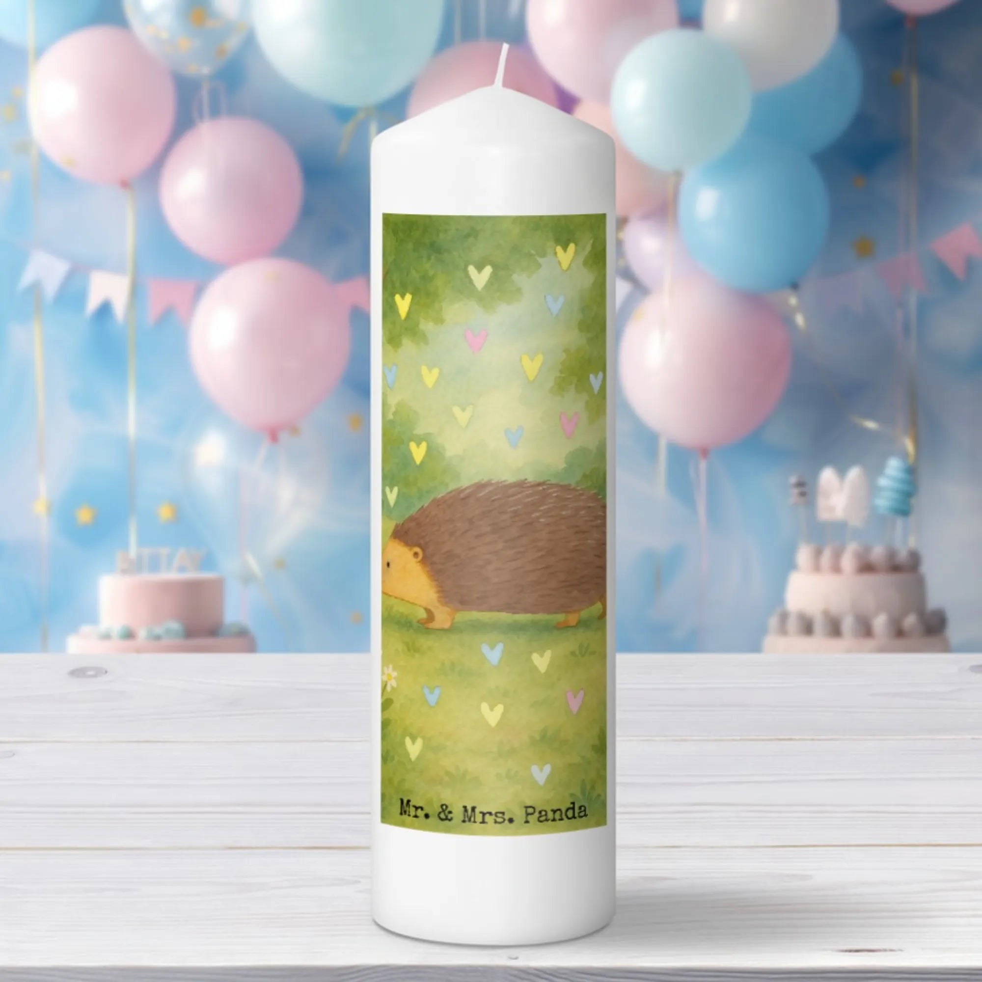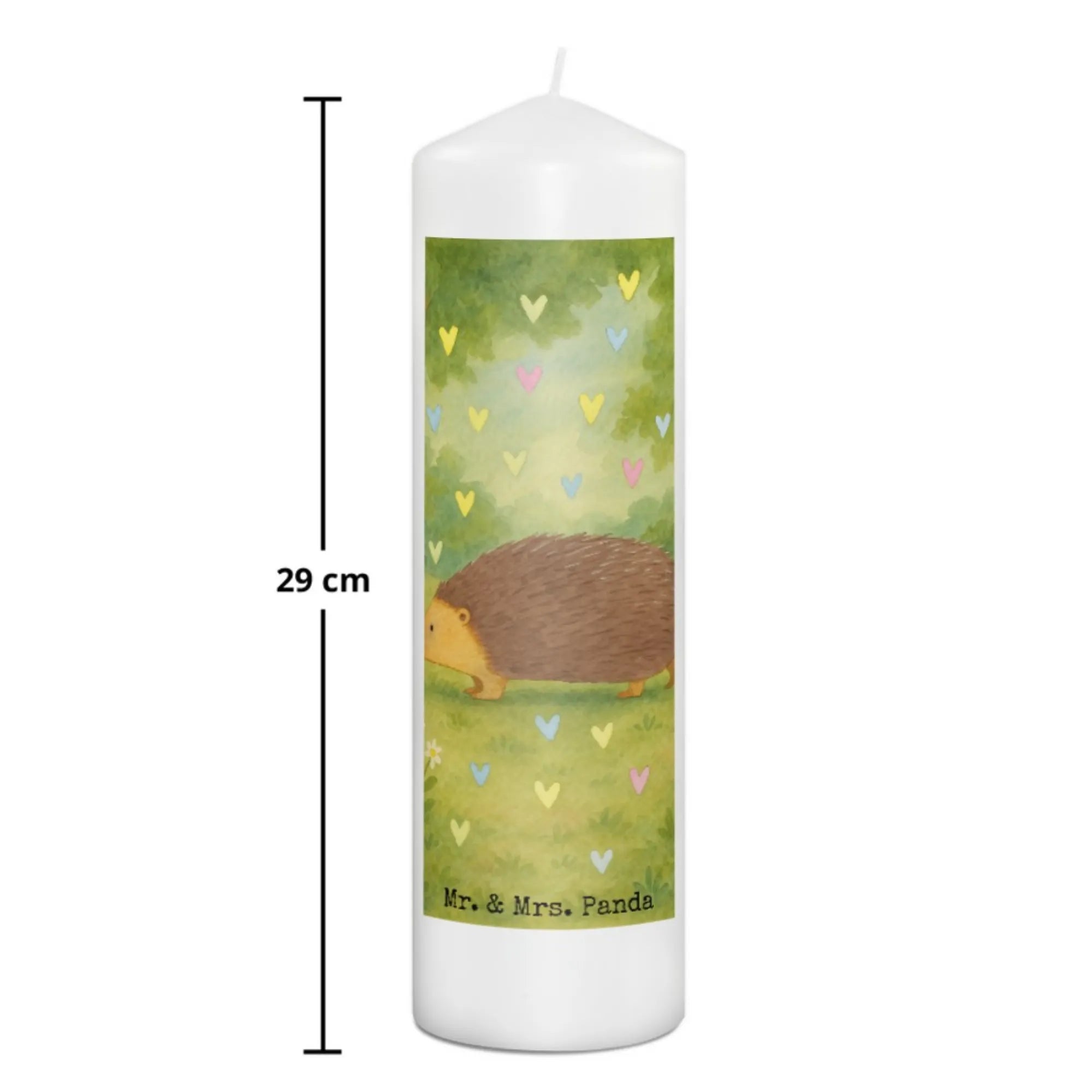 Kerze Igel Herzen Design - 29 x 8 cm XL - mit Spruch