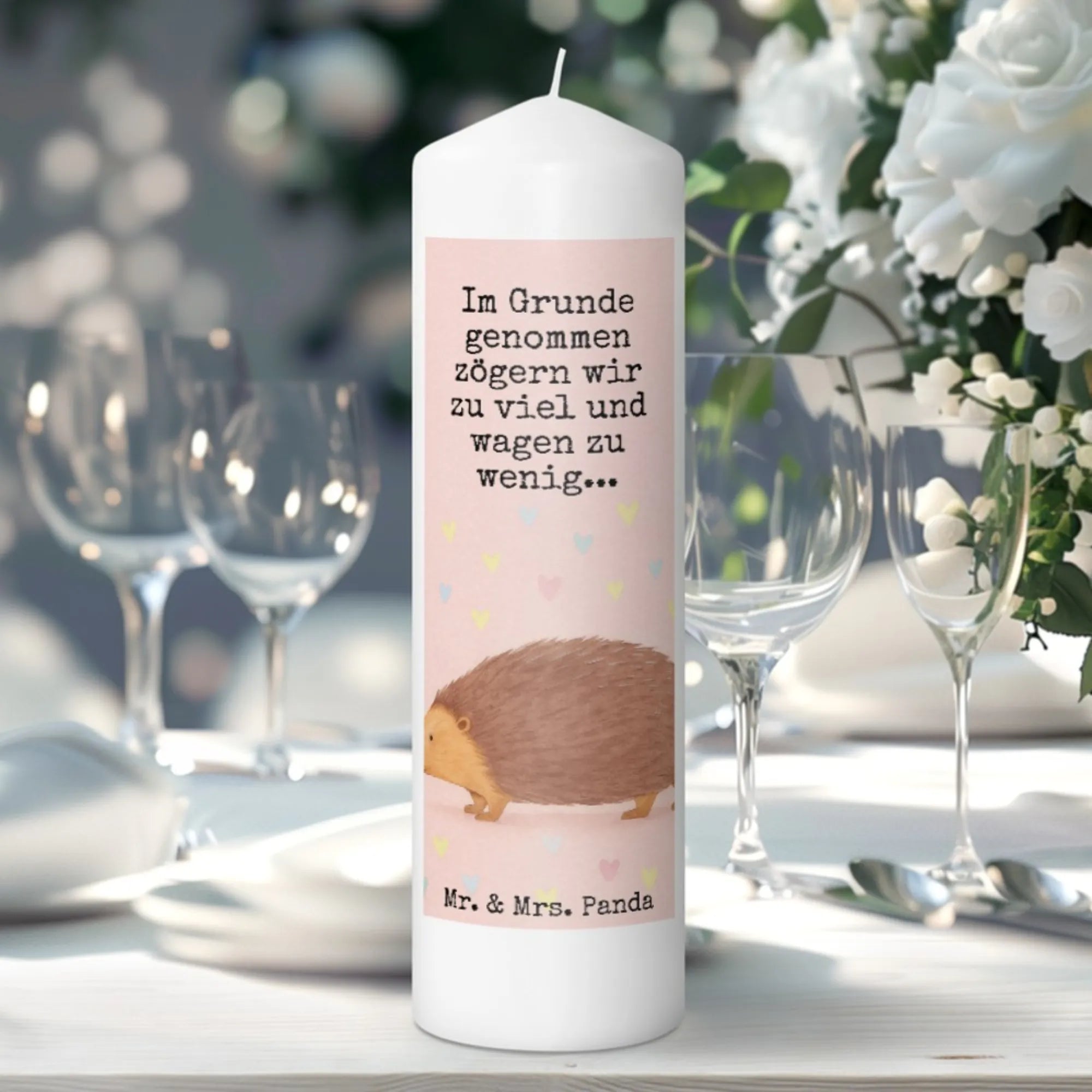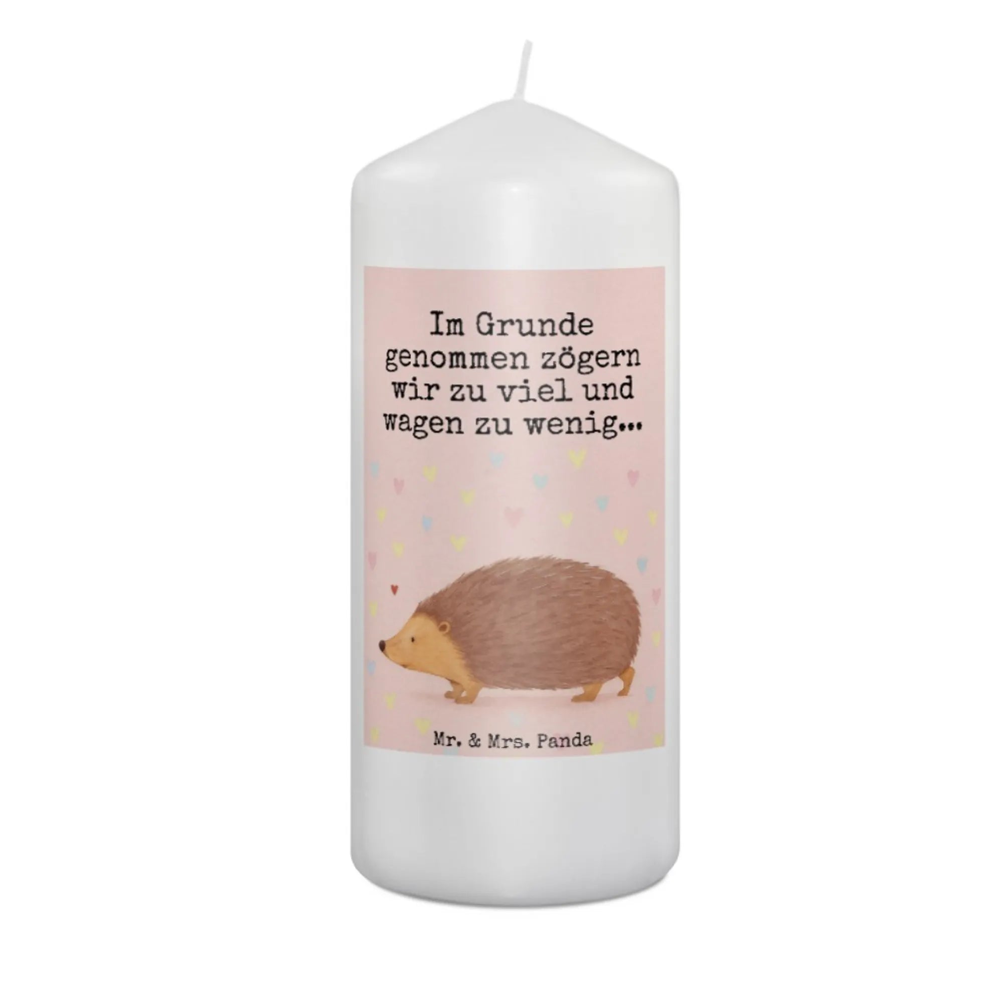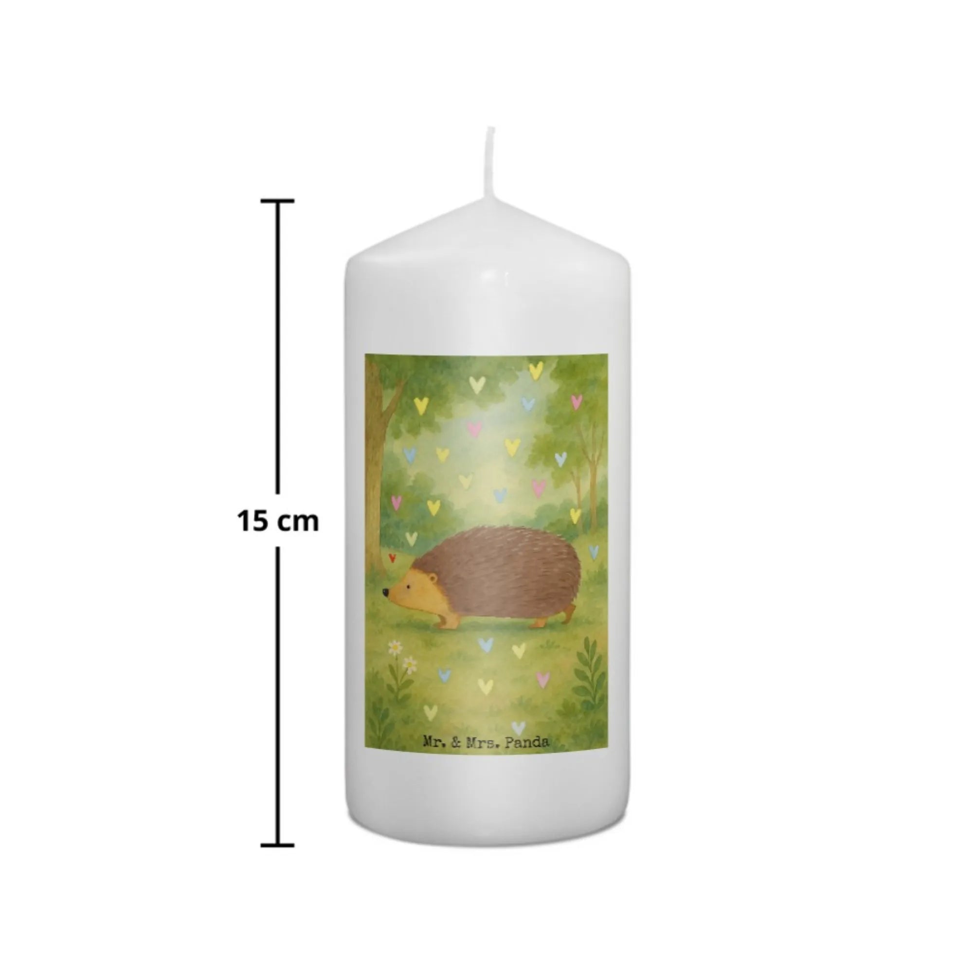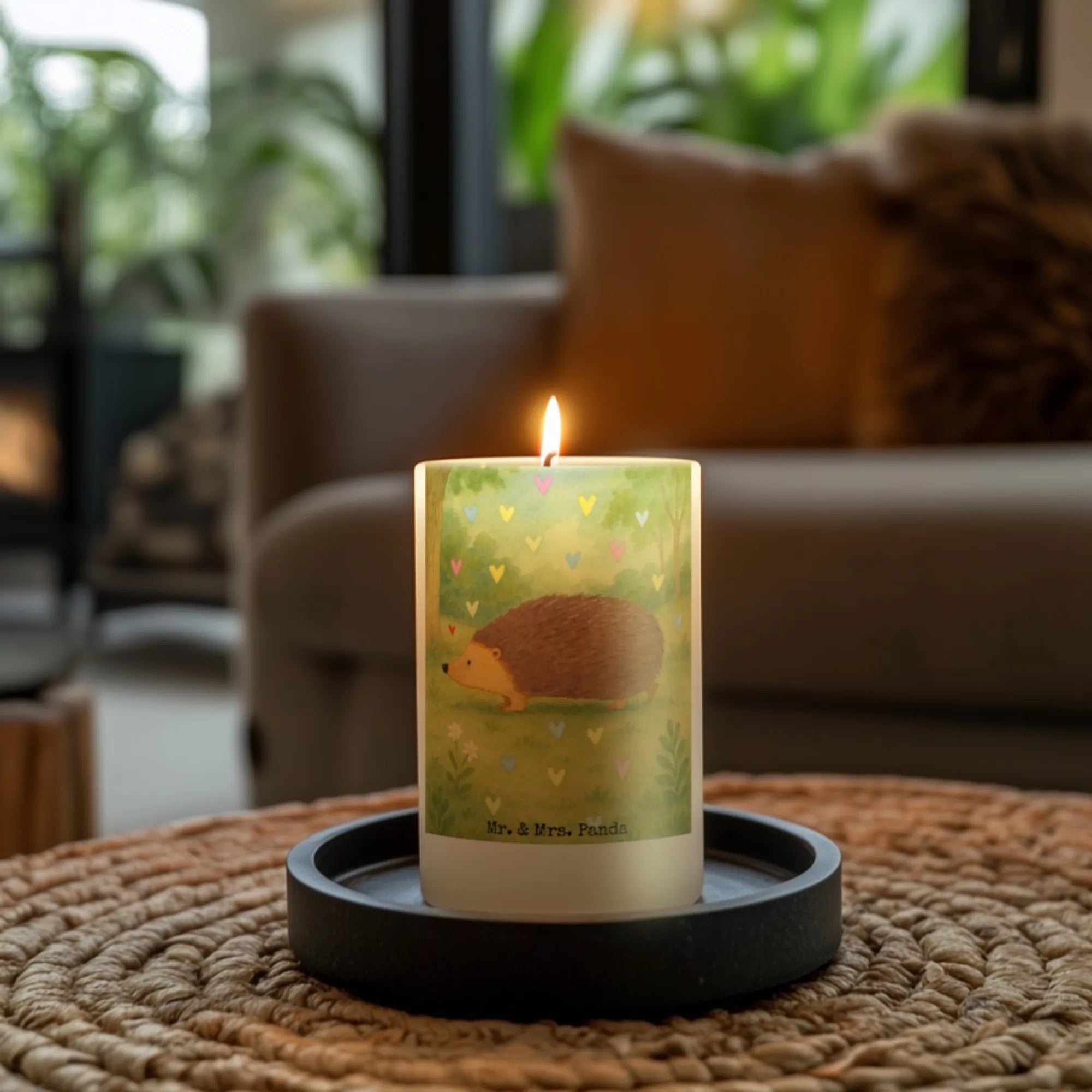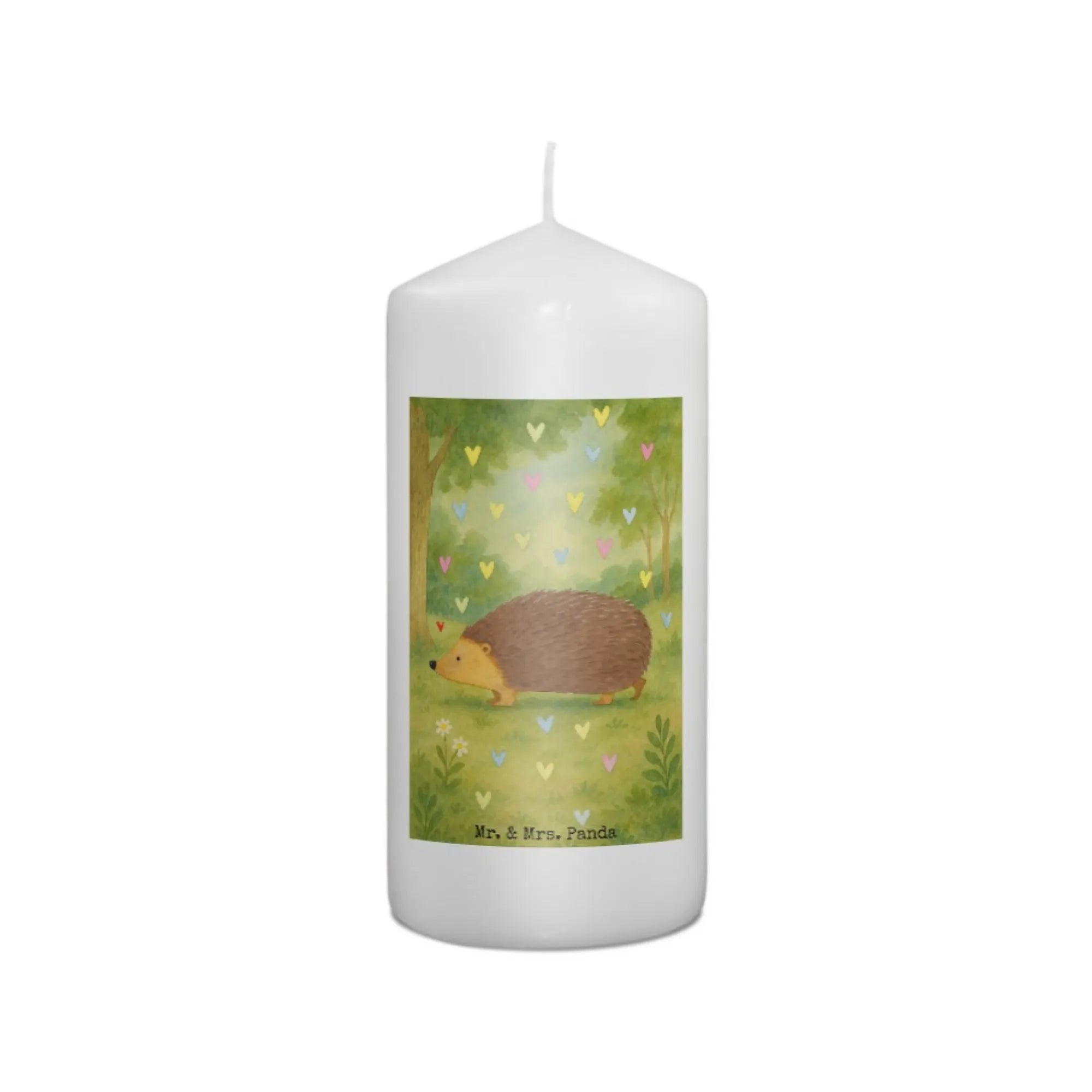 Kerze Igel Herzen Design - 29 x 8 cm XL - mit Spruch