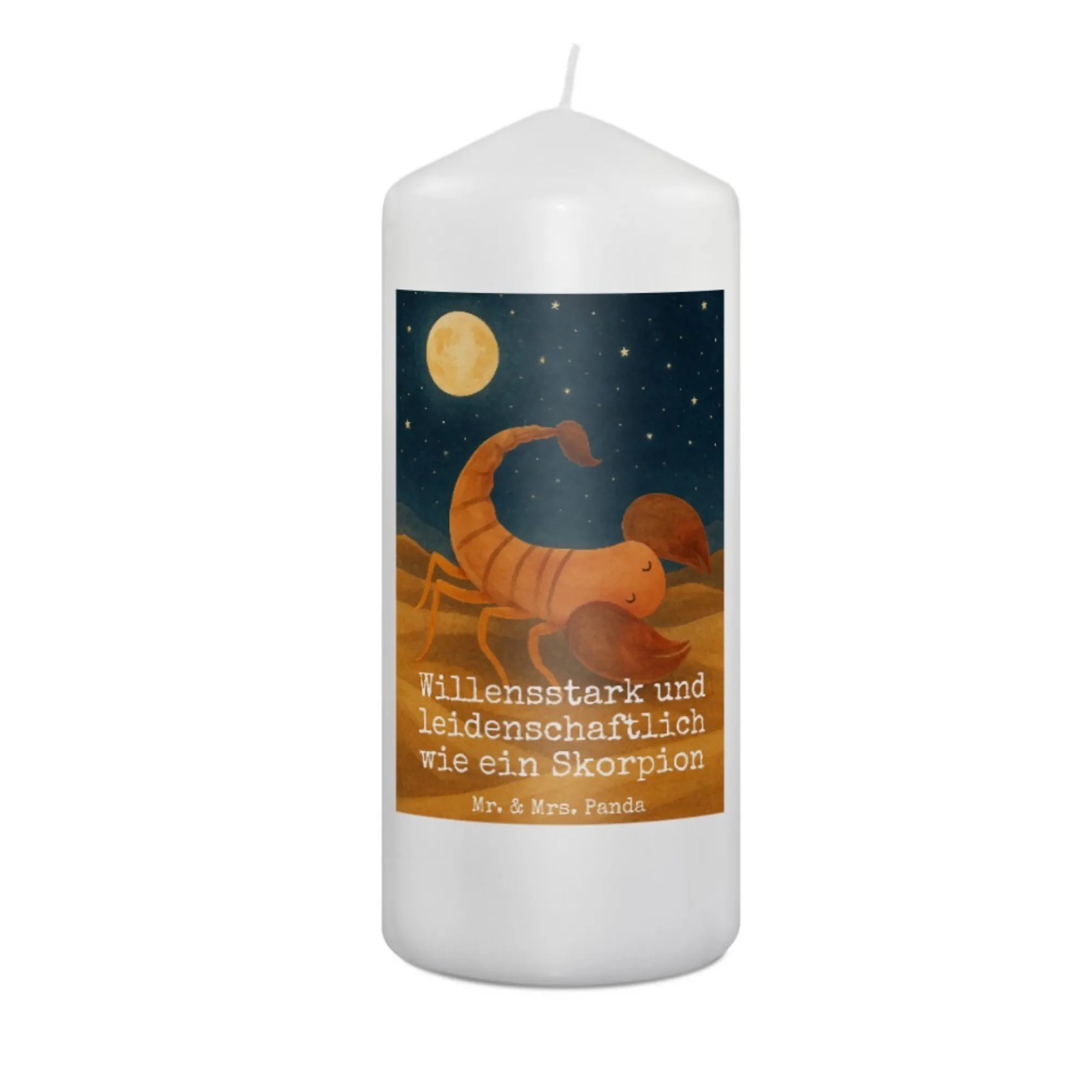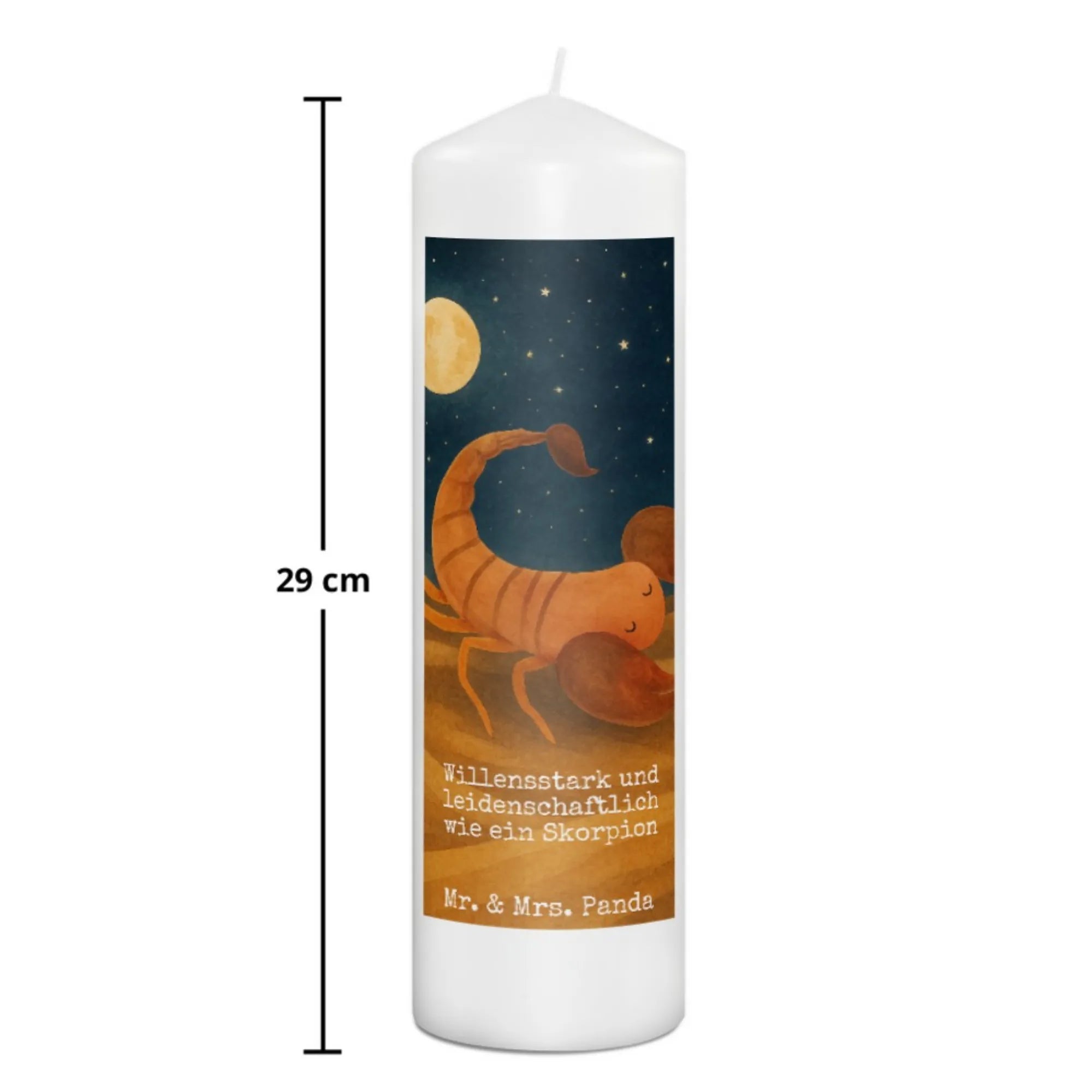 Kerze Sternzeichen Skorpion Design - 29 x 8 cm XL - mit Spruch
