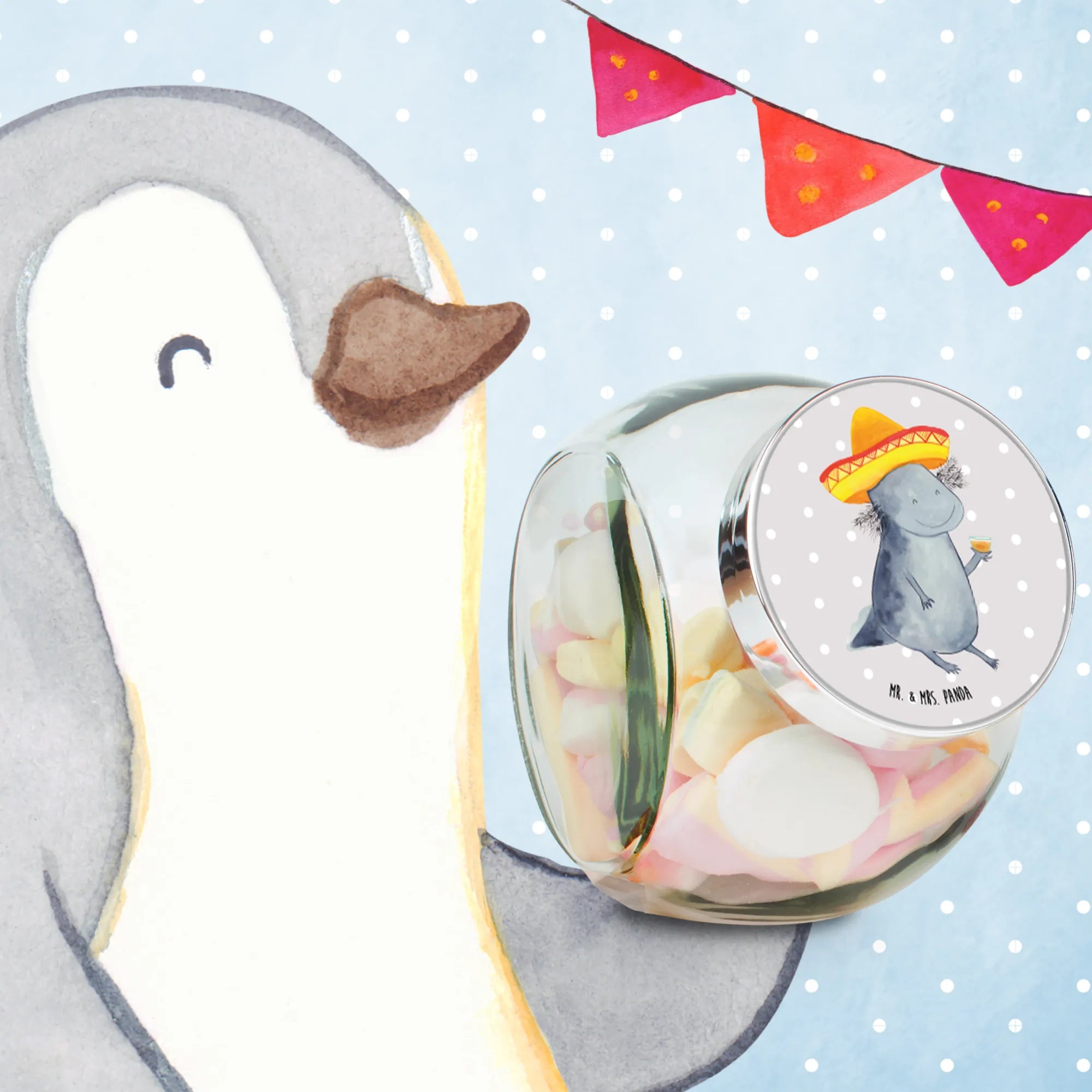 So, whether you're a fan of amphibians, a lover of all things whimsical, or just in need of an efficient way to organize your kitchen with a touch of quirky charm, the Mr. & Mrs. Panda Candy Jar with the Axolotl Tequila motif captures it all. It’s more than just a storage container; it’s a piece of art that speaks to those who appreciate creativity, cute designs, and practical functionality. Don't miss out on adding this to your collection or gifting it to someone who deserves a special treat!