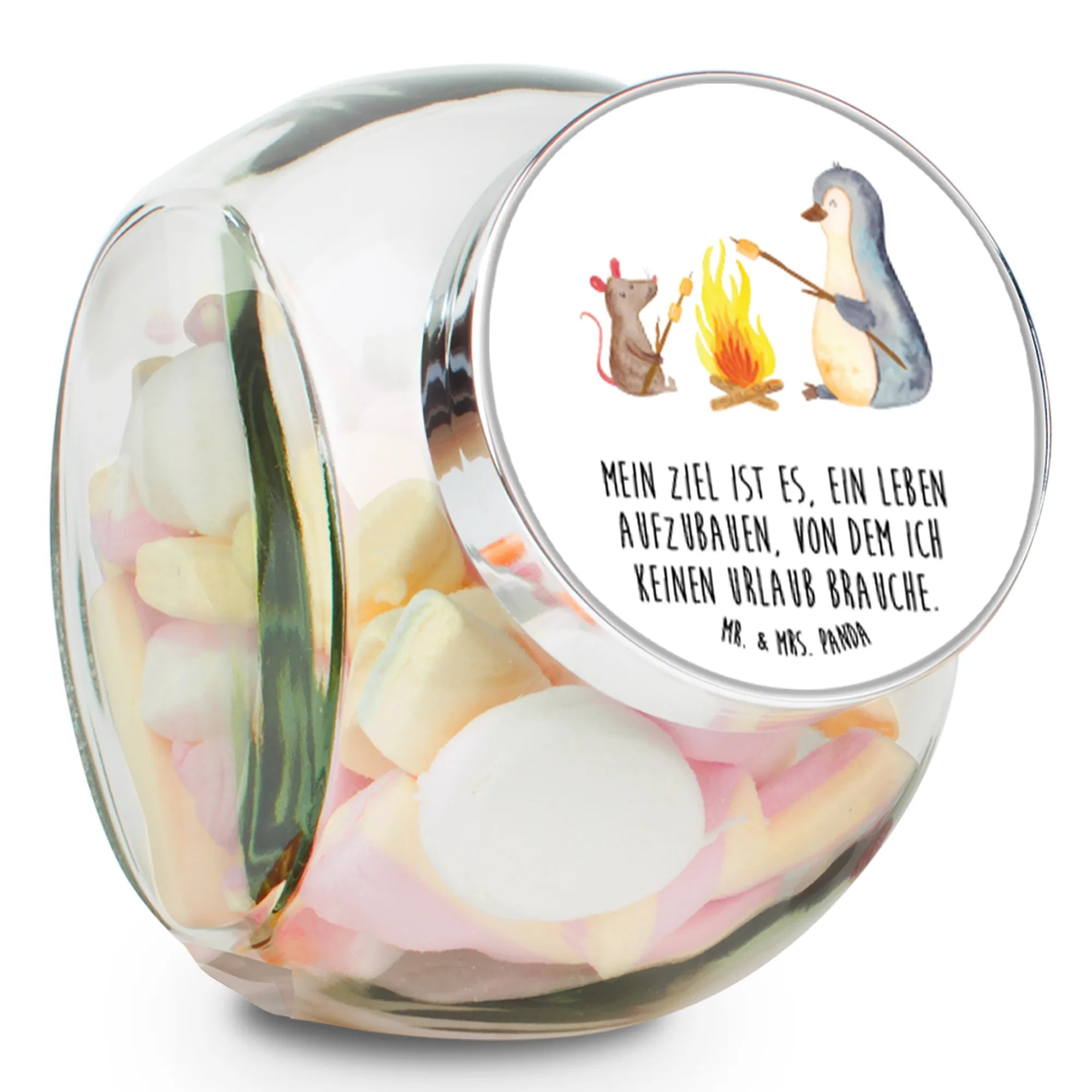 Featuring an adorable illustration of a penguin and its little mouse friend roasting marshmallows by a crackling campfire, this candy jar captures the essence of comfort and togetherness, making it an ideal gift for lovers of cute designs and cozy vibes.