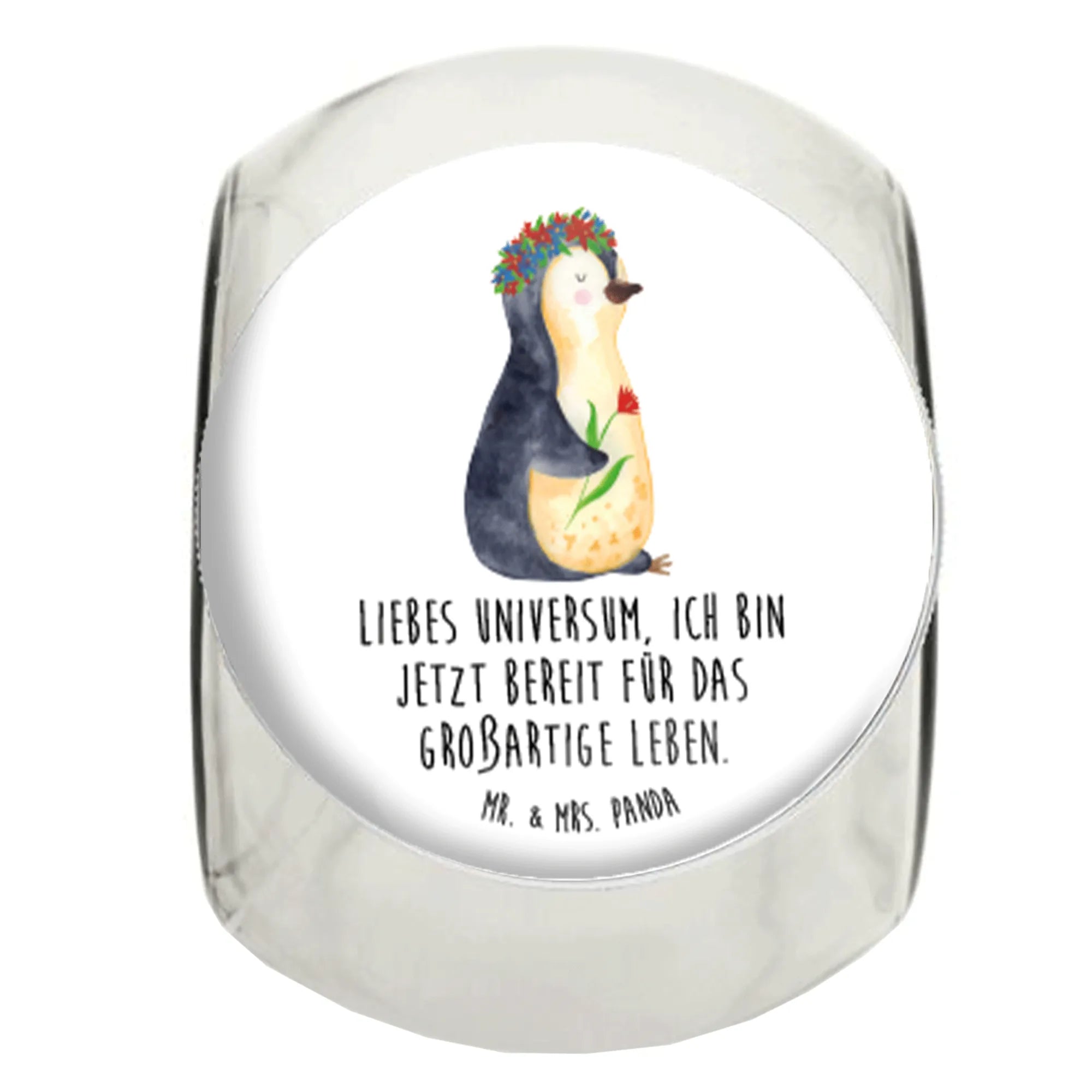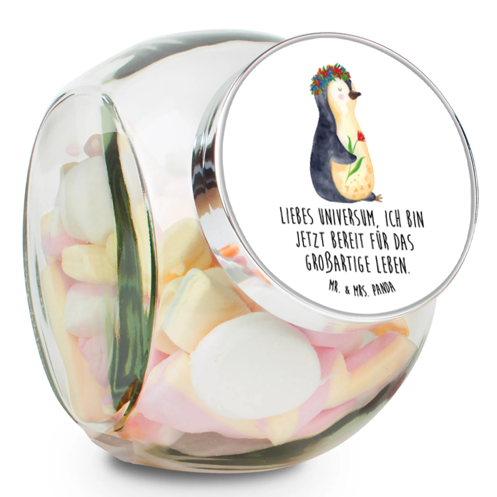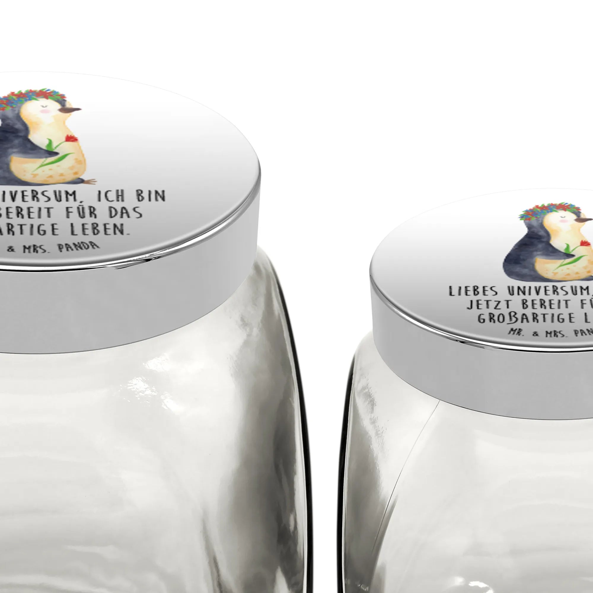 Candy Jar Penguin Flower - XL 2000ml - with a saying - White