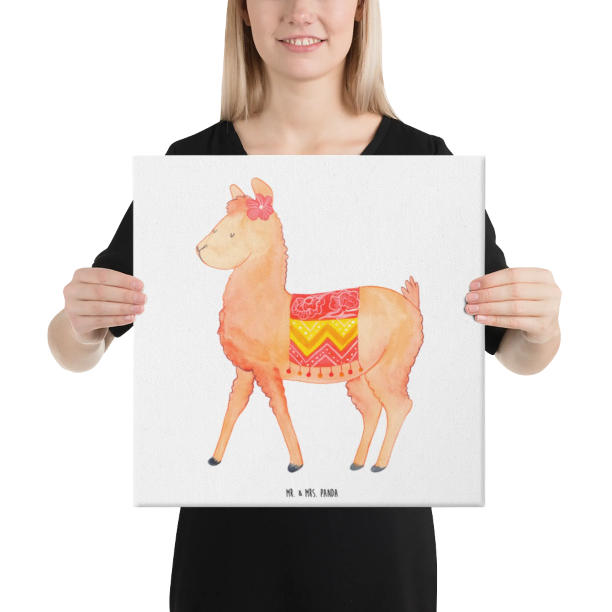Canvas picture alpaca Proud - 40 x 40 cm - with saying - White