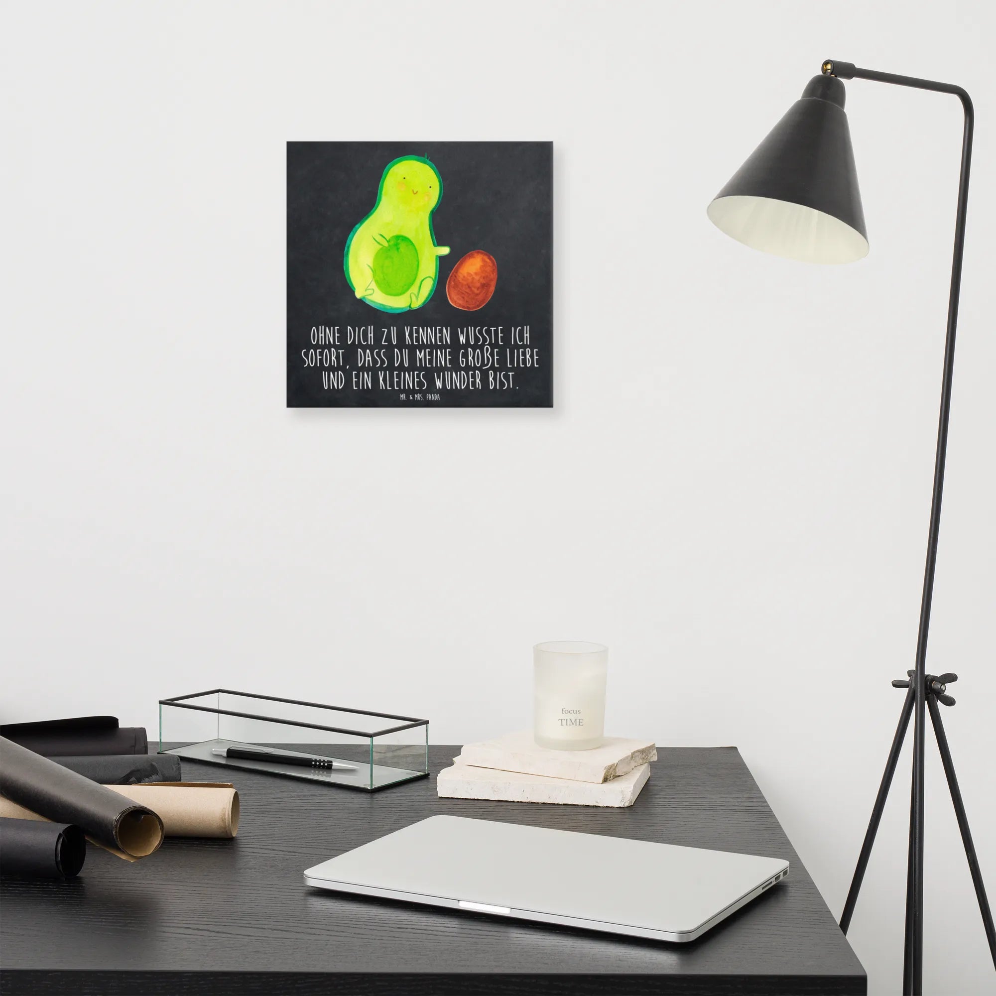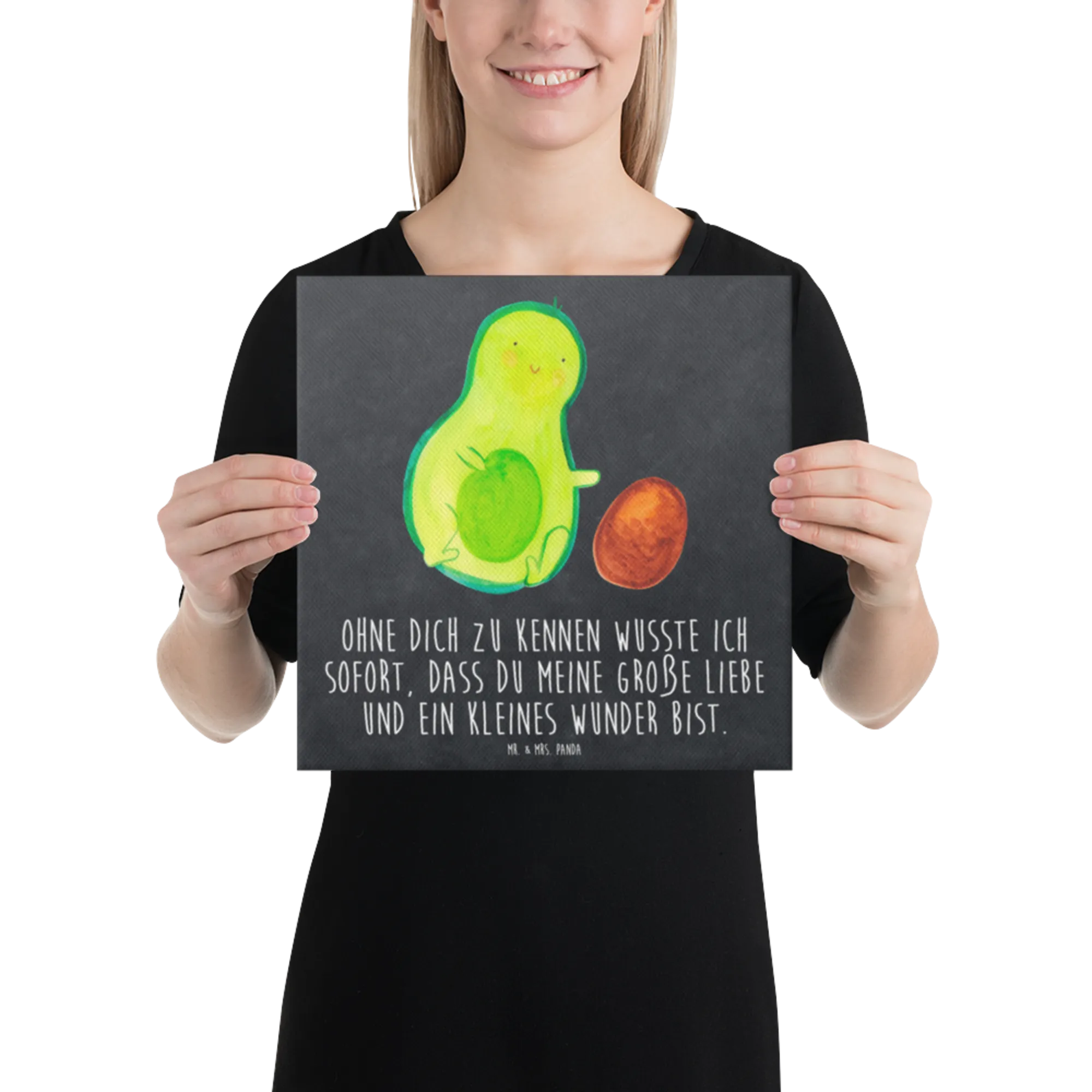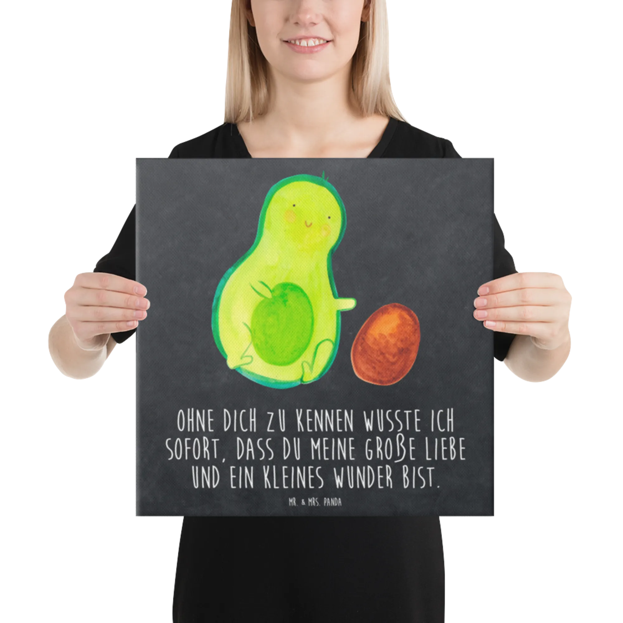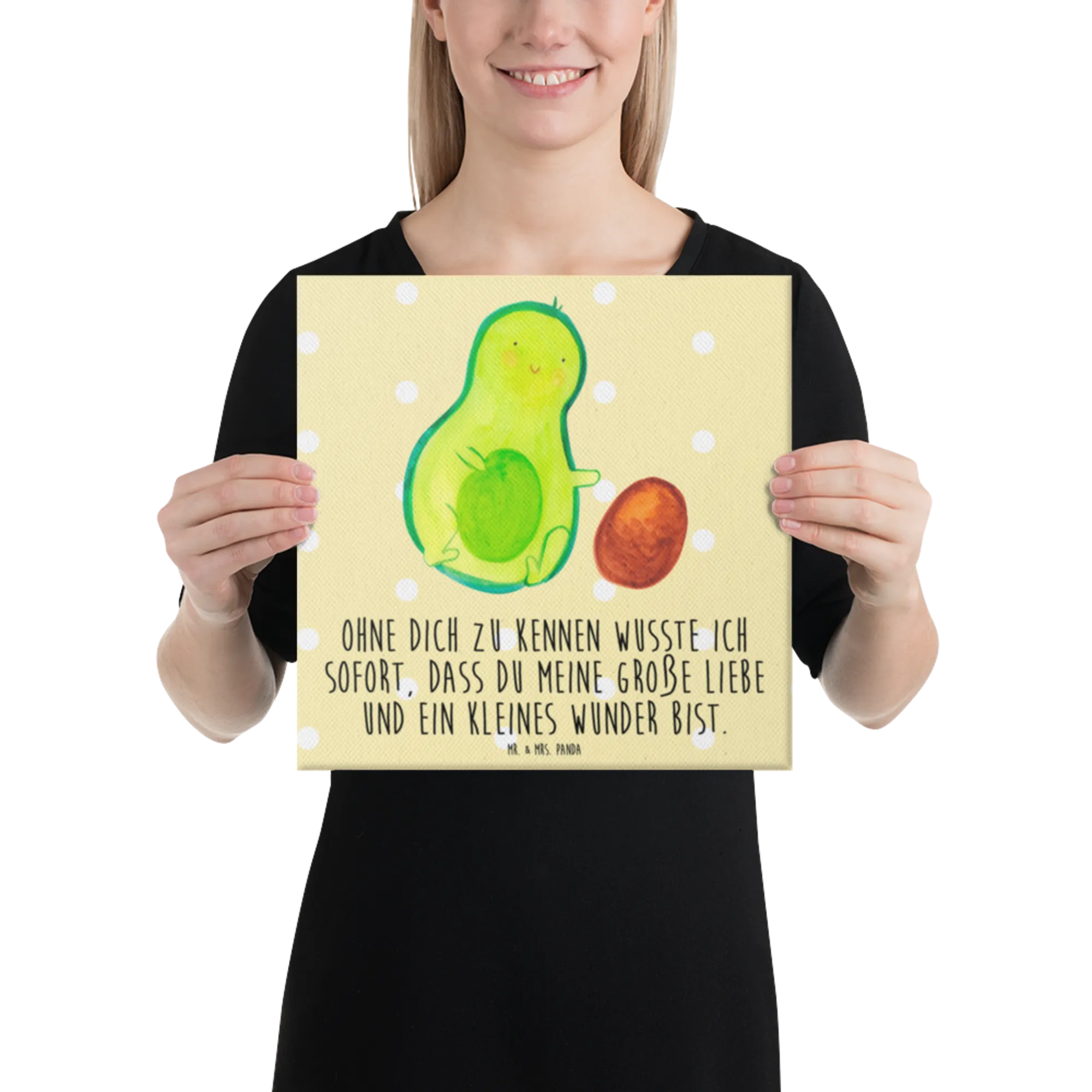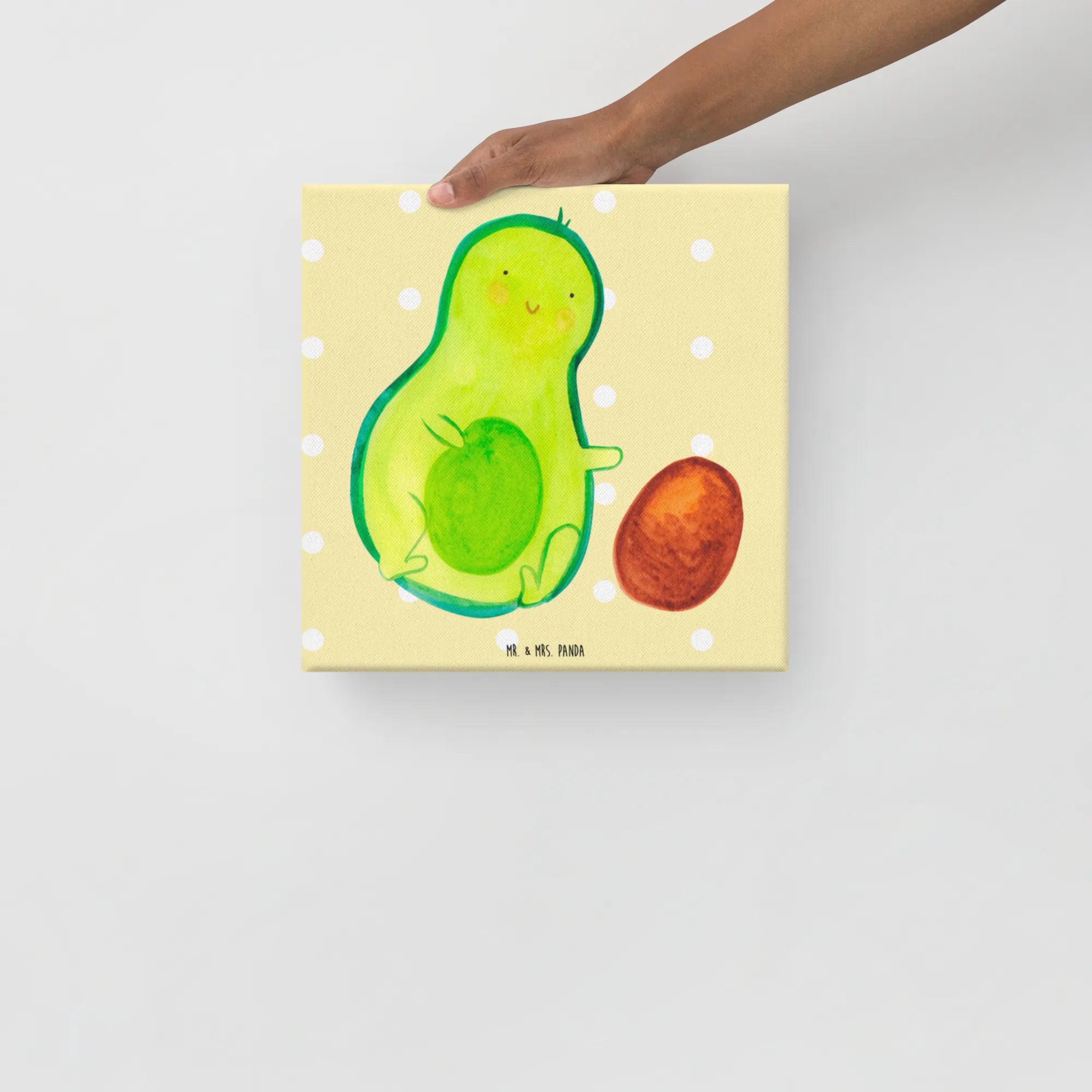 Canvas picture avocado core rolls - 40 x 40 cm - with a saying - Yellow Pastel