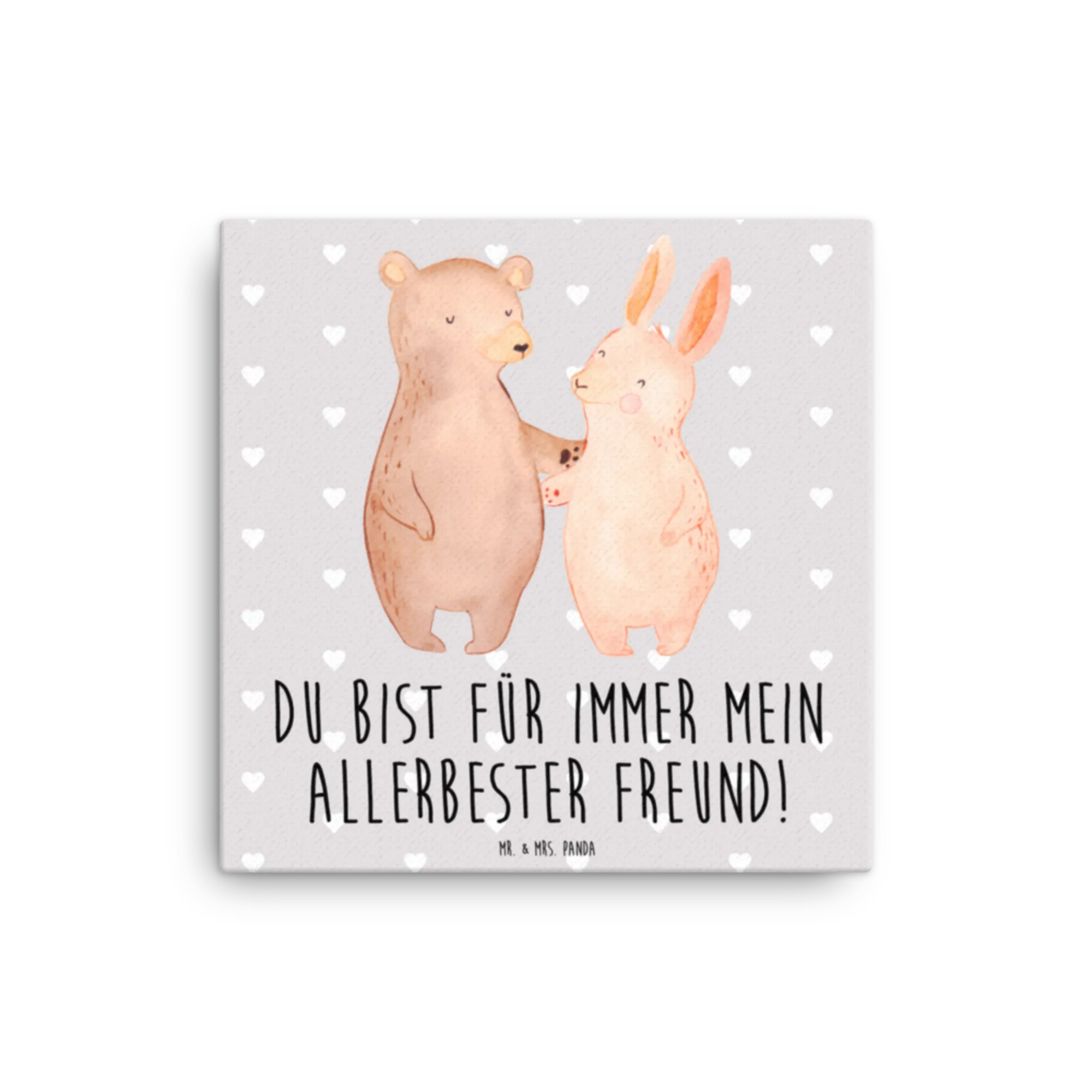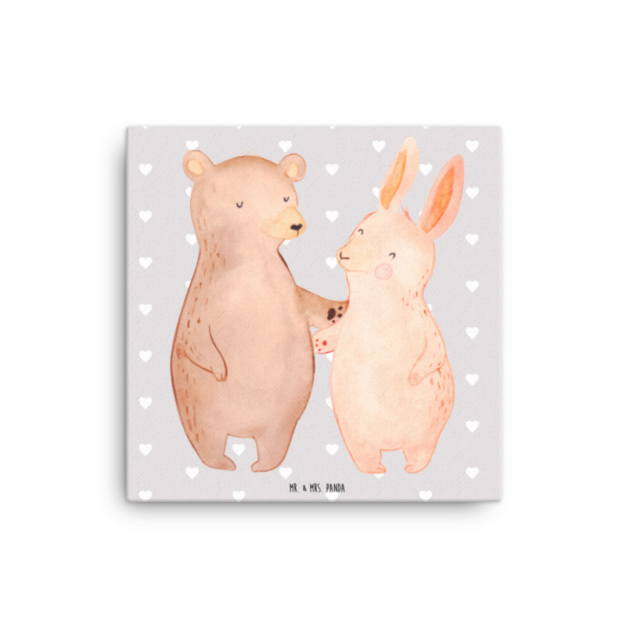 Canvas picture bear and rabbit Embrace - 40 x 40 cm - with a saying - White