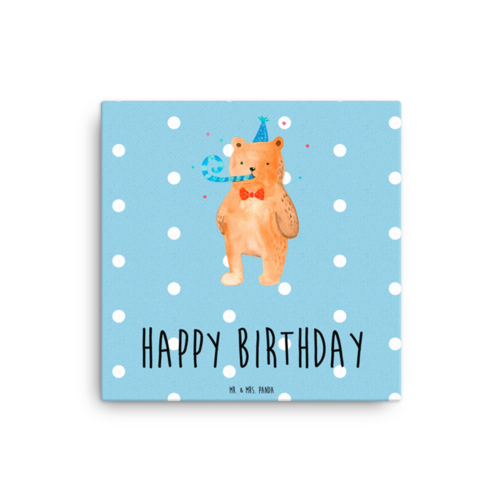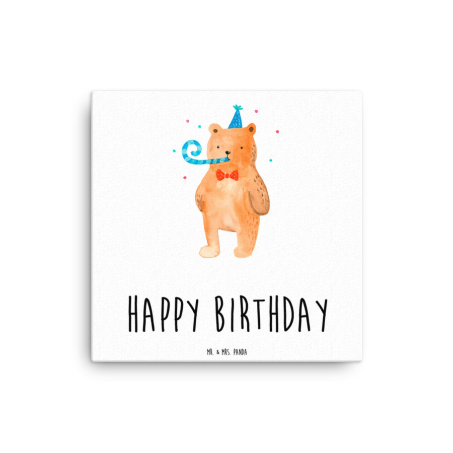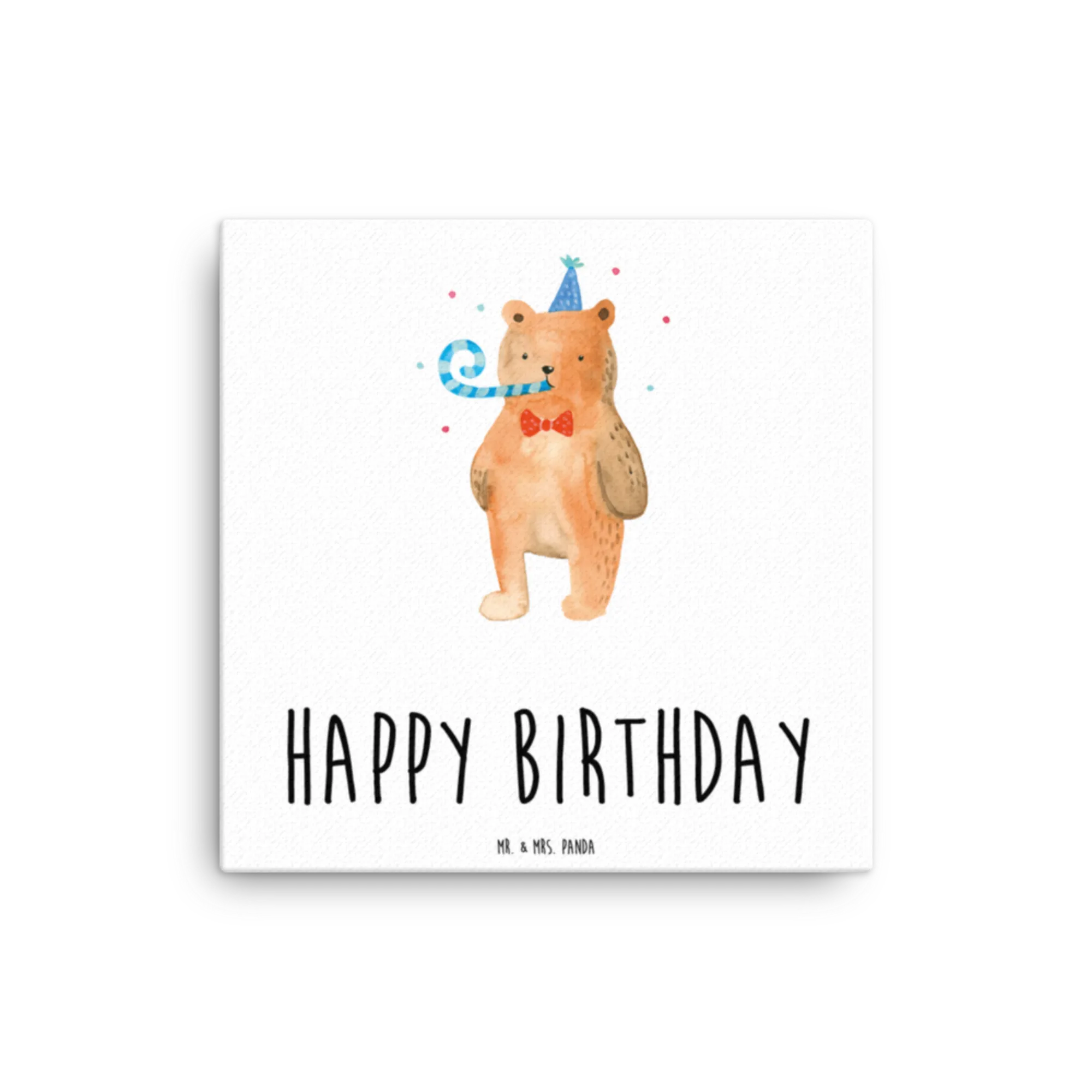 Canvas picture bear Birthday - 40 x 40 cm - with a saying - White