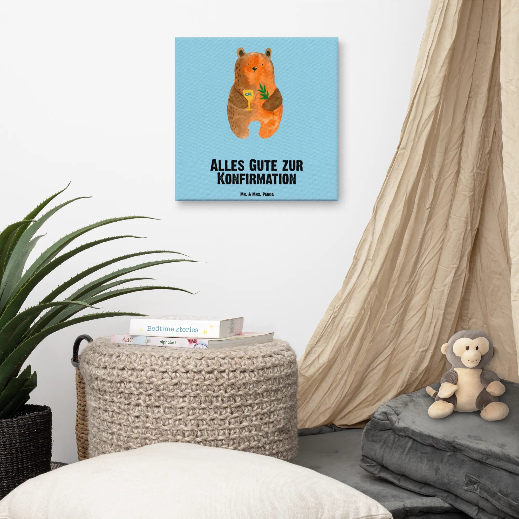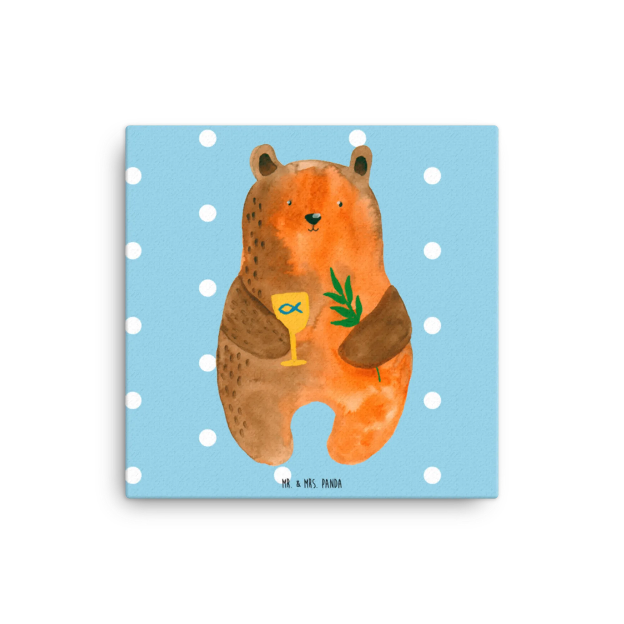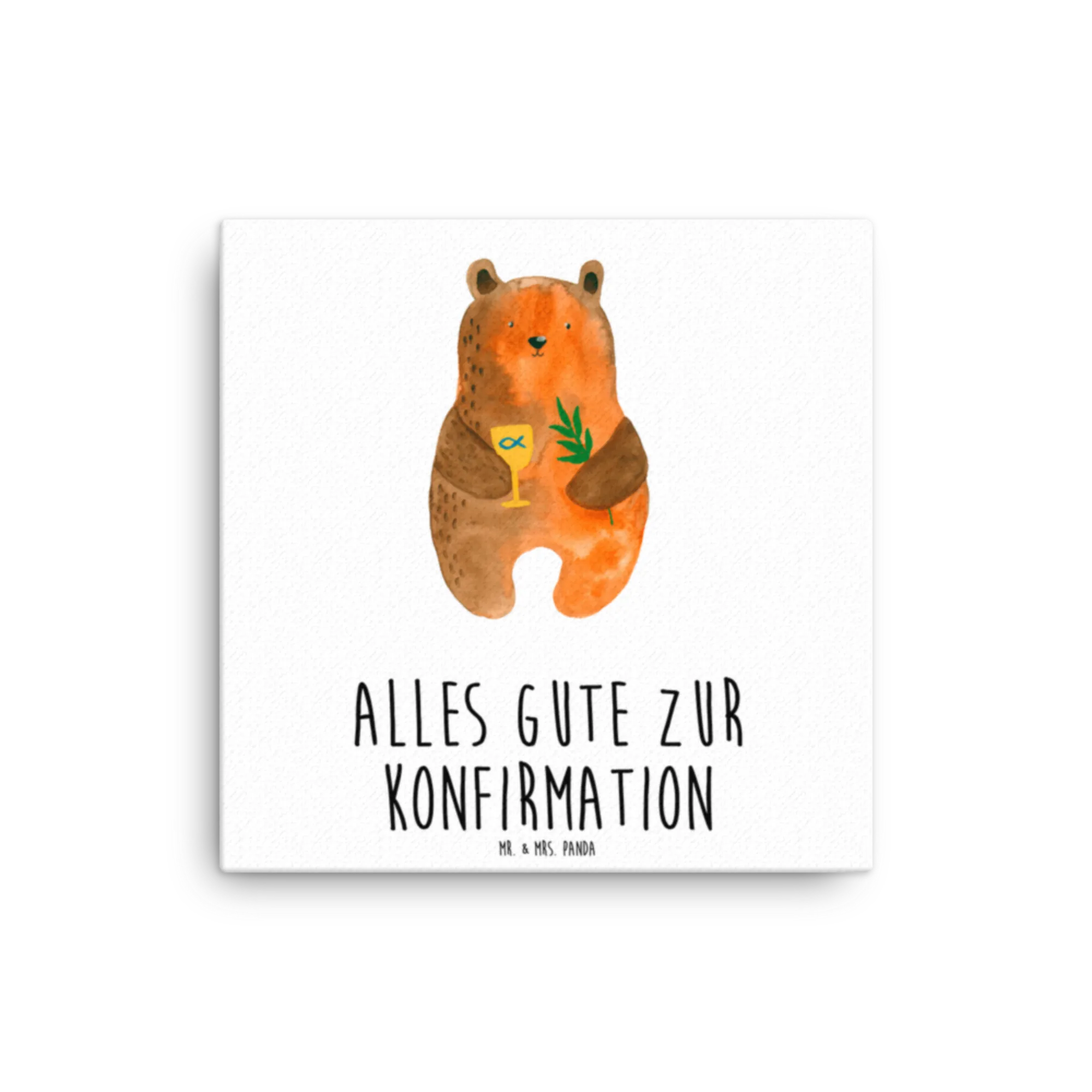 Canvas picture bear confirmation - 40 x 40 cm - with a saying - White