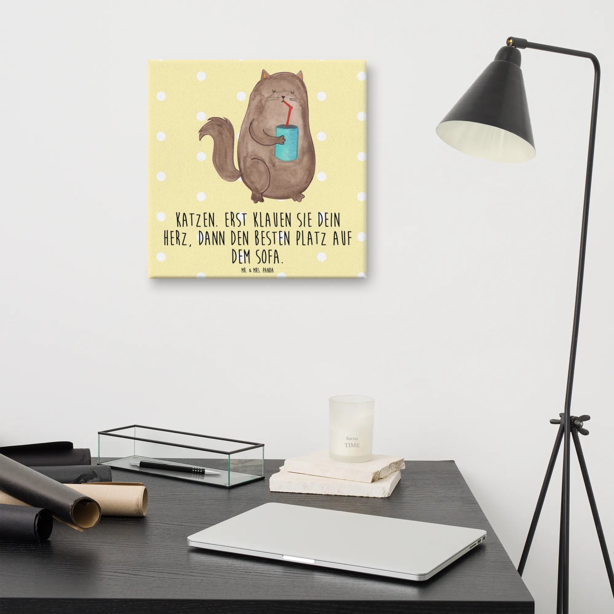 Canvas picture Cat can - with a saying - Yellow Pastel
