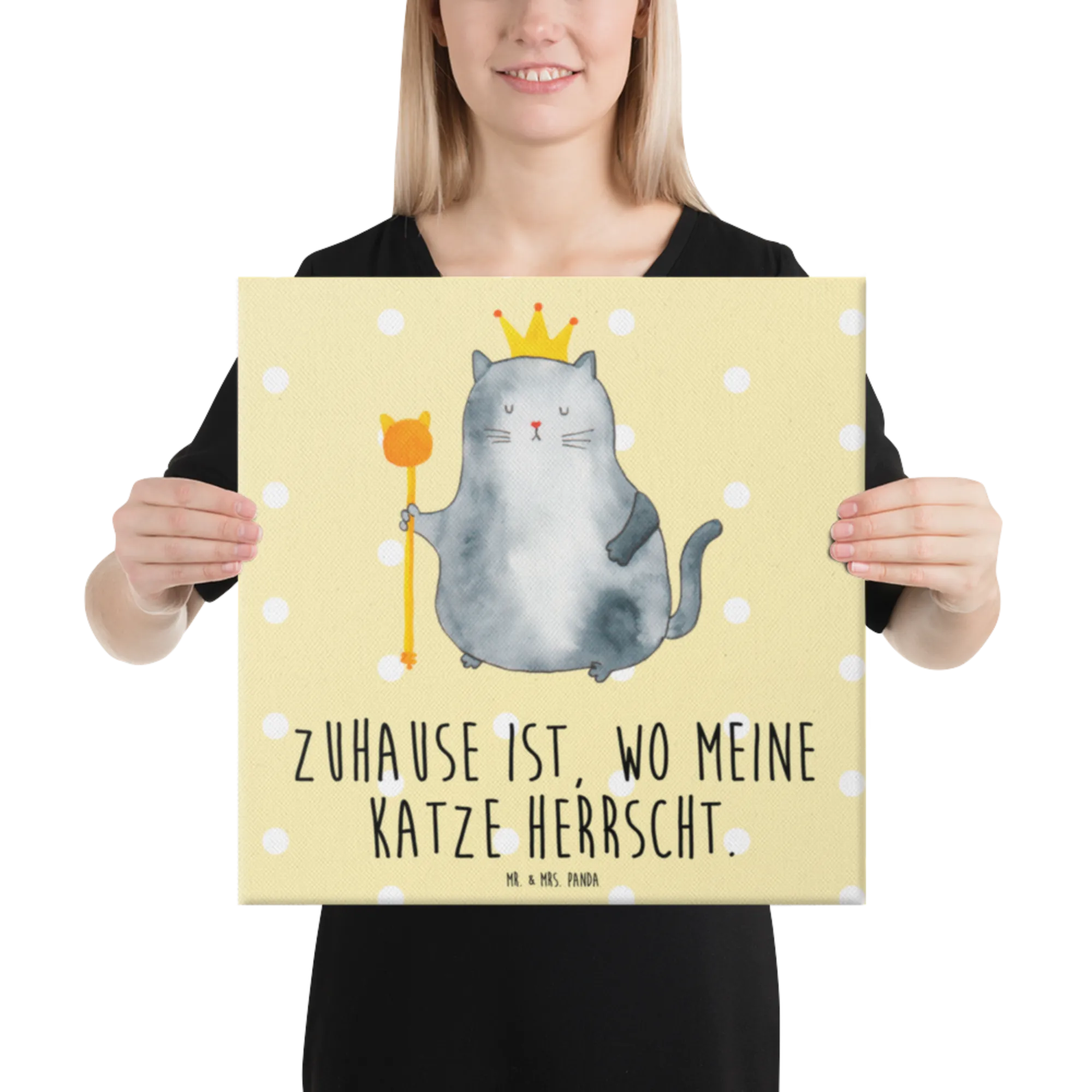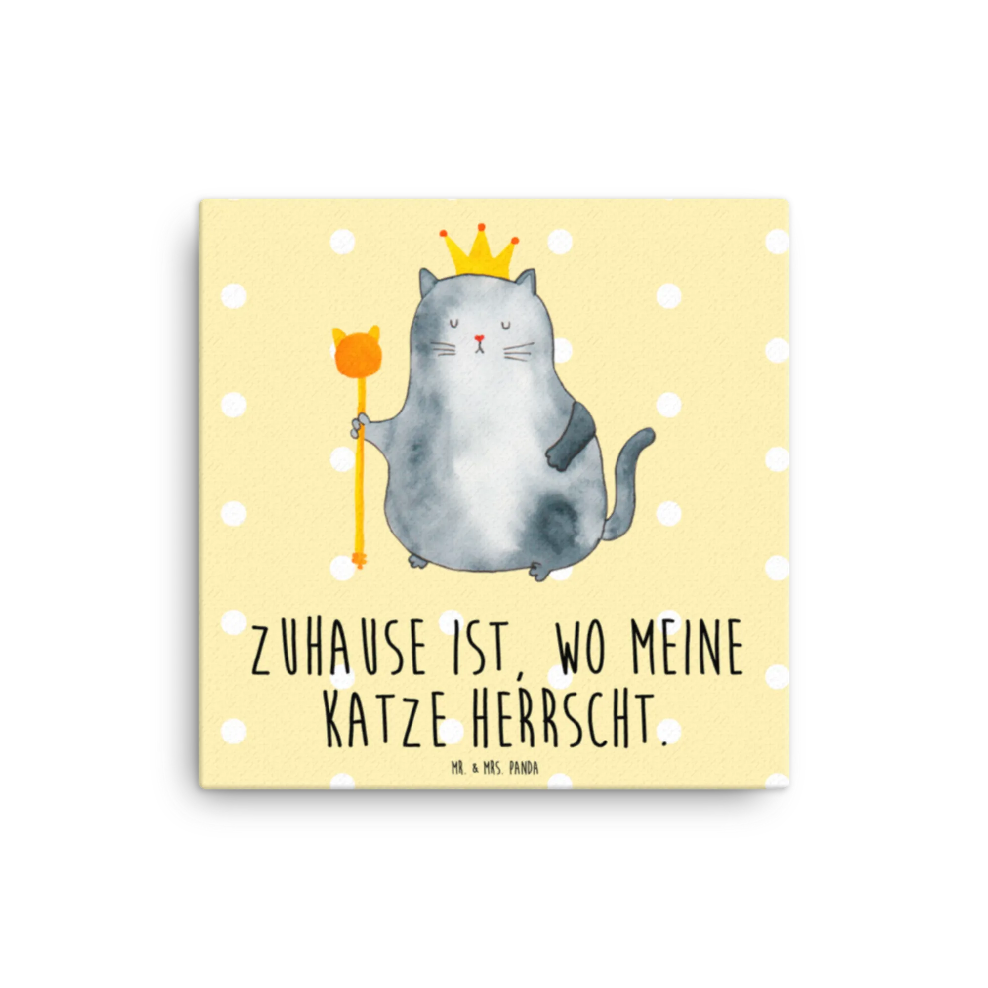 Canvas picture Cat king - with a saying - Yellow Pastel