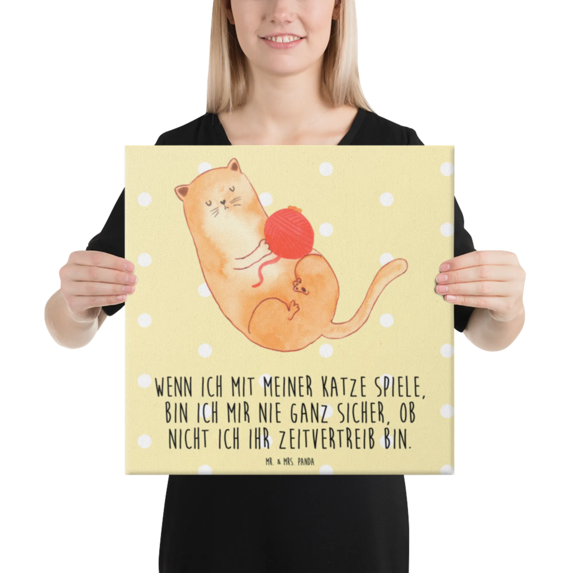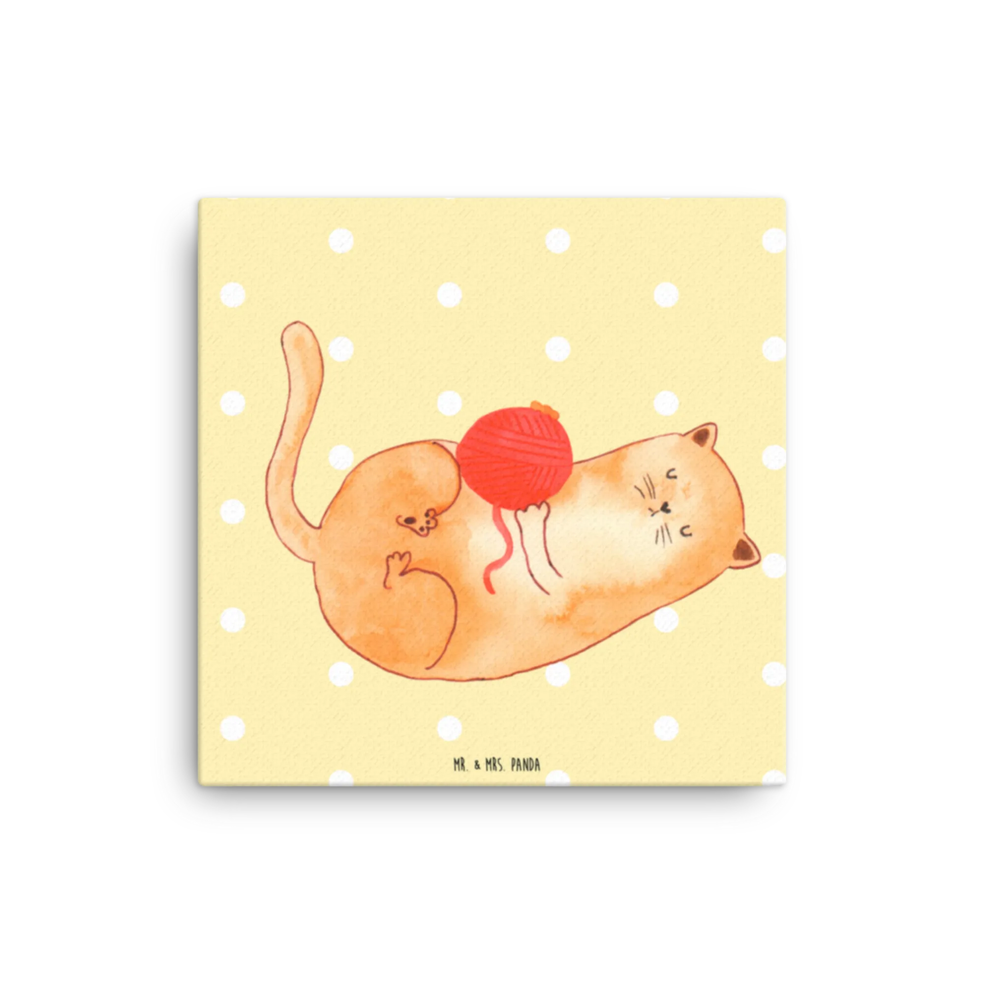 Canvas picture Cat Wool - with a saying - Yellow Pastel