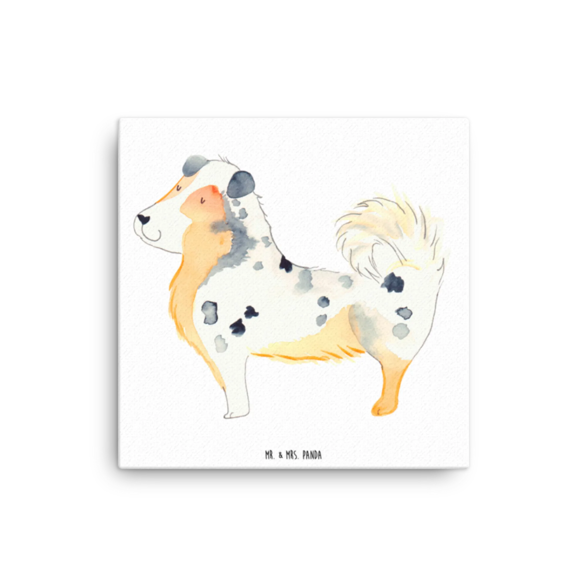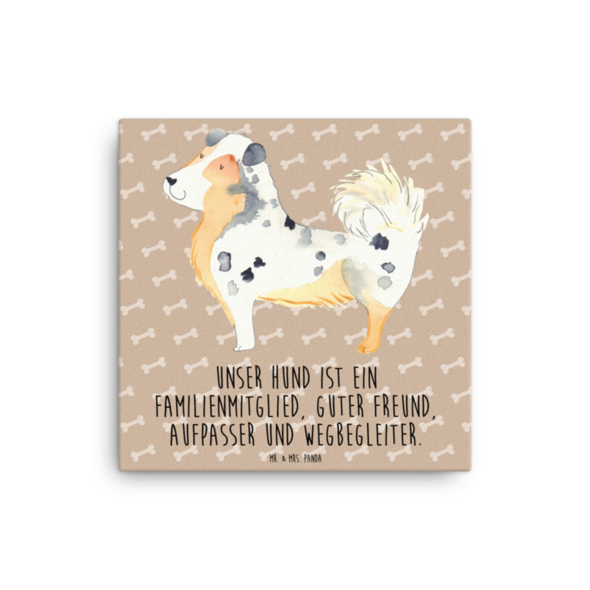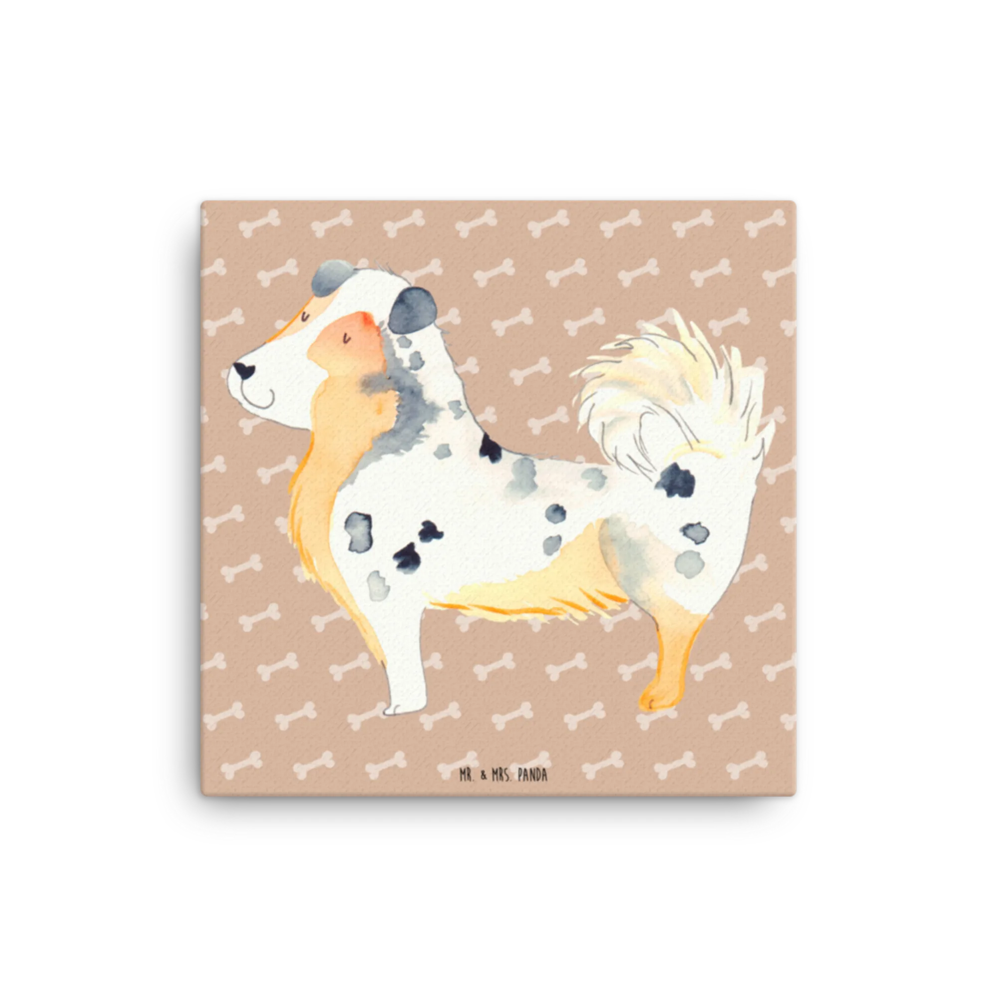 Canvas picture Dog Australia Shepherd - 40 x 40 cm - with a saying - Happiness of dogs