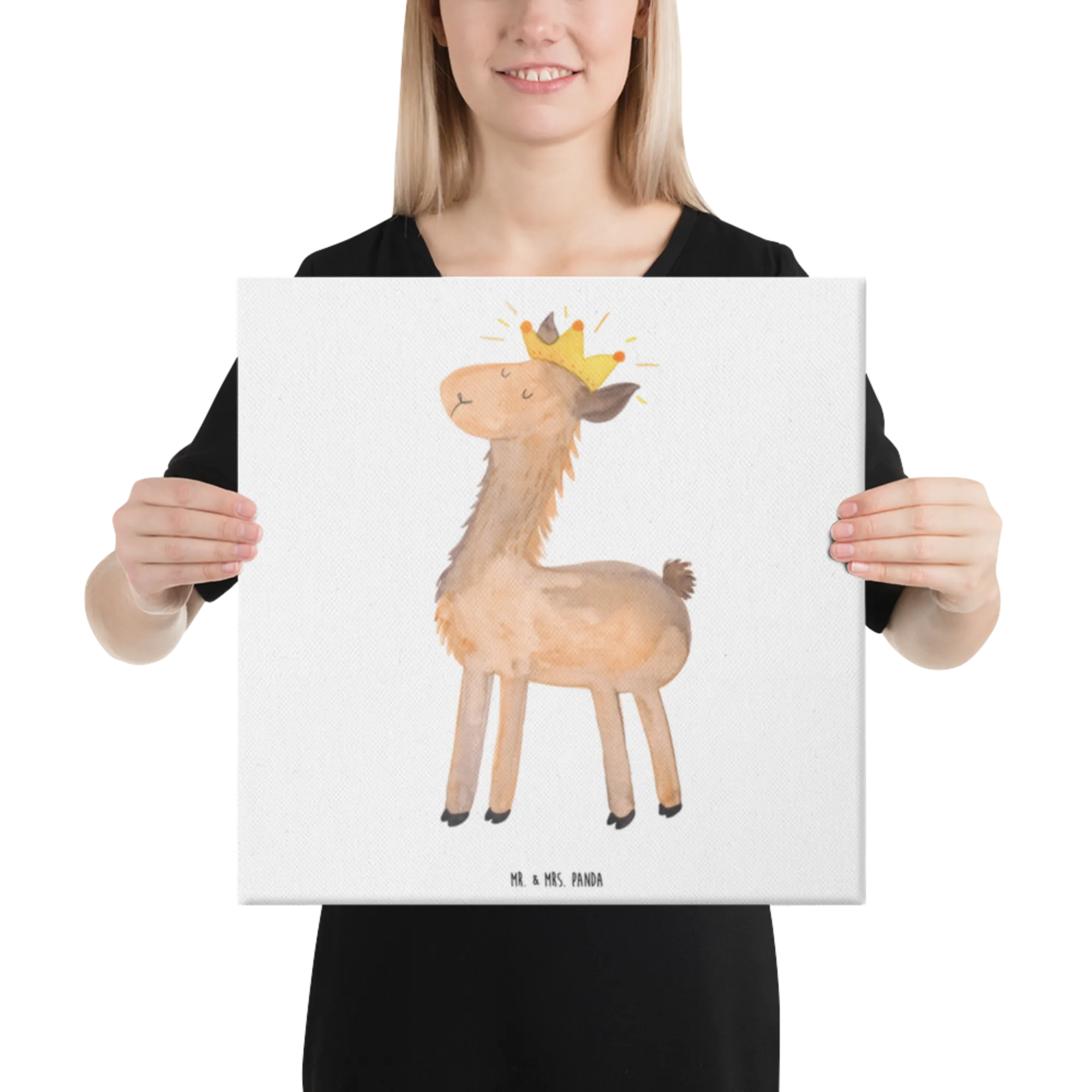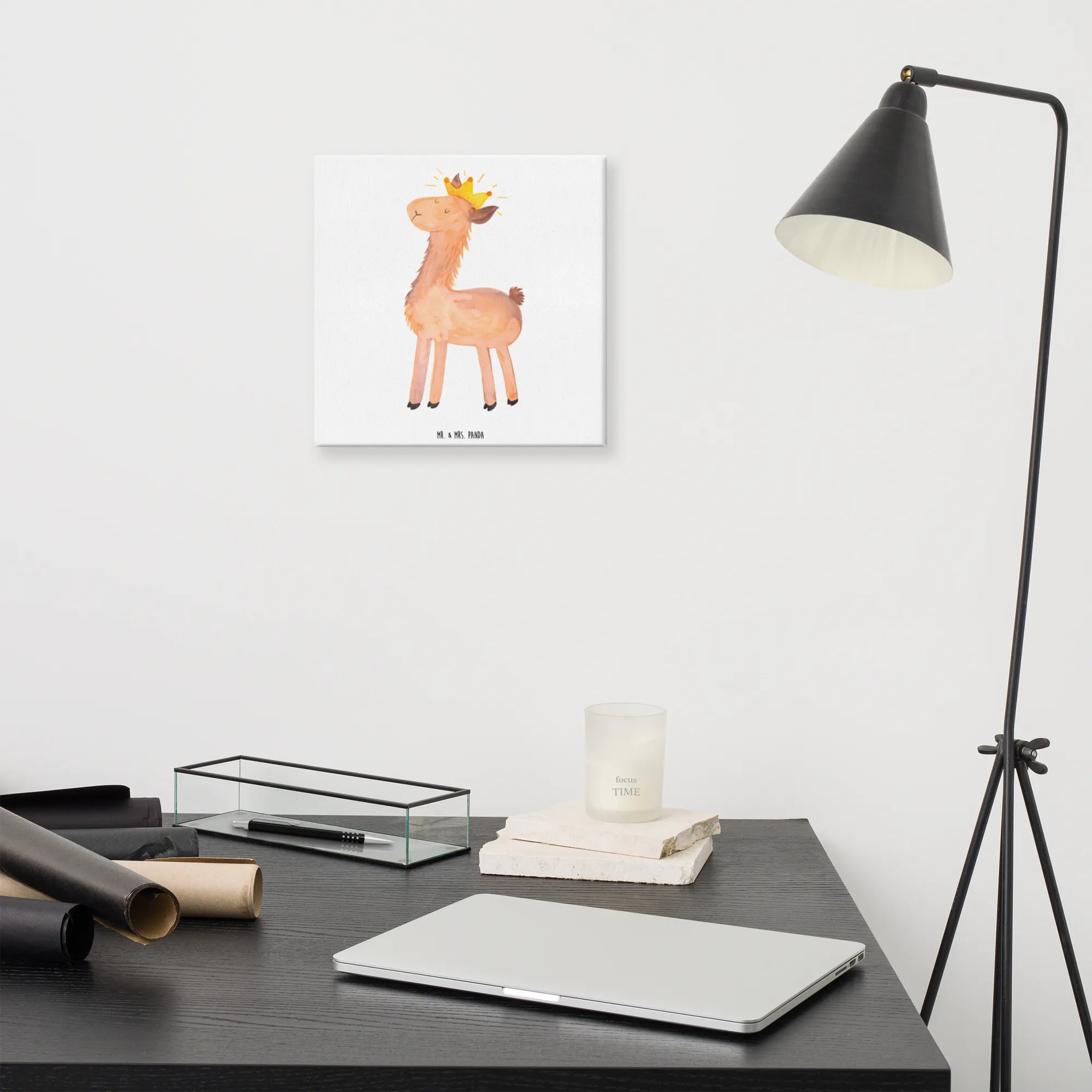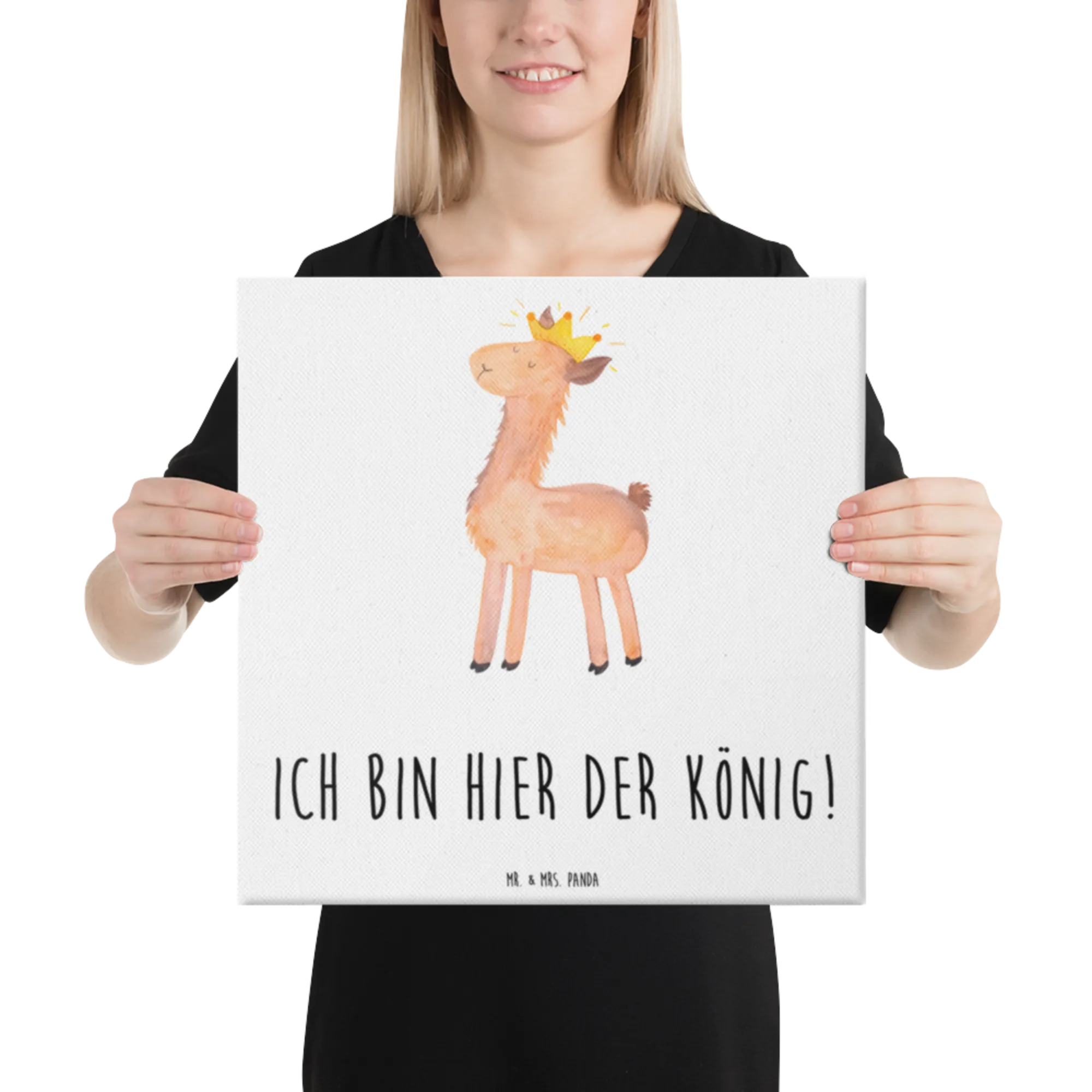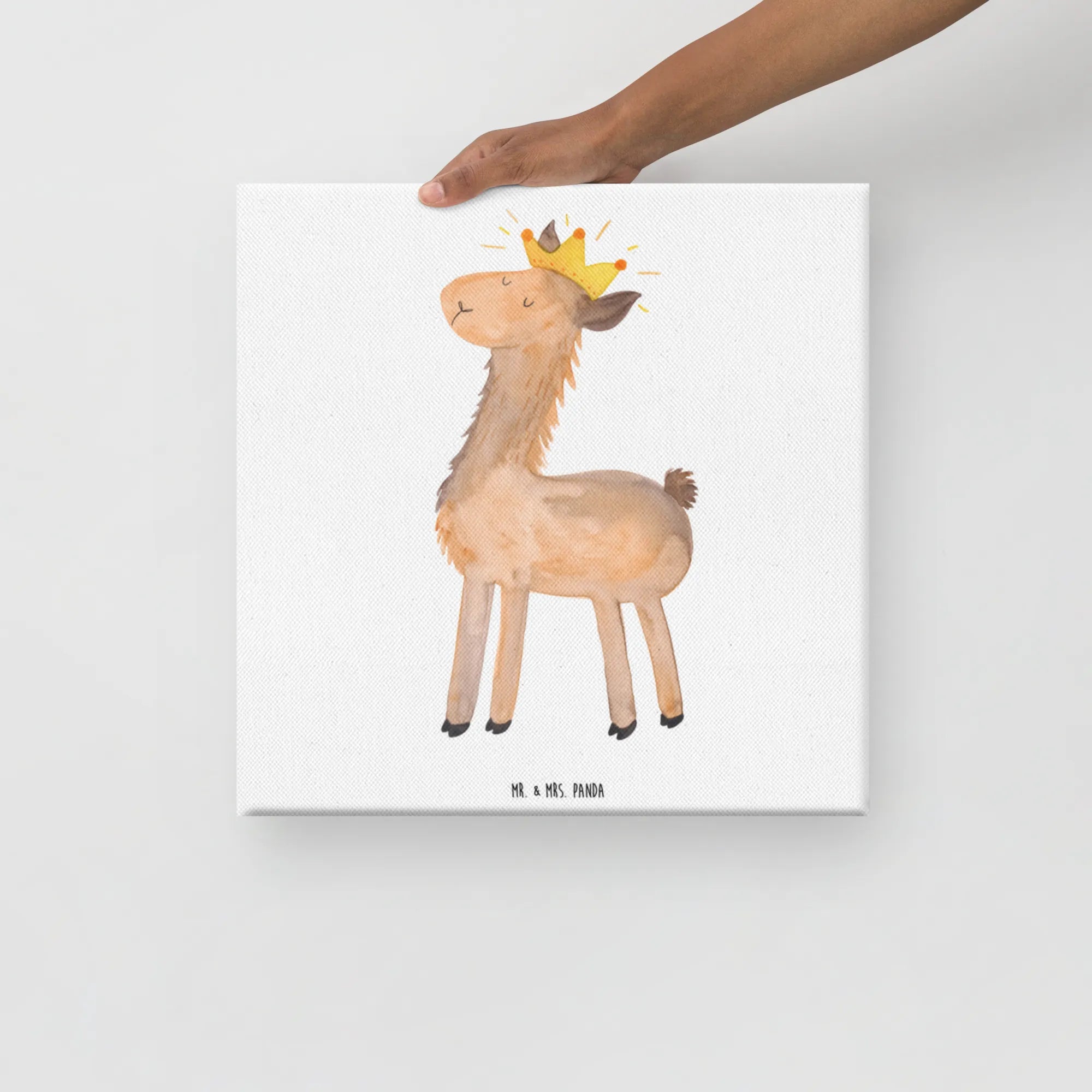 Canvas picture lama king - 40 x 40 cm - with a saying