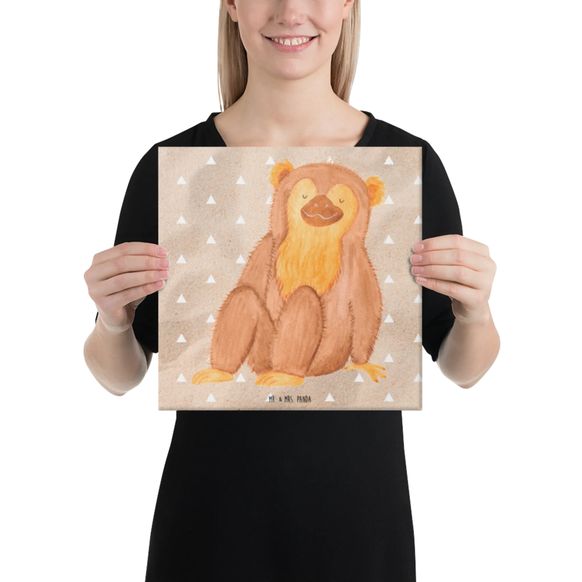 Canvas picture Monkey - 40 x 40 cm - with saying - Sandig
