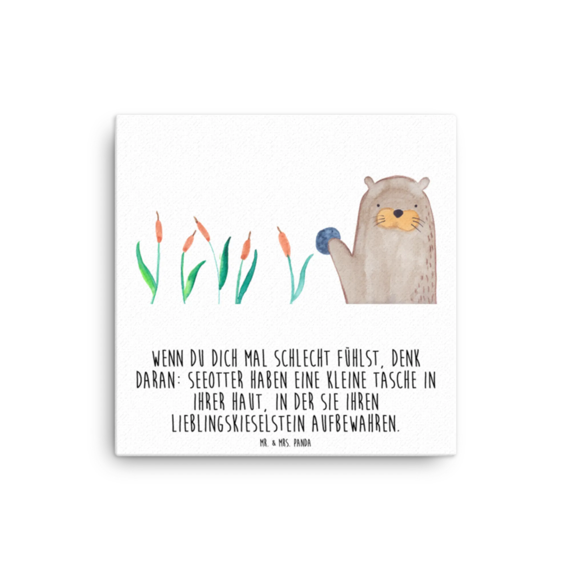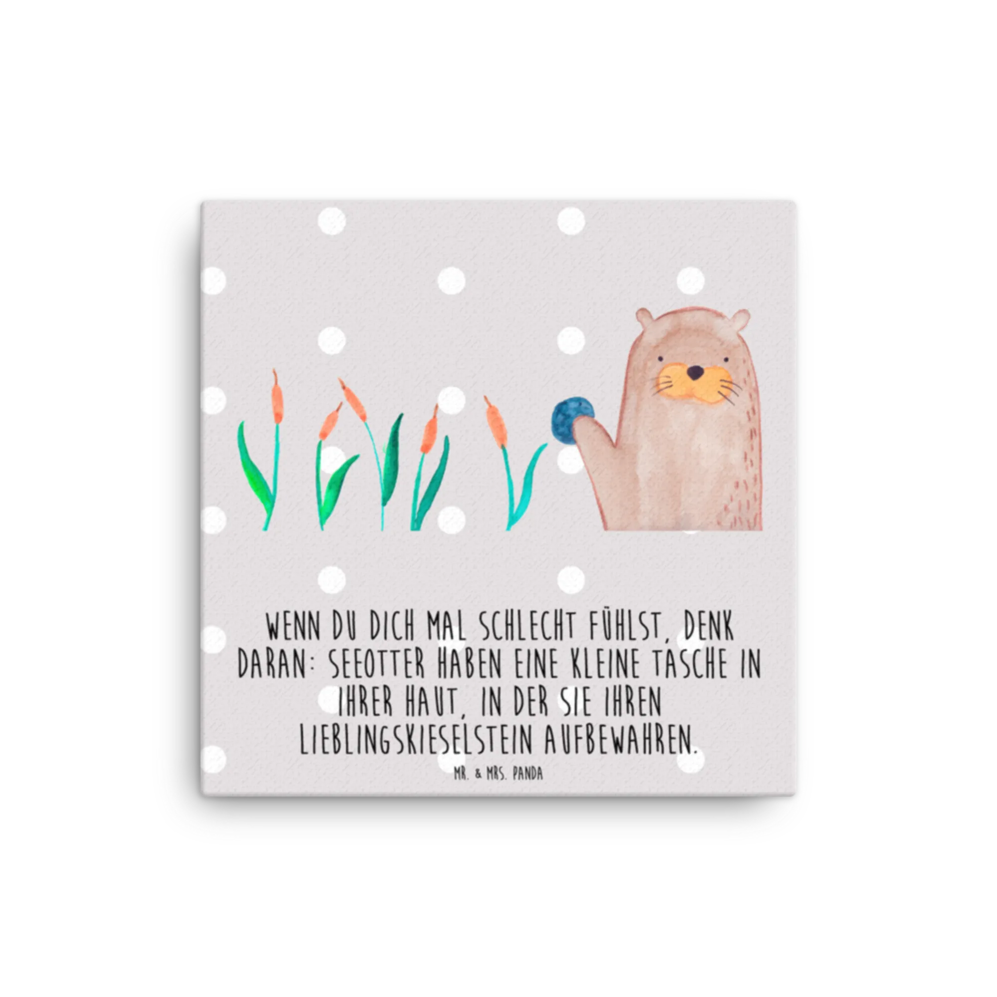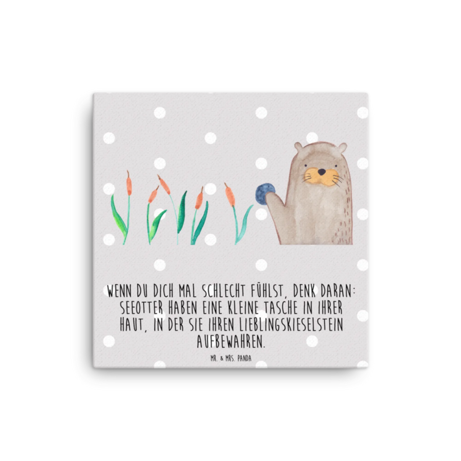 Canvas picture otter Stone - 40 x 40 cm - with a saying - Grey Pastel