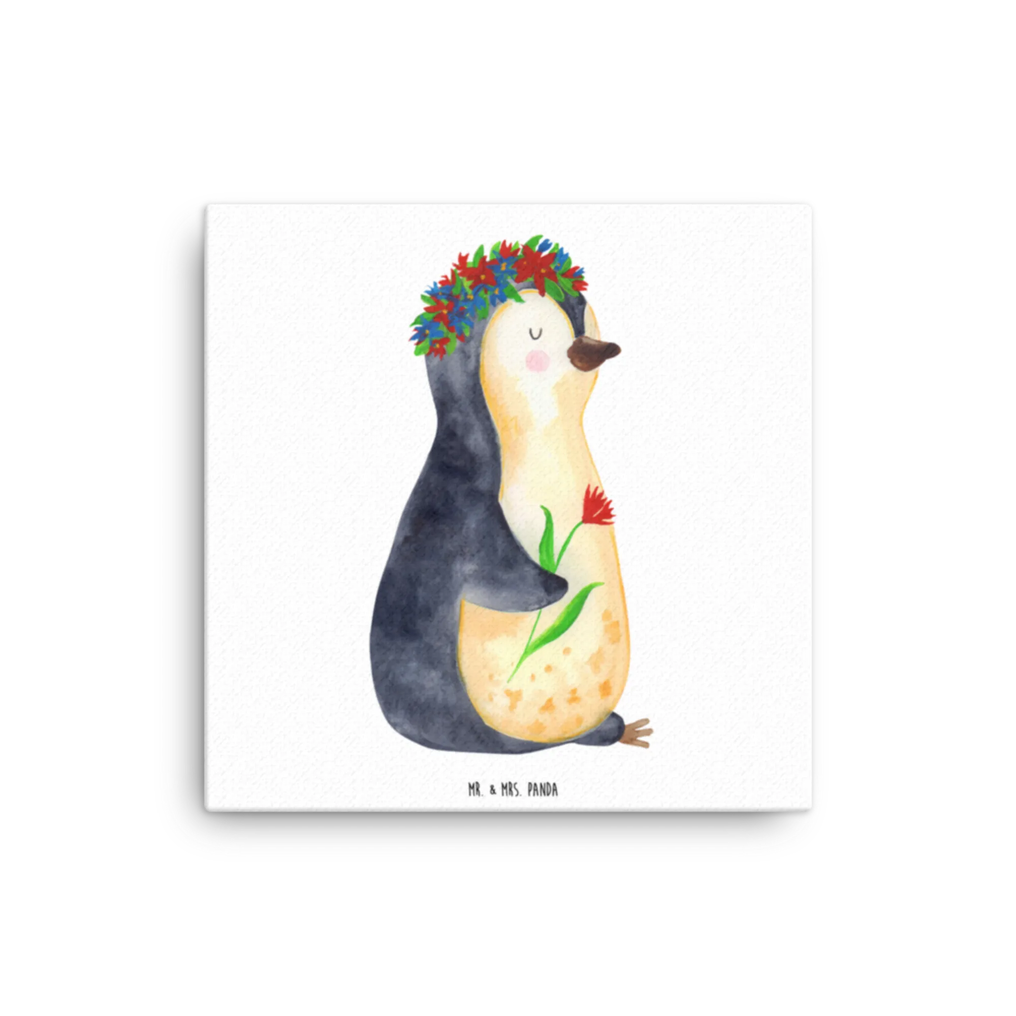Canvas picture Penguin Flower - 40 x 40 cm - with a saying - White