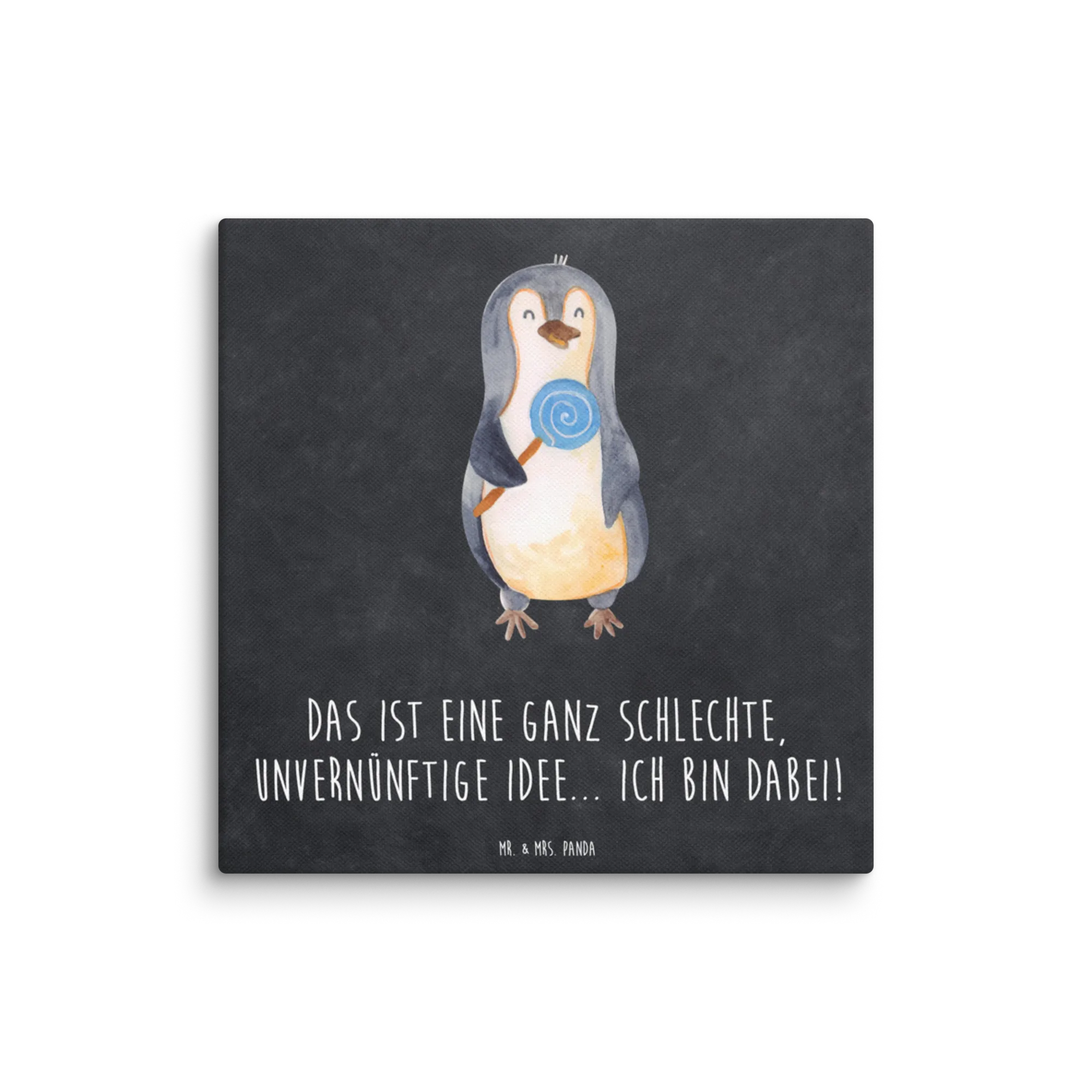 Canvas picture Penguin lollipop - 40 x 40 cm - with a saying - White