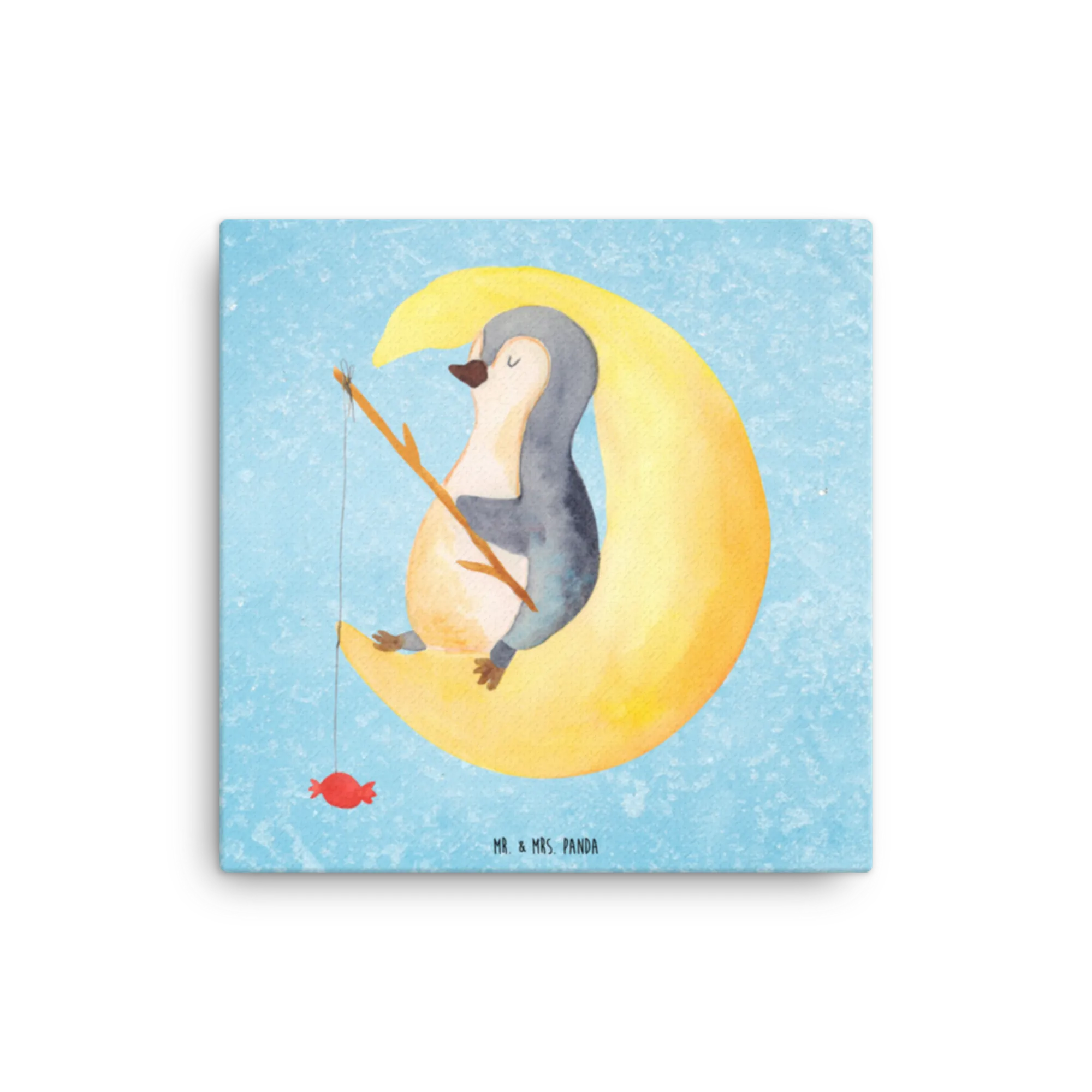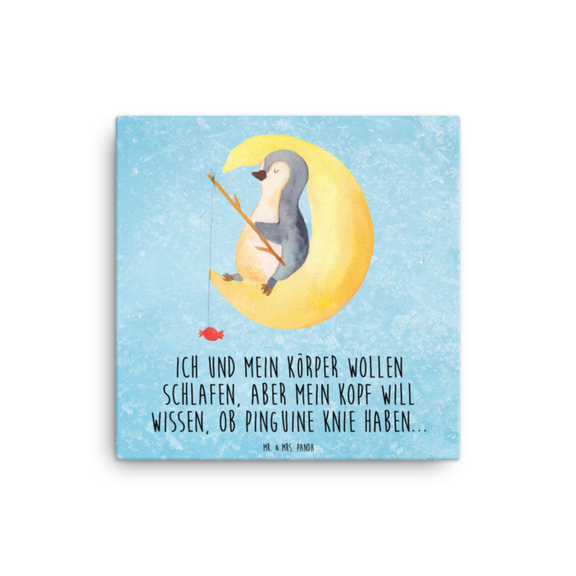 Canvas picture Penguin moon - 40 x 40 cm - with a saying - White