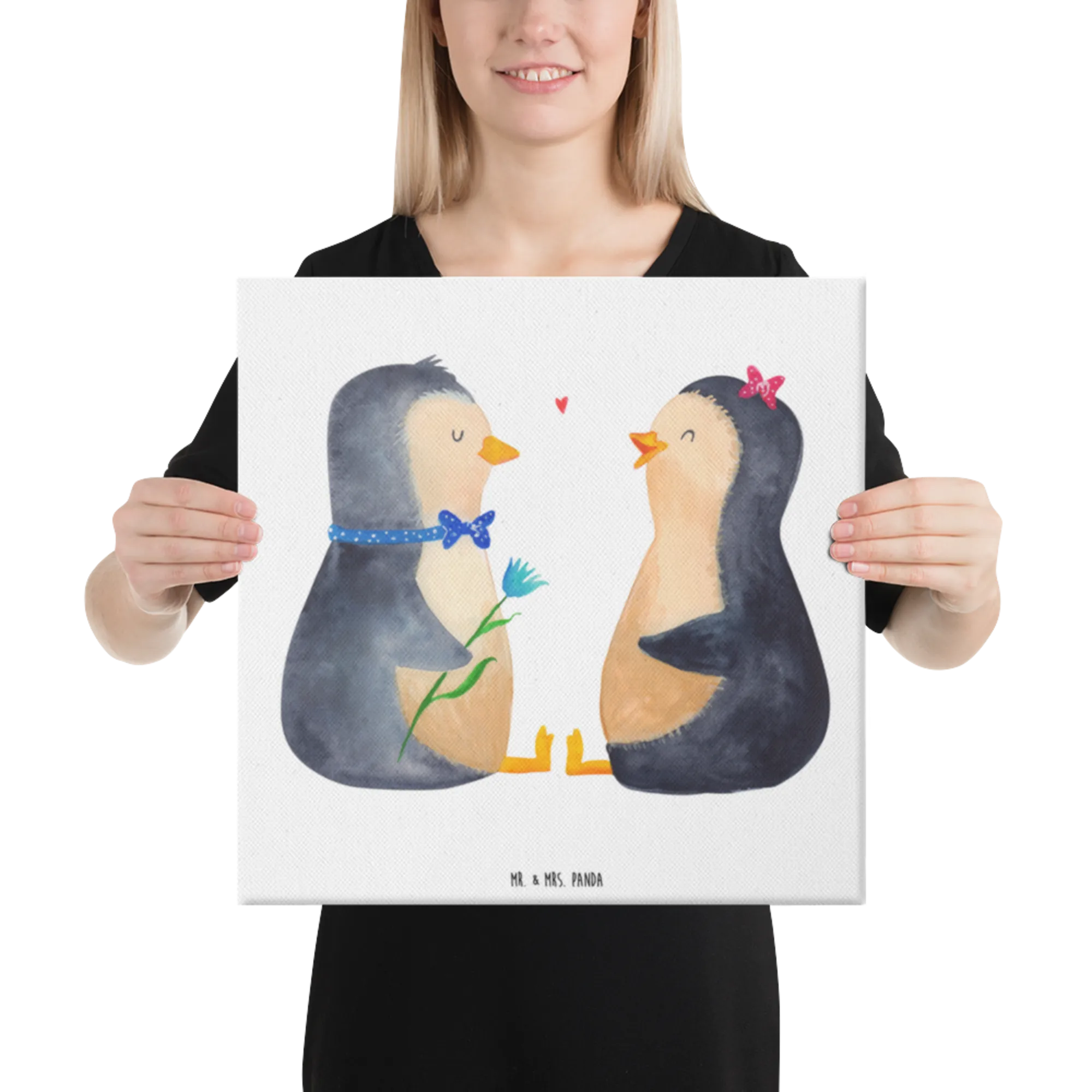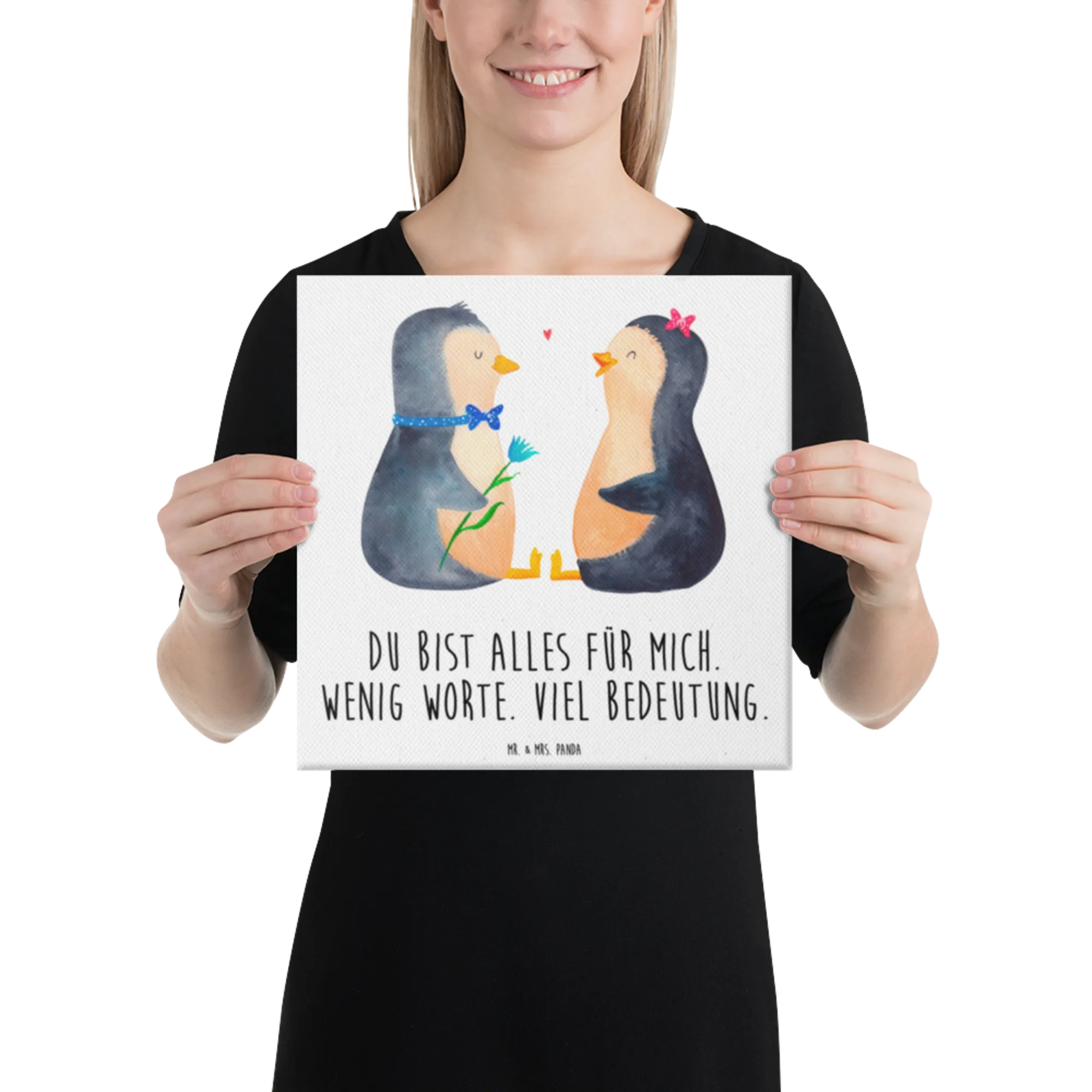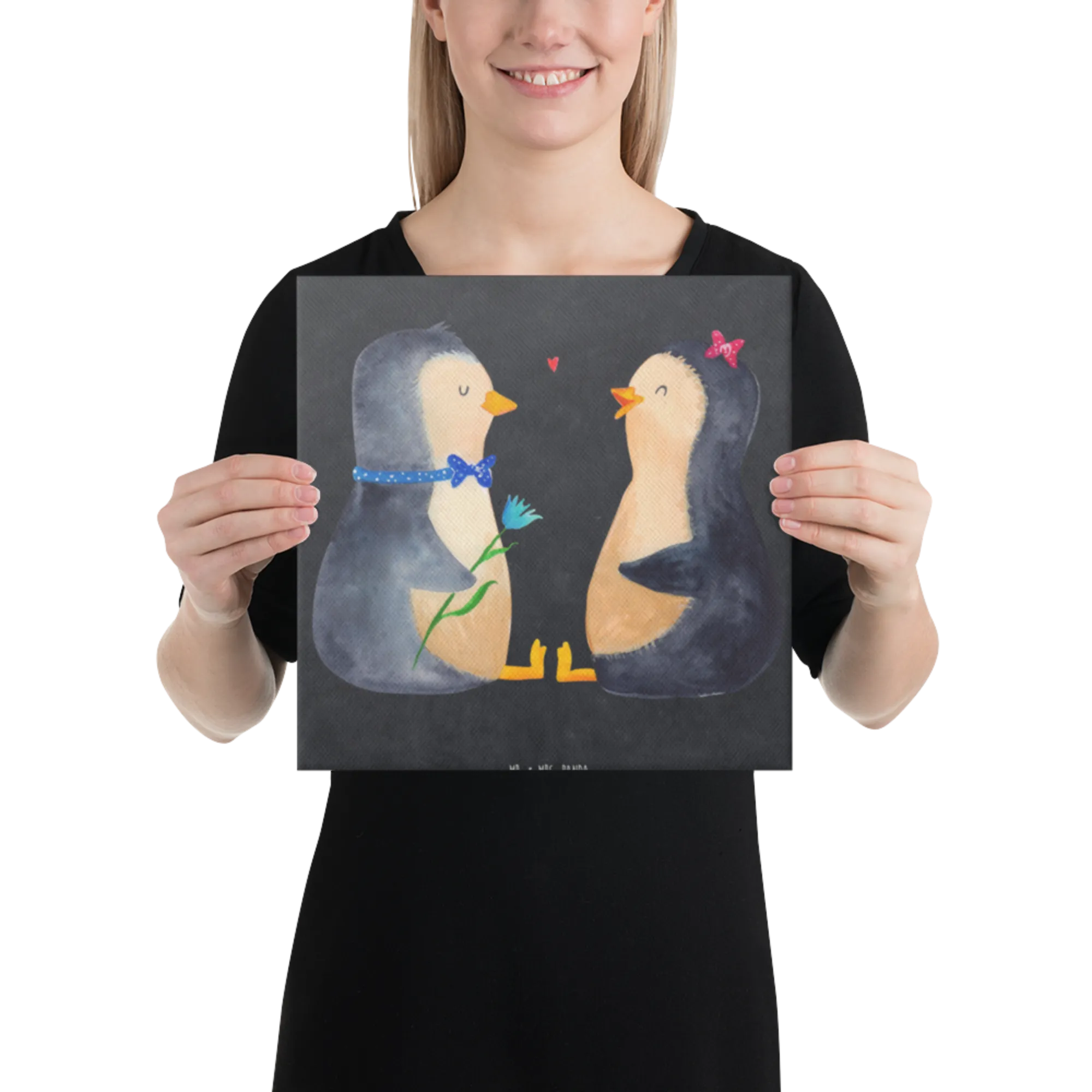 Canvas picture Penguin pair - 40 x 40 cm - with saying - White
