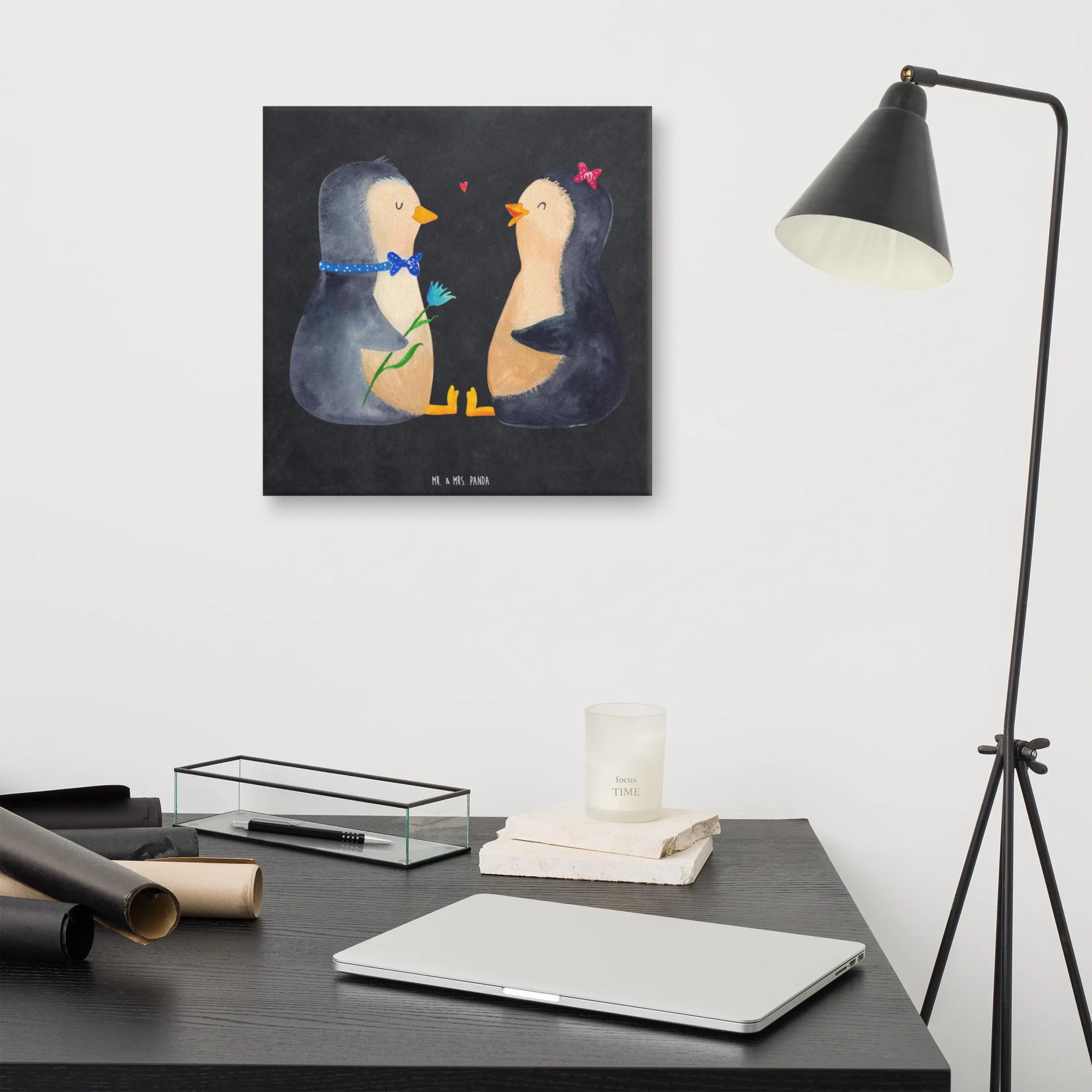 Brighten up your walls with the Mr. & Mrs. Panda Canvas Picture. This beautiful canvas, 400 mm x 400 mm in size, features charming quotes alongside playful designs, making it a perfect choice for any room. Made from high-quality canvas and framed in solid wood, it promises durability along with stunning visuals. This artwork is perfect for living rooms, children's rooms, or any guest area, bringing a smile and cheer. With one-sided UV printing, the colors remain vivid and fresh. Transform your living space into a joyous haven with this delightful piece!
