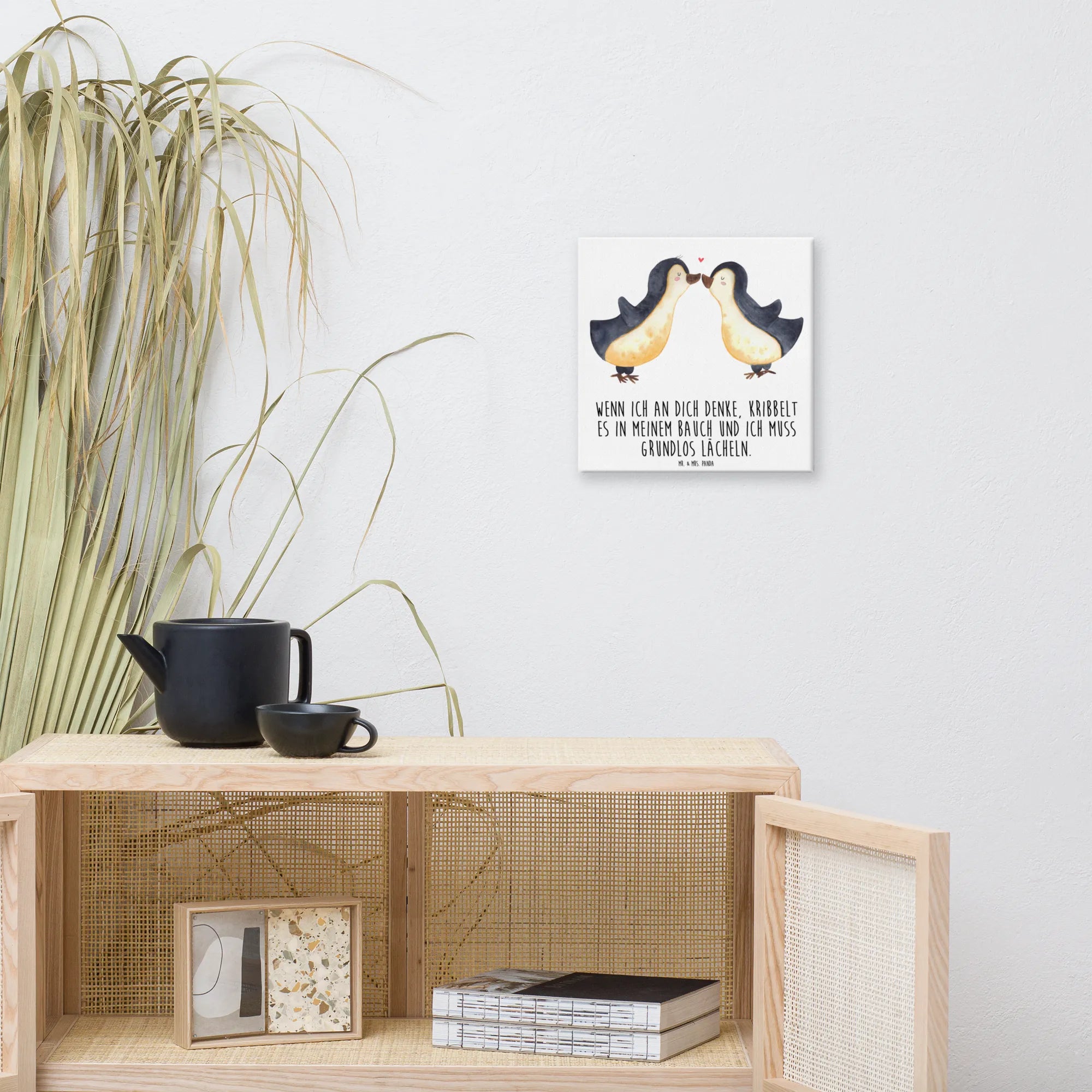 Transform your living space with the Mr. & Mrs. Panda Canvas Picture. This exquisite canvas measures 400 mm x 400 mm and showcases adorable motifs paired with heartwarming quotes, perfect for brightening up your walls. Made with durable canvas stretched over a sturdy wooden frame, the artwork boasts exceptional color vibrancy and quality, ensuring it stands out in your home. Ideal for living rooms, nurseries, or guest areas, this one-sided UV-printed masterpiece is not just decor; it's a conversation starter! Add this unique piece of art to your collection and let it spread joy every day.