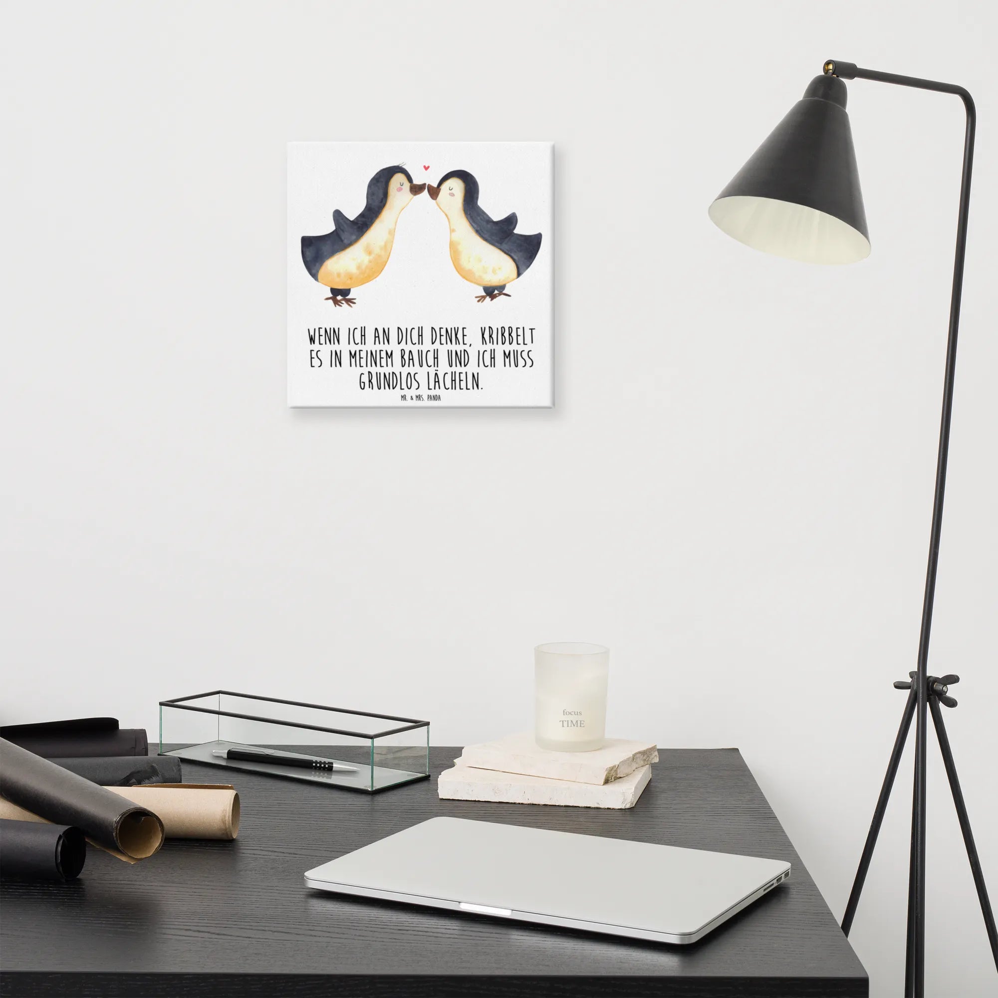 Canvas picture penguins kiss - 40 x 40 cm - White