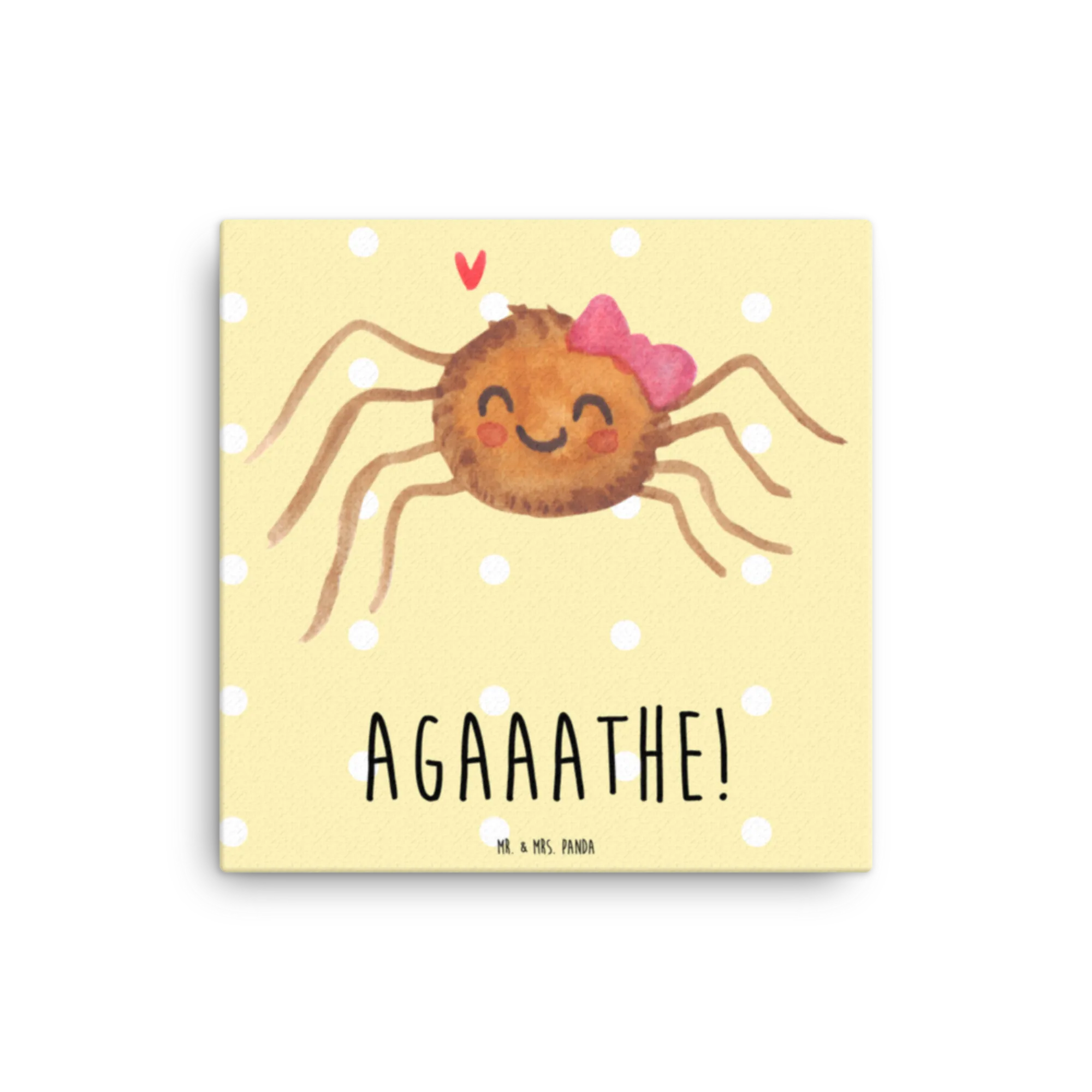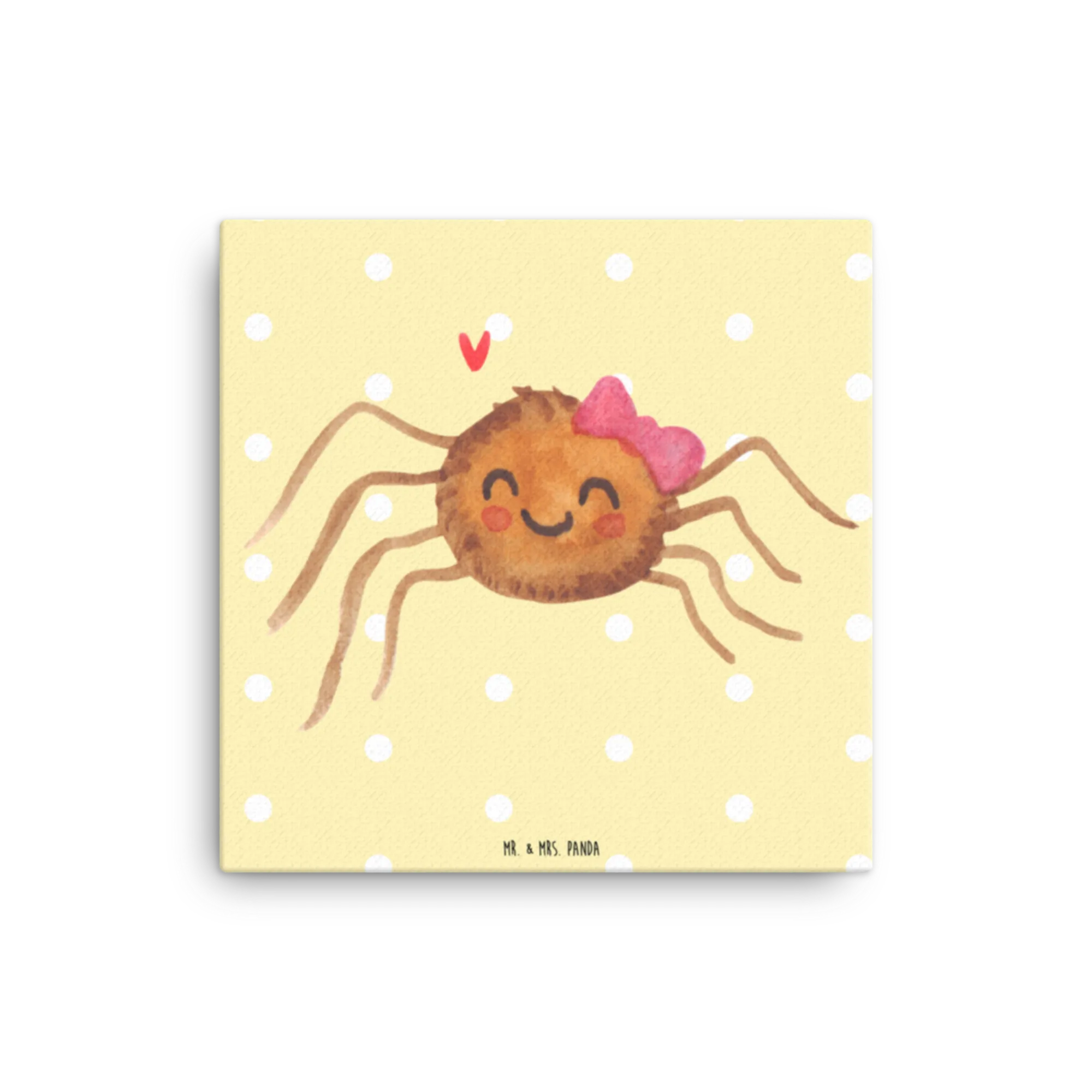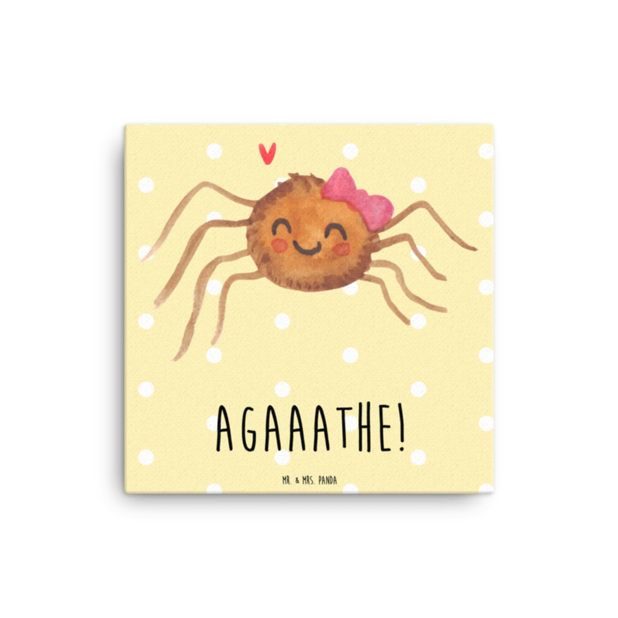 Canvas picture Spider Agathe Joy - 40 x 40 cm - with a saying - Yellow Pastel