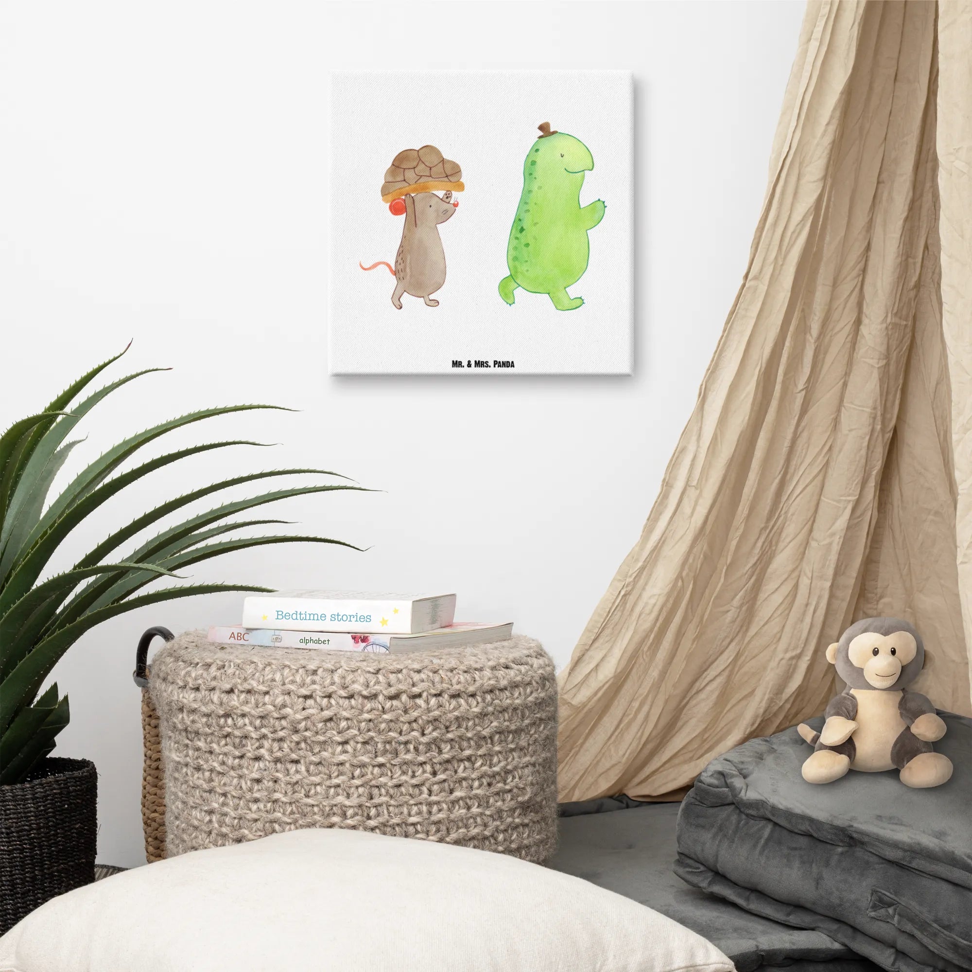 Canvas picture tortoise Mouse - 40 x 40 cm - with a saying - White