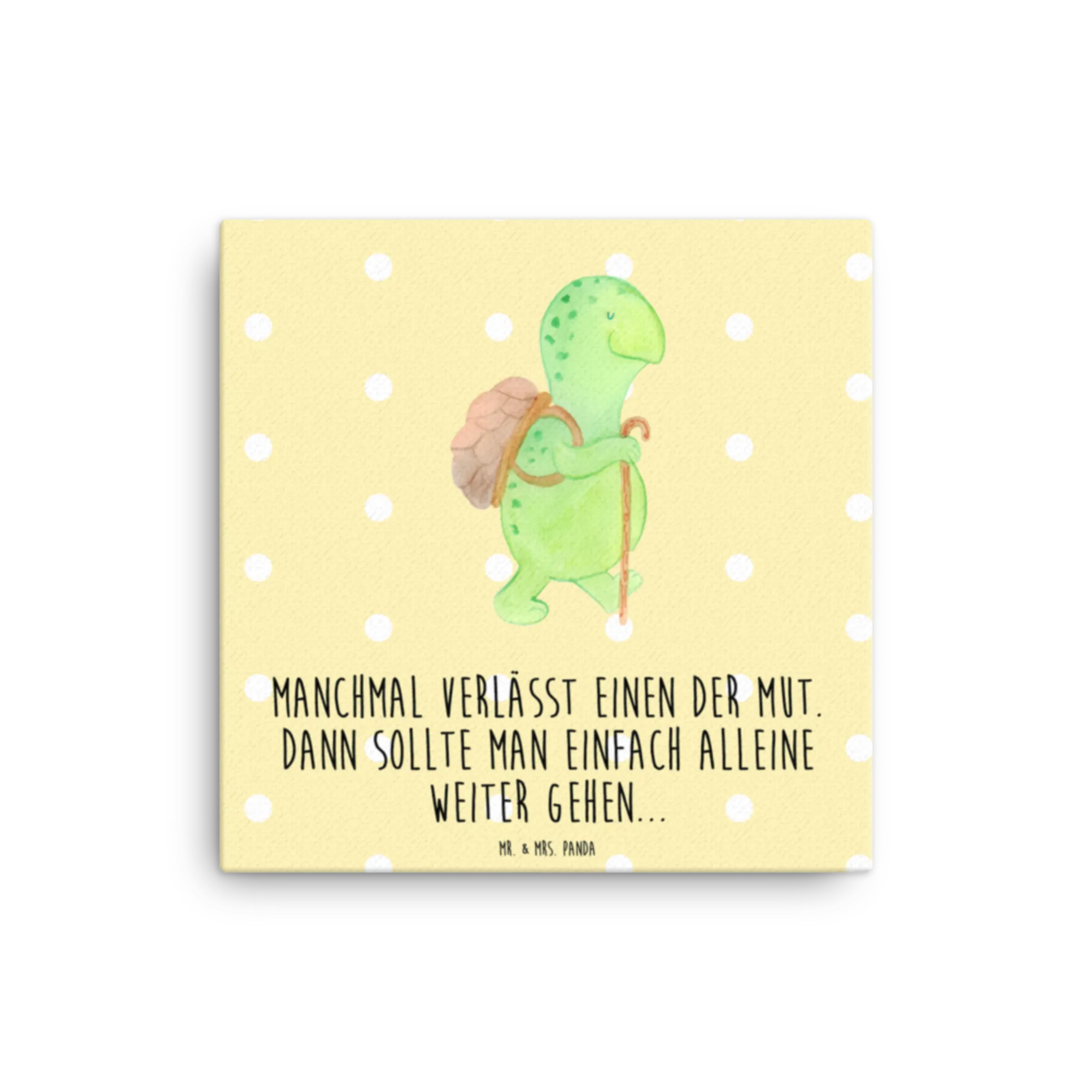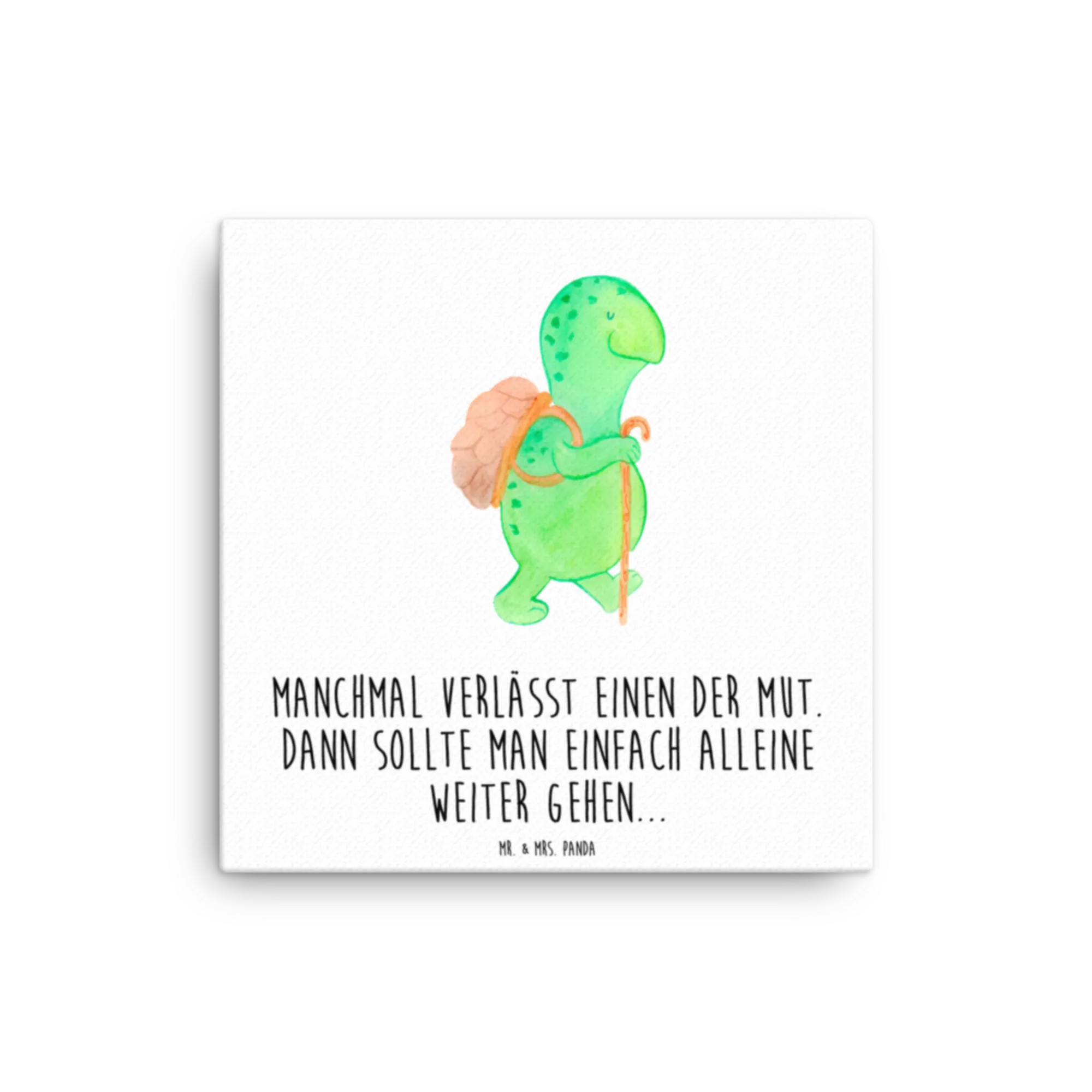 Canvas picture tortoise walker - 40 x 40 cm - with a saying - White