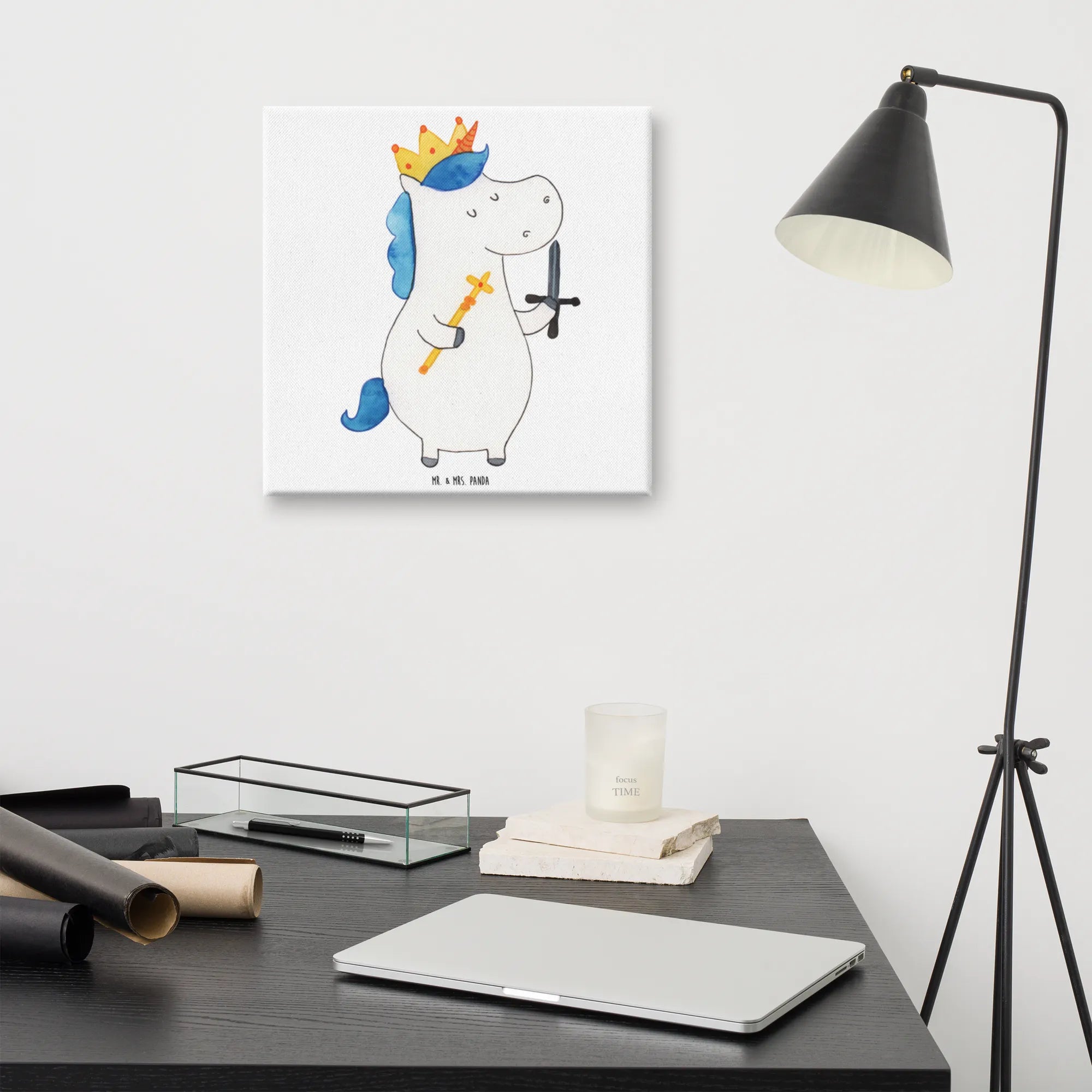 Canvas picture unicorn king with sword - 40 x 40 cm - with saying
