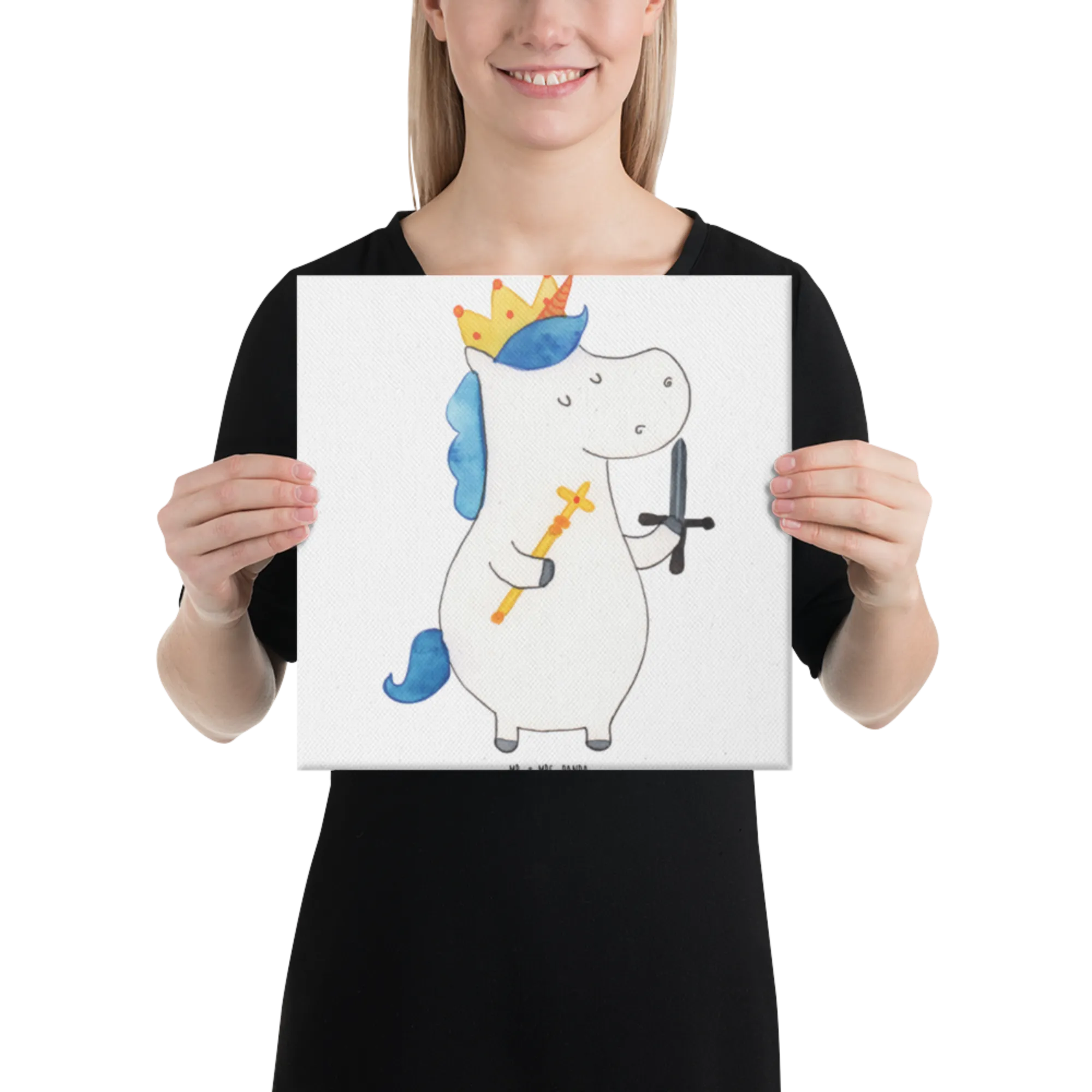 Canvas picture unicorn king with sword - 40 x 40 cm - with a saying