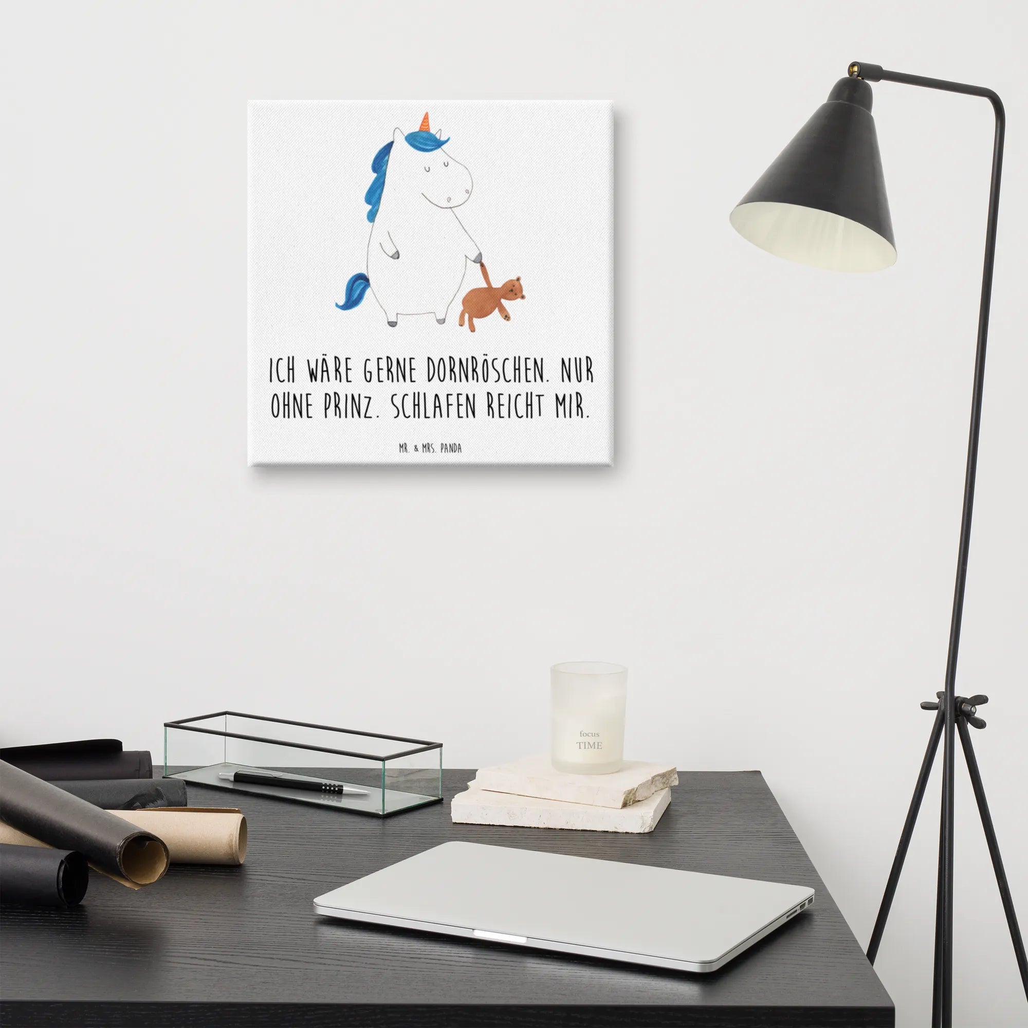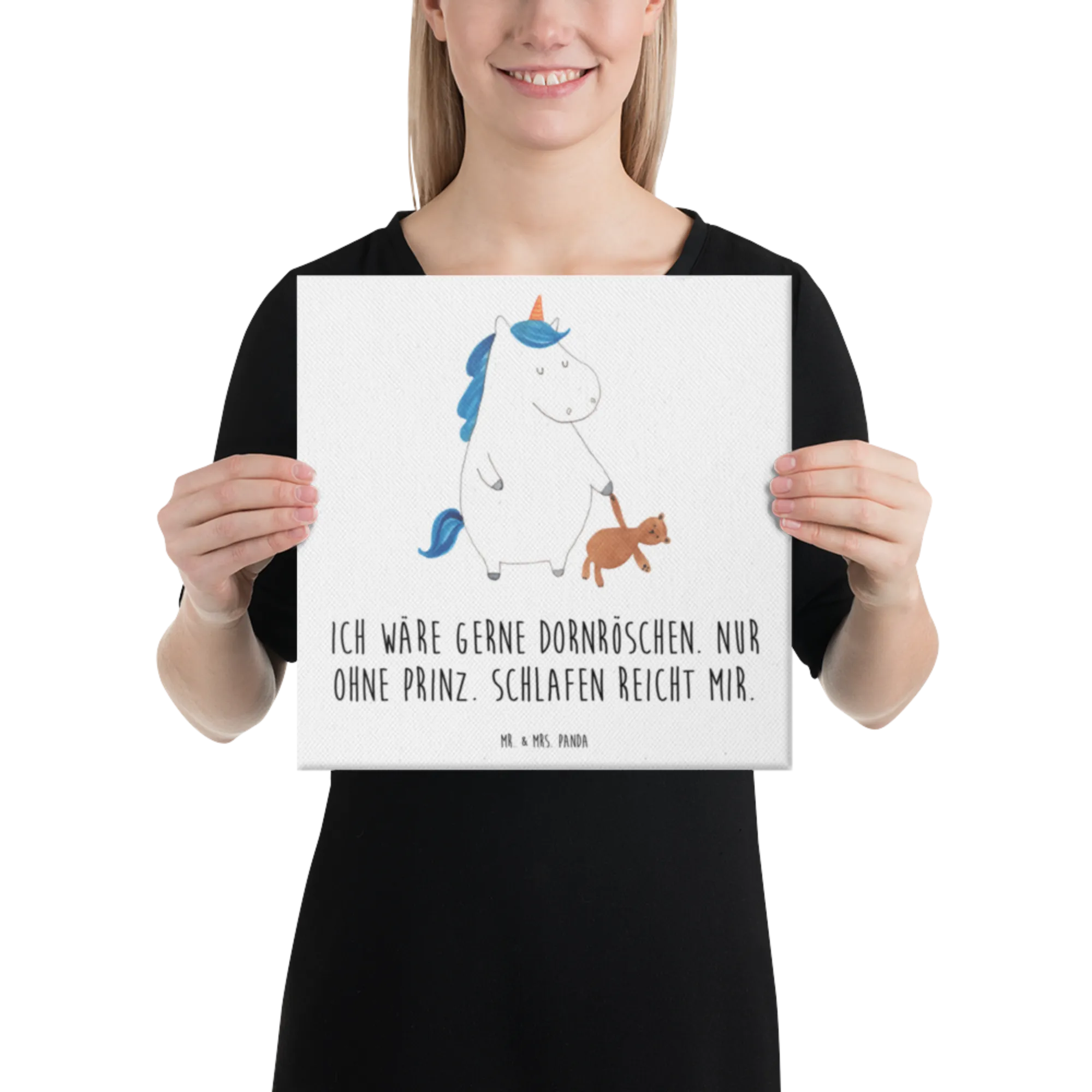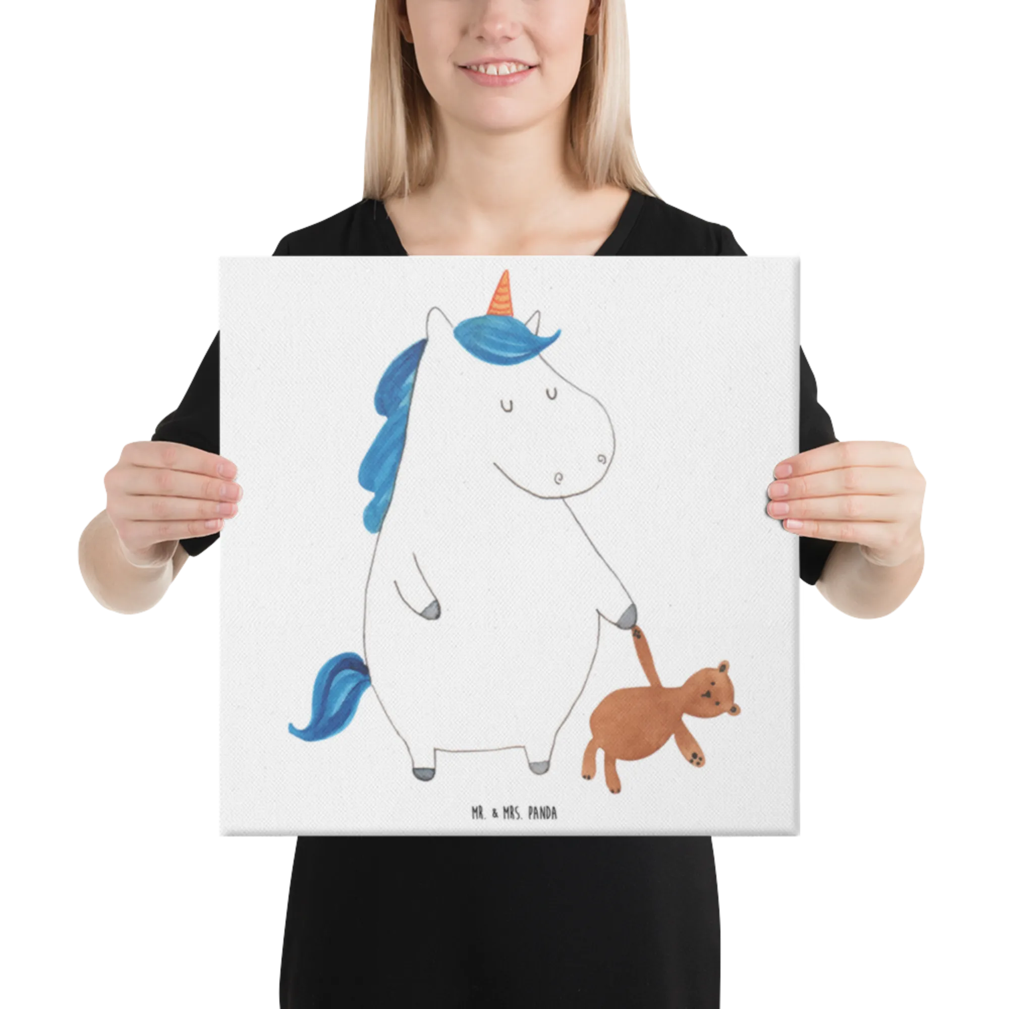 Canvas picture unicorn teddy - 40 x 40 cm - with a saying