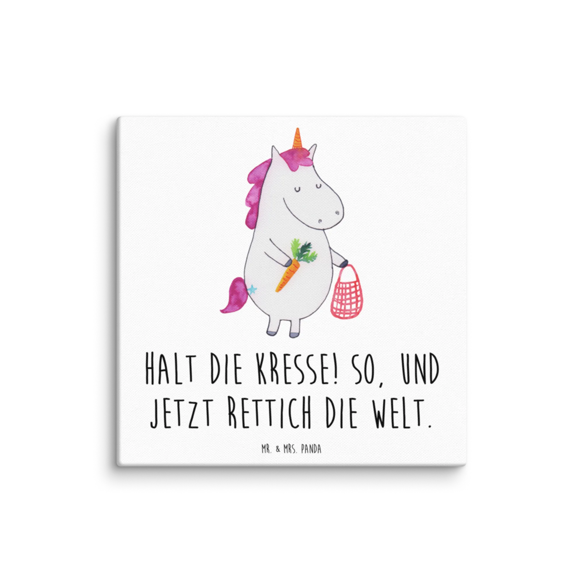 Unser Einhorn Gemüse aus der Einhorn - Kollektion von Mr. & Mrs. Panda ist ein liebevolles Kunstdruck-Leinwandbild, das ein fröhliches Einhorn zeigt, das frisches Gemüse vom Wochenmarkt/Biomarkt nach Hause trägt. Die handgezeichnete Aquarell-Illustration von Mrs. Panda verbindet Fantasie mit natürlichem Charme und passt perfekt in Kinderzimmer, Wohnzimmer oder als originelle Einhorn Deko.