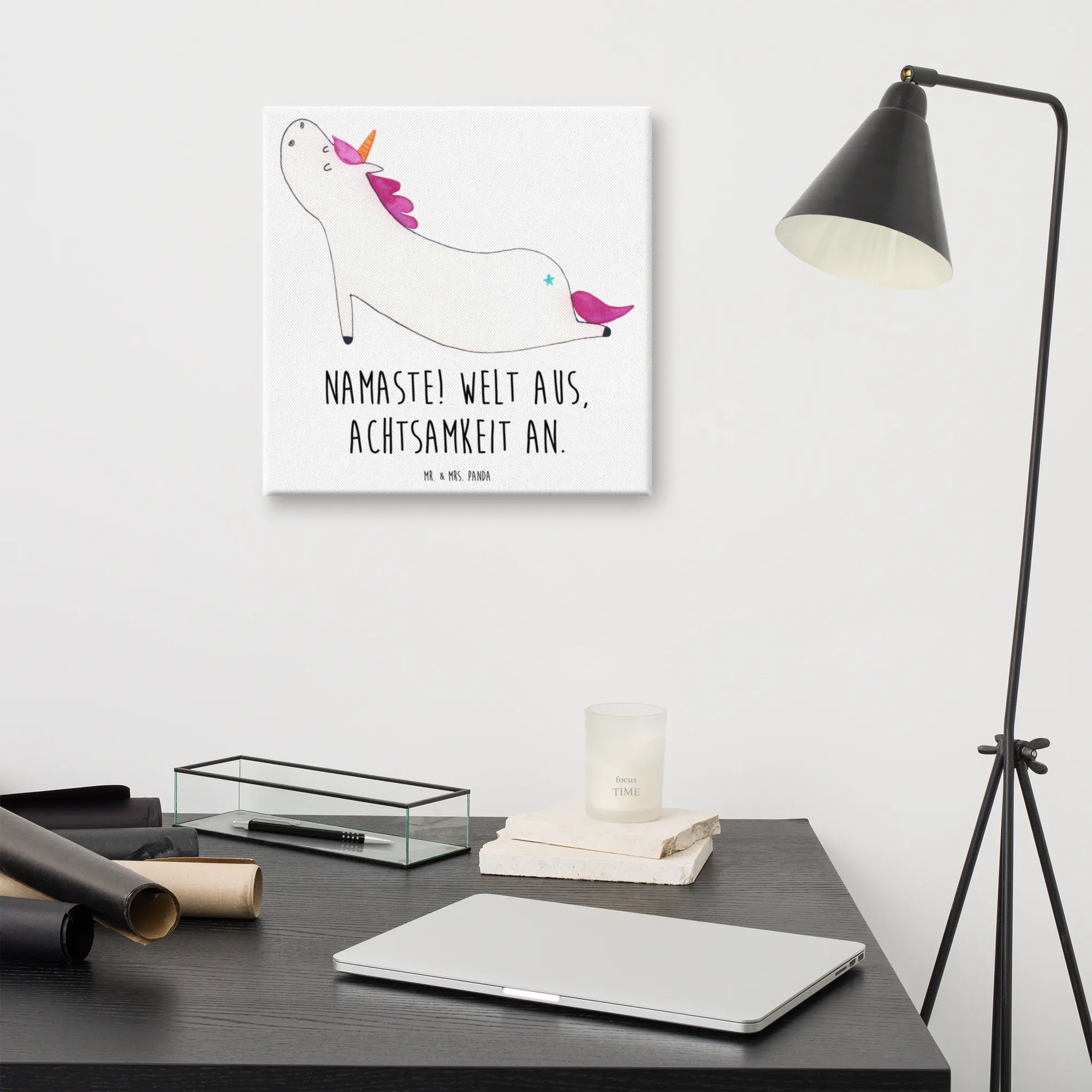 Canvas picture unicorn yoga - 40 x 40 cm - with a saying