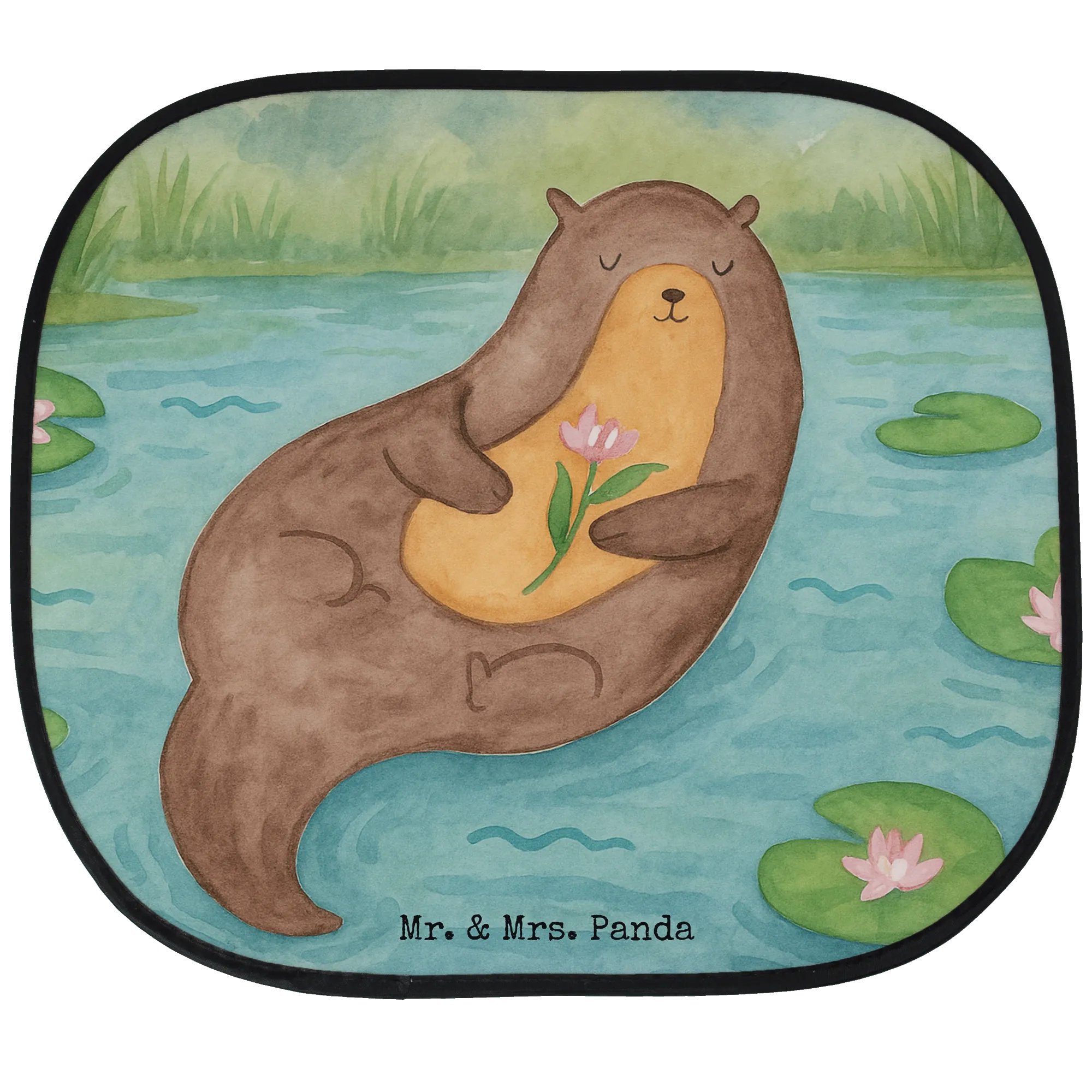 Car sun shade otter Water Lily Design - with saying