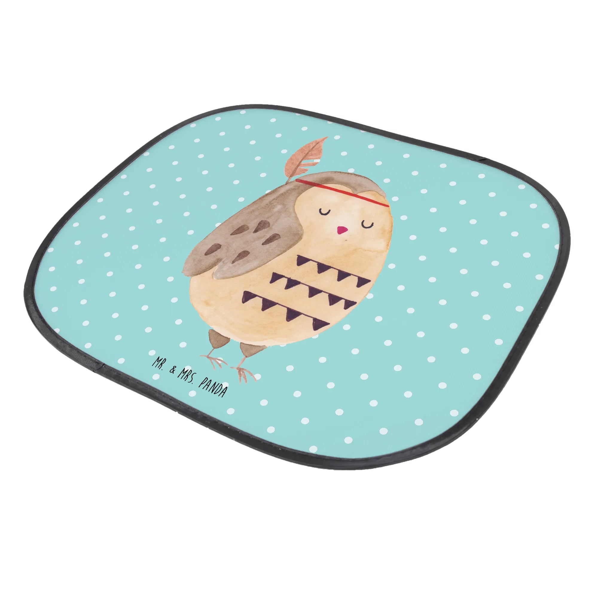 Car sun shade Owl feather headdress - with saying - Turquoise Pastel