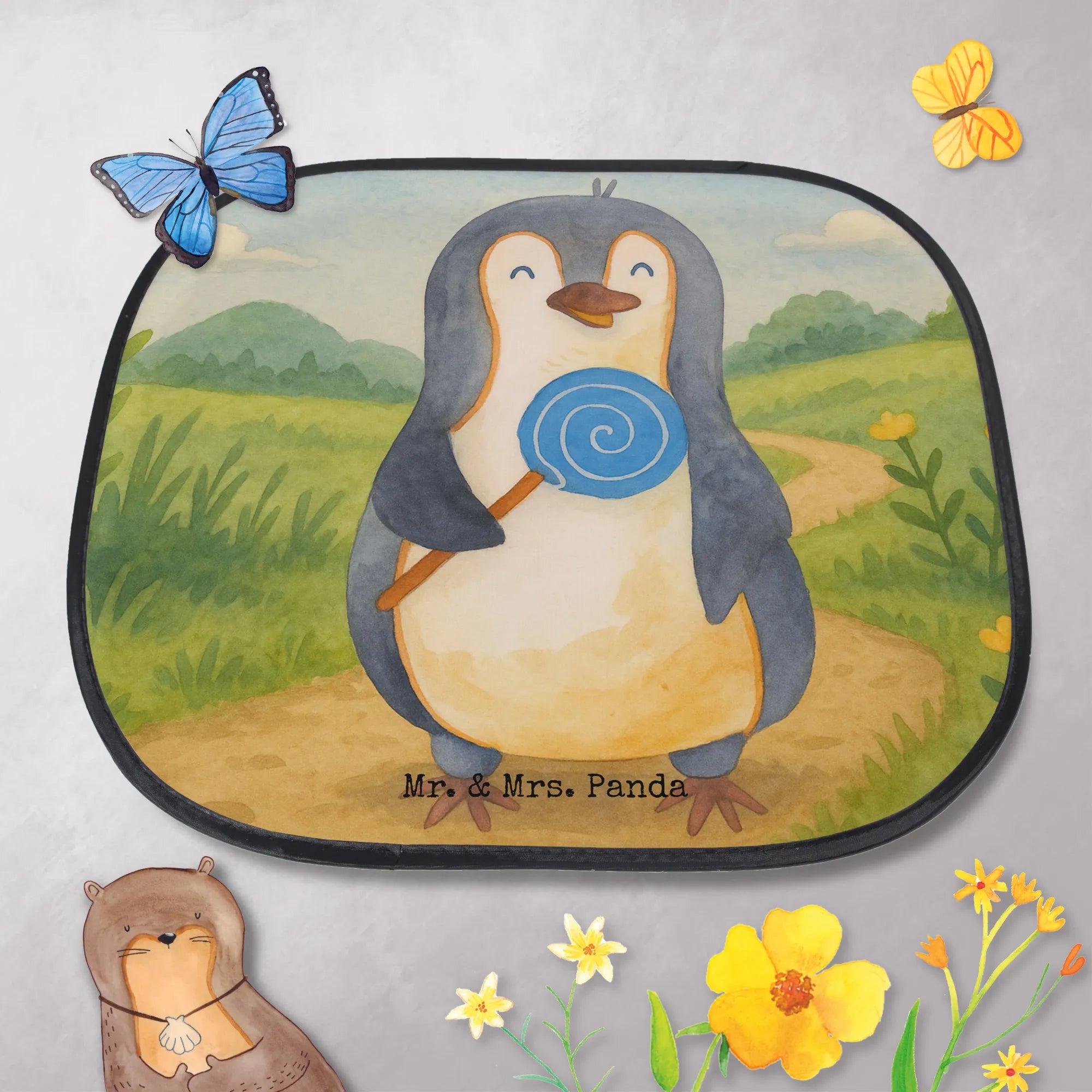 Car sun shade Penguin lollipop Design - with saying