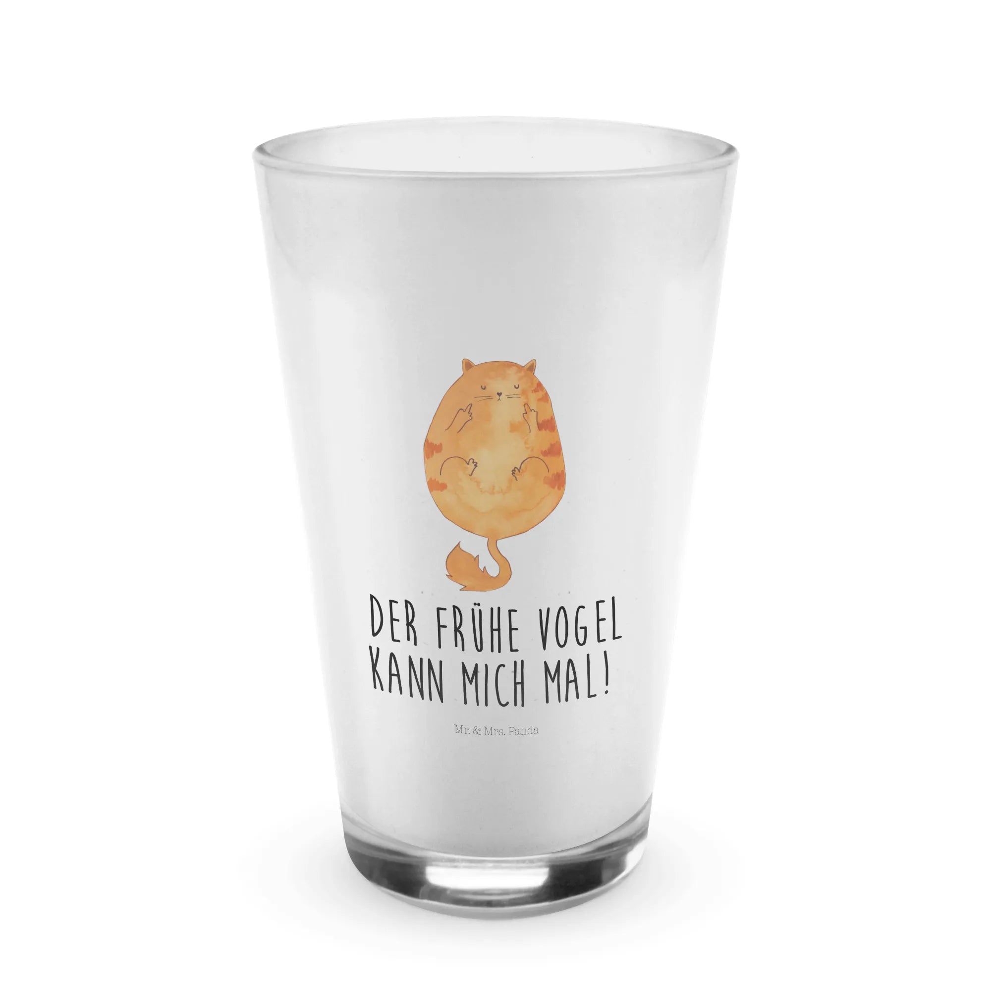 Crafted from durable, thick-walled premium glass with a satin finish, it ensures that every use feels elegant and special. The motif features an adorable cat, perfectly capturing the essence of your typical morning grumbler. If you're an early riser who loves a good laugh while enjoying your coffee, this glass is a must-have in your collection. It subtly showcases a sweet kitty that personifies the sentiment, 'the early bird can kiss my ass.' That’s right, we know how hard it can be to wake up and function!