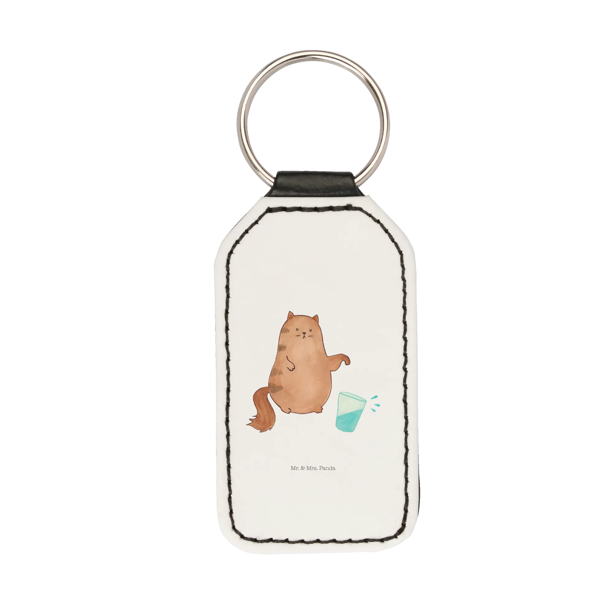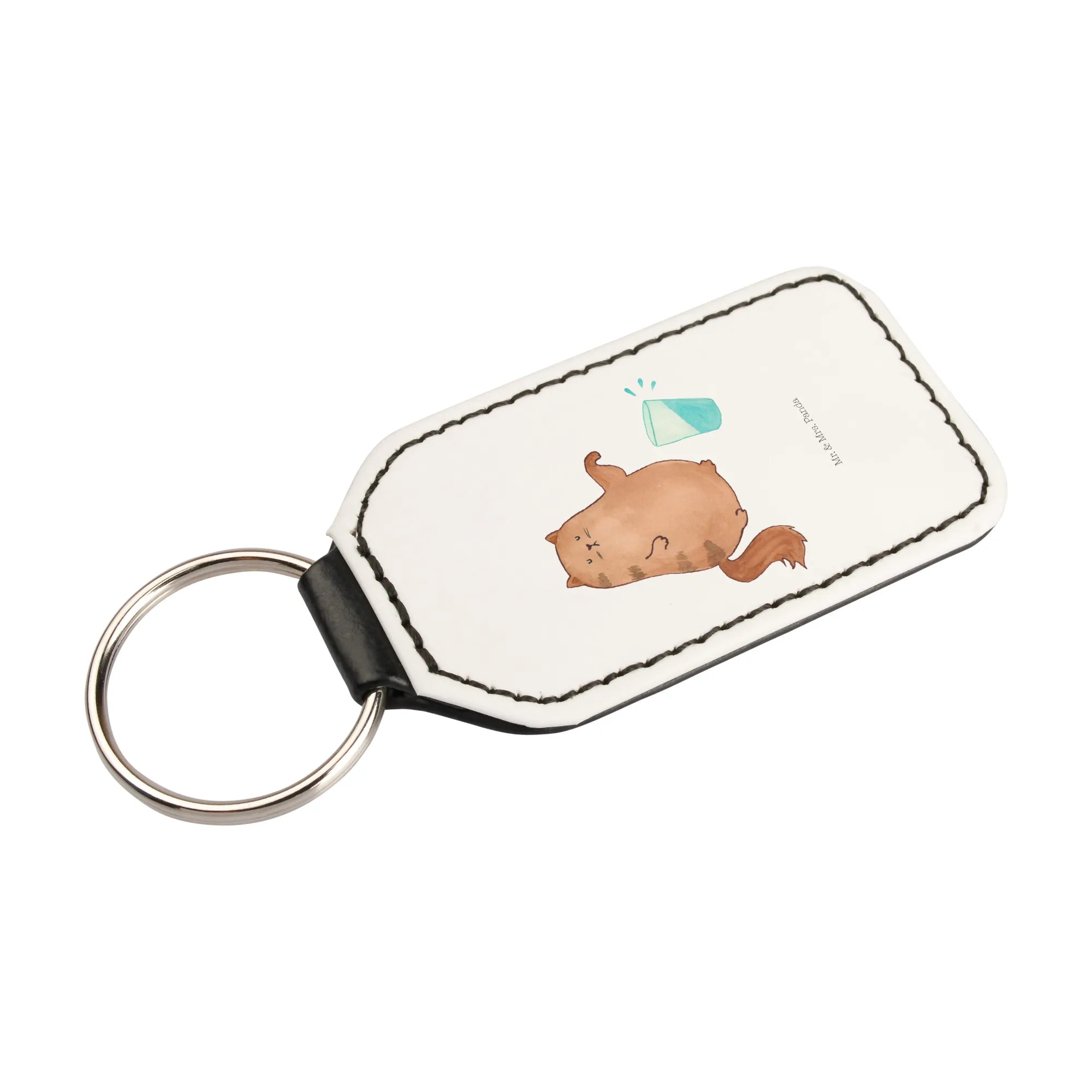 Rectangular key ring Cat water glass - White