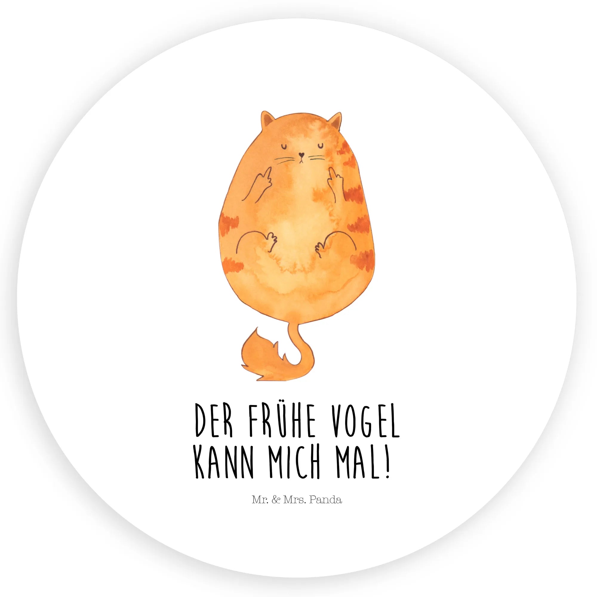 Round sticker Cat Early riser - 80mm Round Sticker - with saying - White