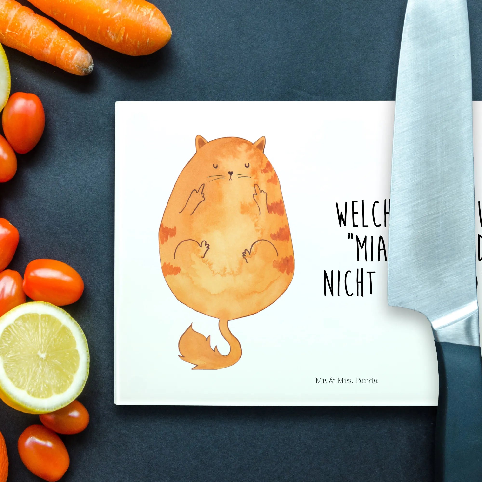 XL glass chopping board Cat middle finger - Medium Glass Cutting Board - with saying - White