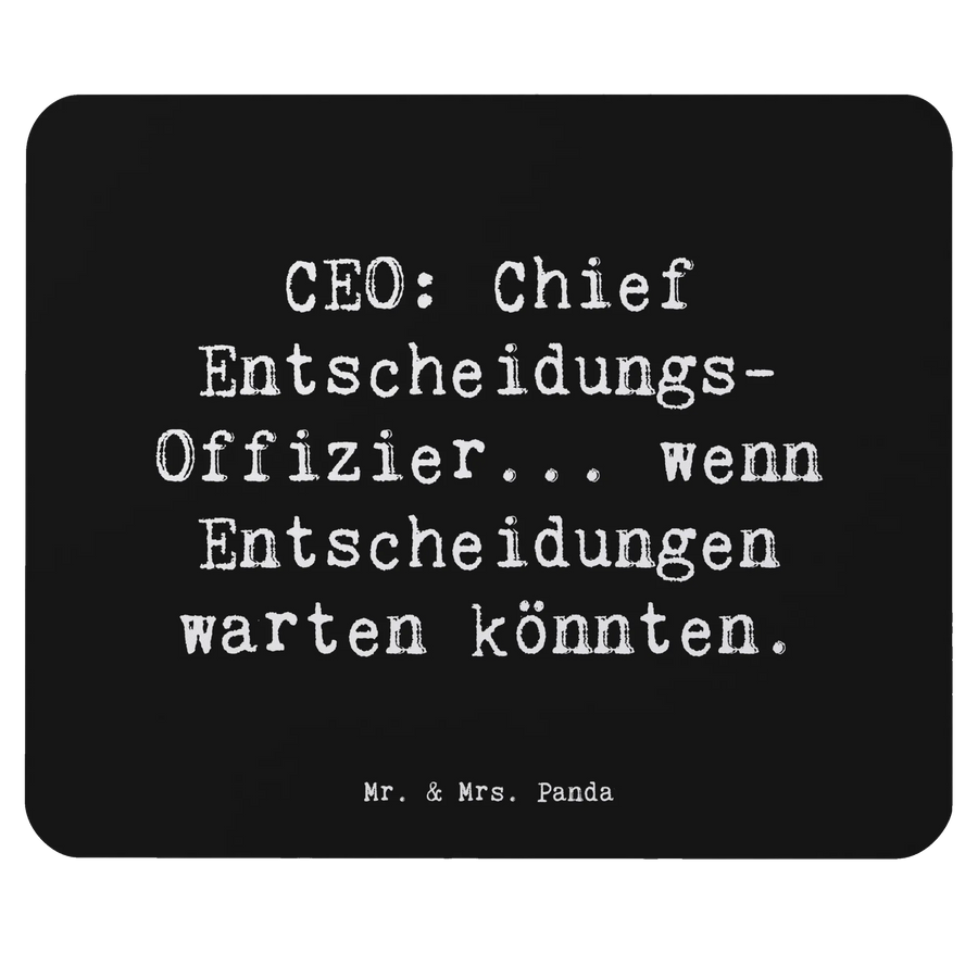Entdecke das perfekte Geschenk für alle Geschäftsführer und Führungskräfte! Das wundervolle Mauspad von Mr. & Mrs. Panda mit dem Motiv "CEO: Chief Entscheidungs-Offizier... wenn Entscheidungen warten könnten" ist nicht nur ein praktisches Accessoire für Deinen Arbeitsplatz, sondern auch eine humorvolle Hommage an die herausfordernden Entscheidungen des Unternehmensalltags.